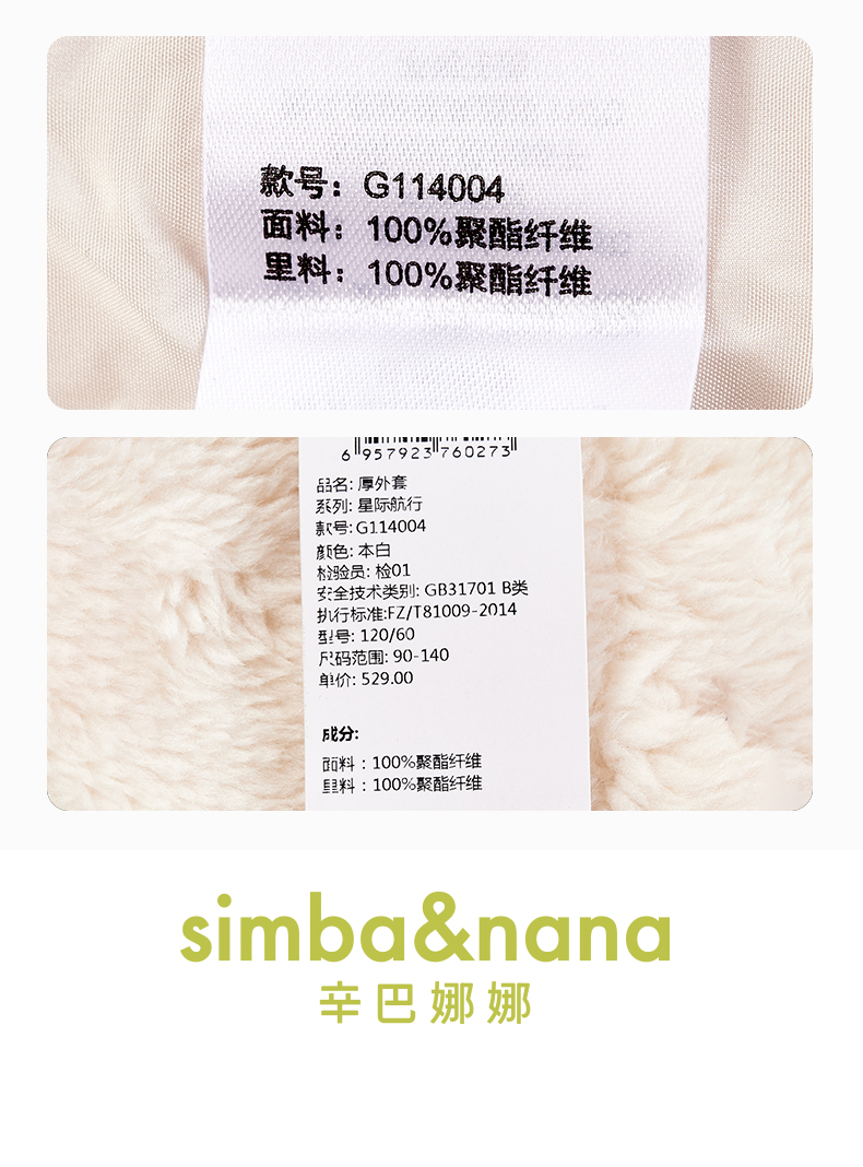 【辛巴娜娜】simbanana【大童】女童外套冬新款大童珊瑚绒冬季保暖摇粒绒上衣