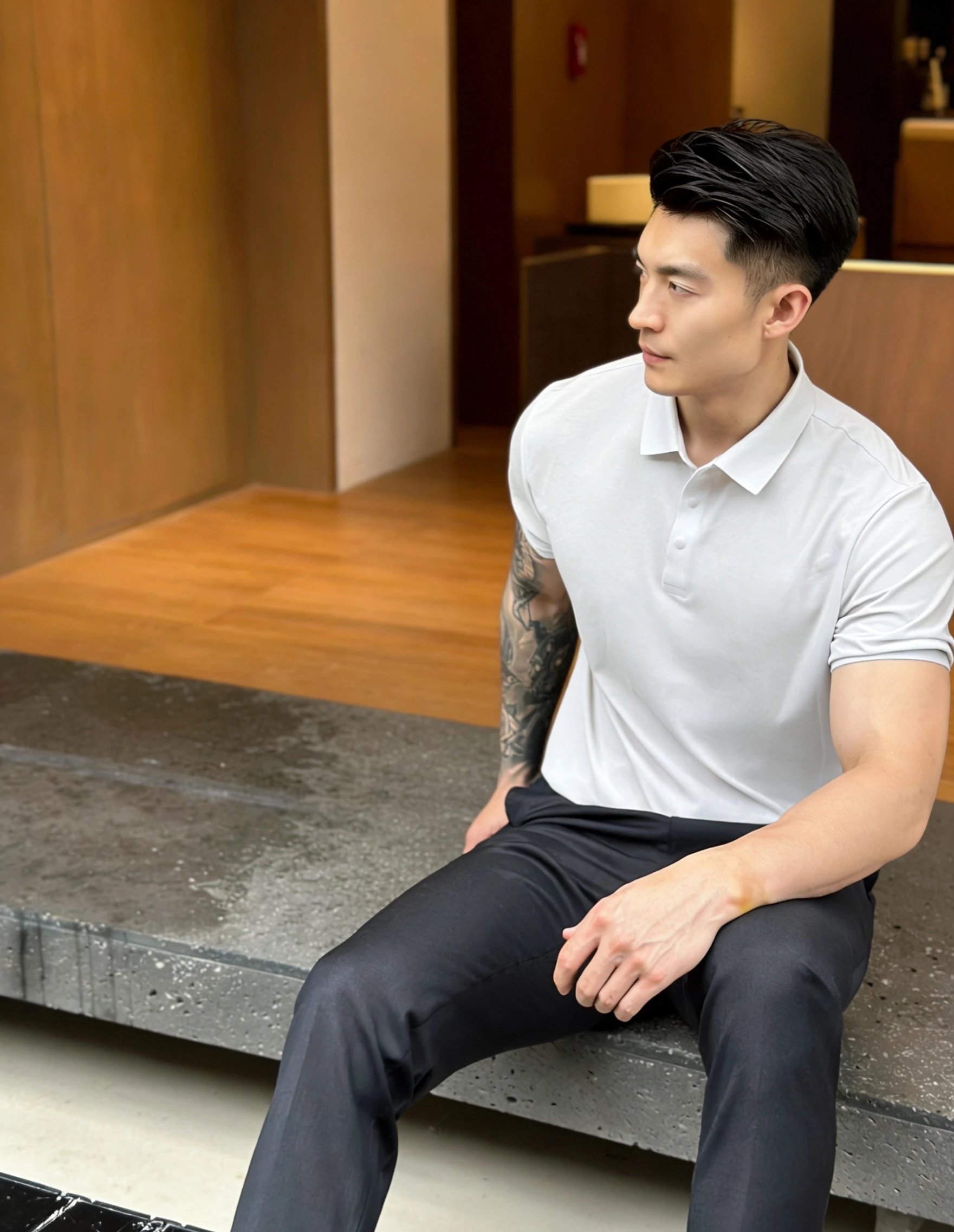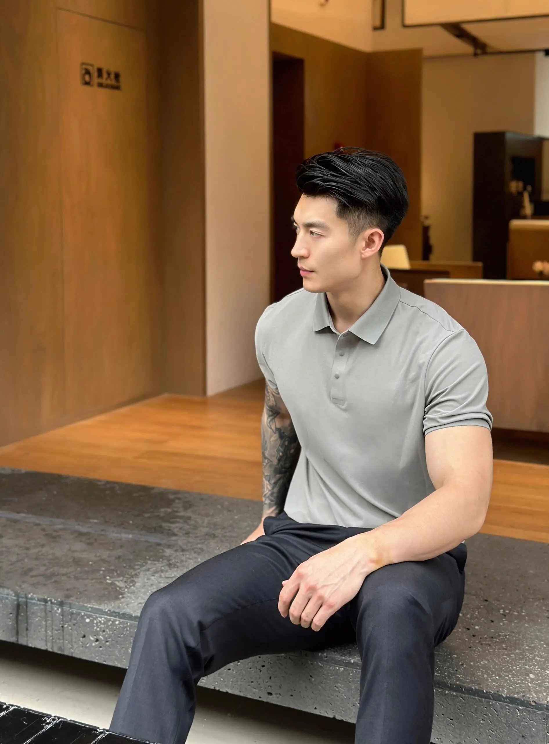 解开三粒,释放肌肉力量感