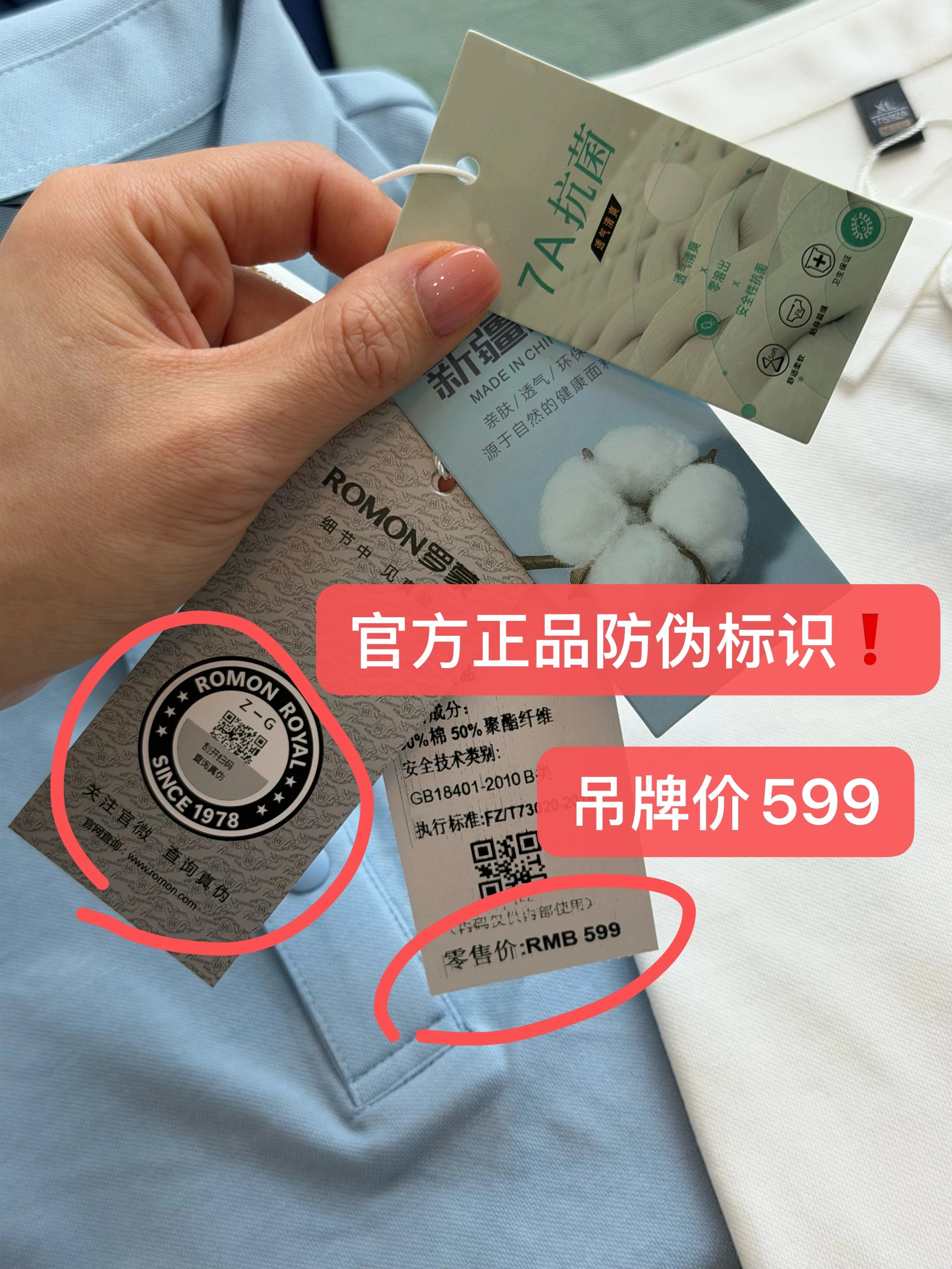 7A抗菌、含50%新疆棉,柔软亲肤且透气