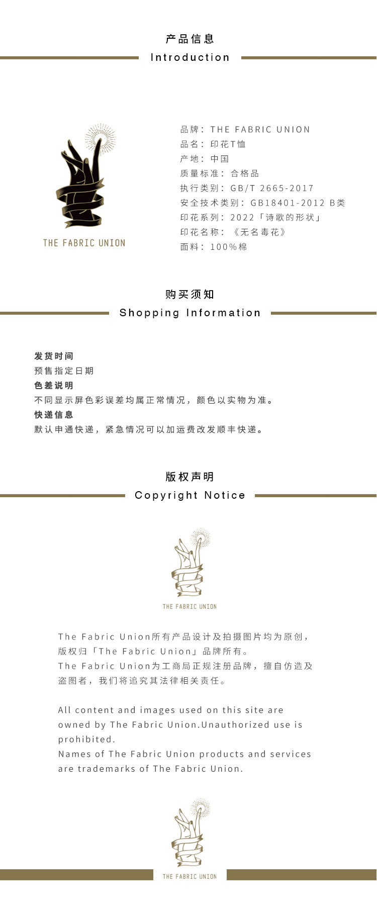 THE FABRIC UNION「诗歌的形状」系列 全棉印花T恤