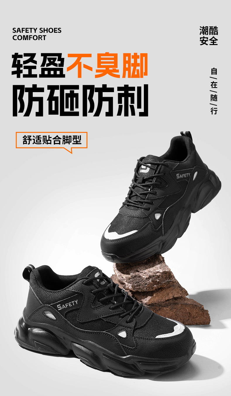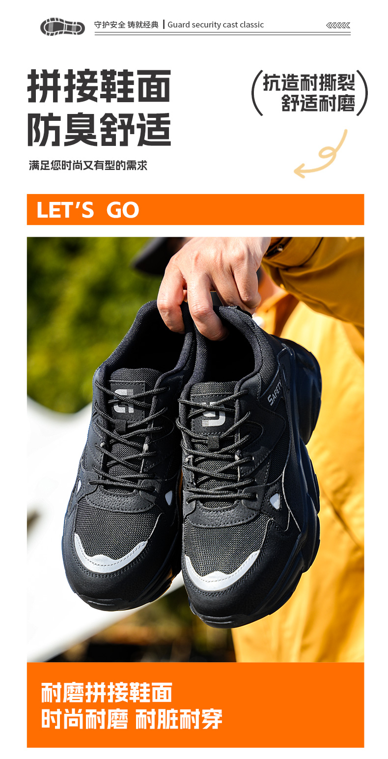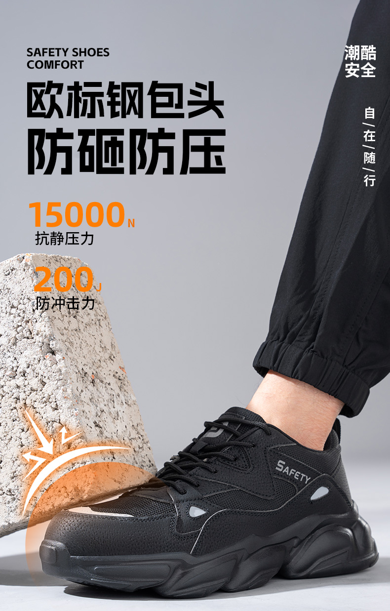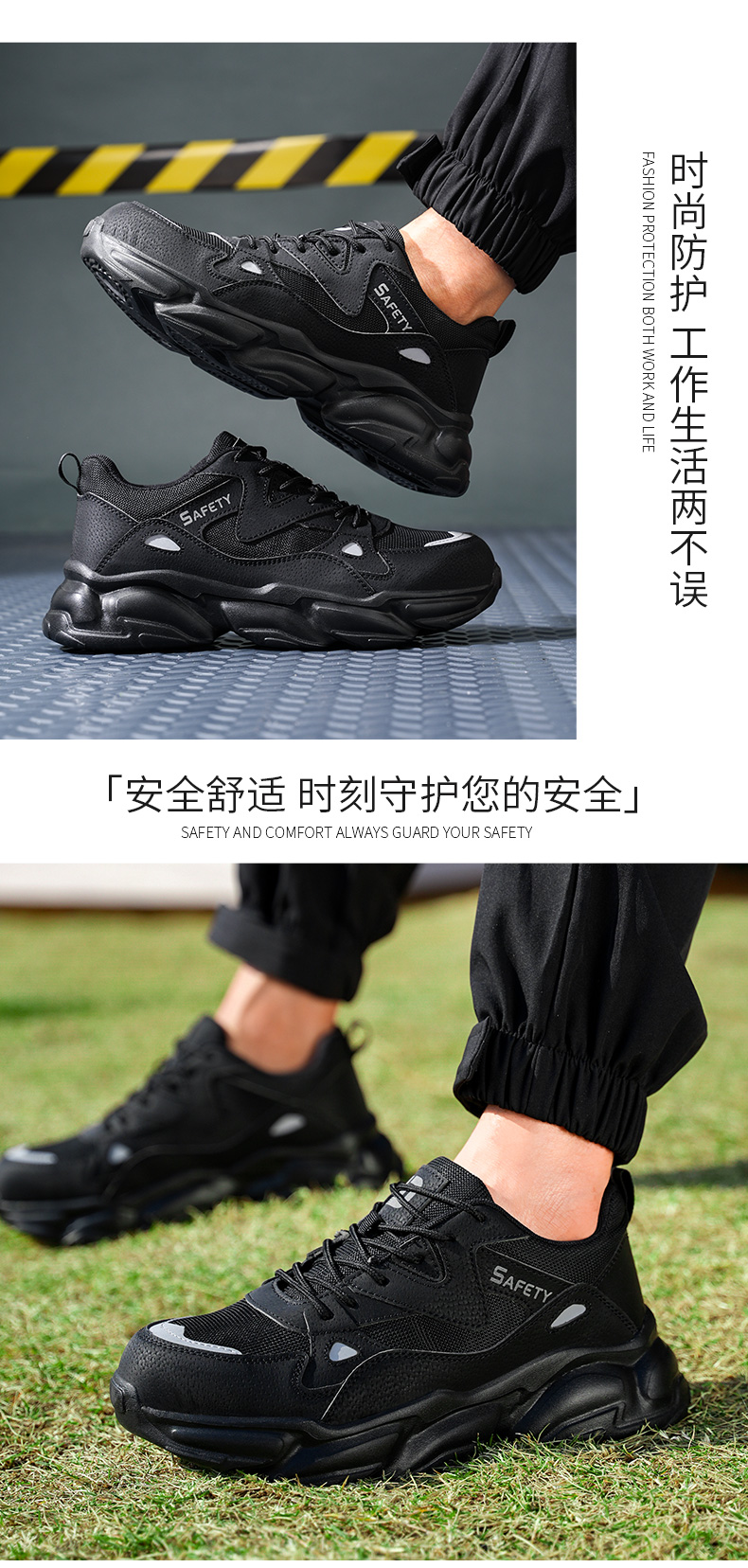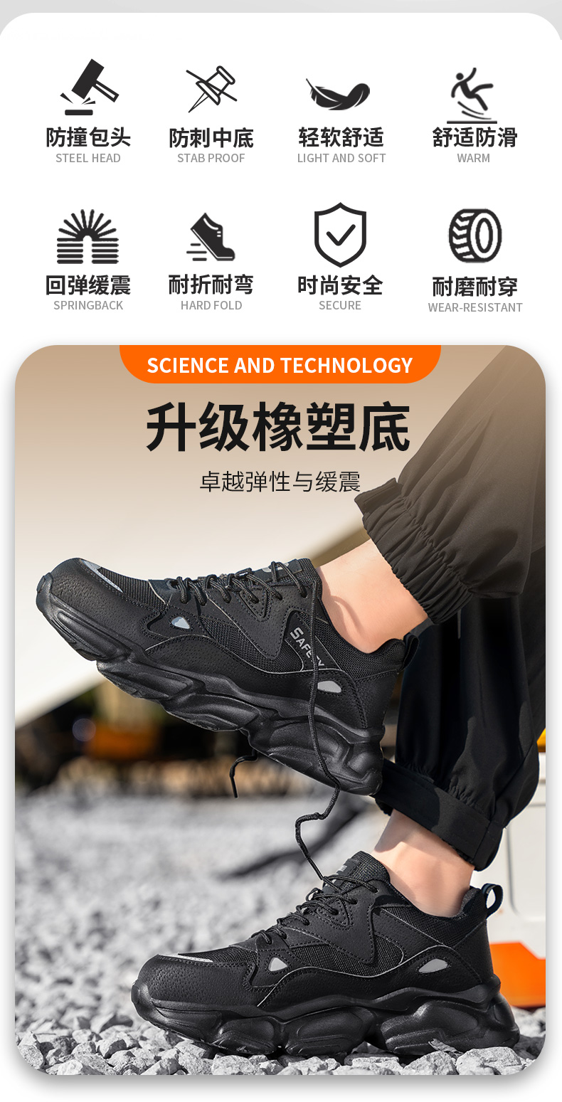 2025新款劳保鞋防砸防刺穿欧标钢包头凯夫拉底橡塑底黑色四季款低帮安全鞋