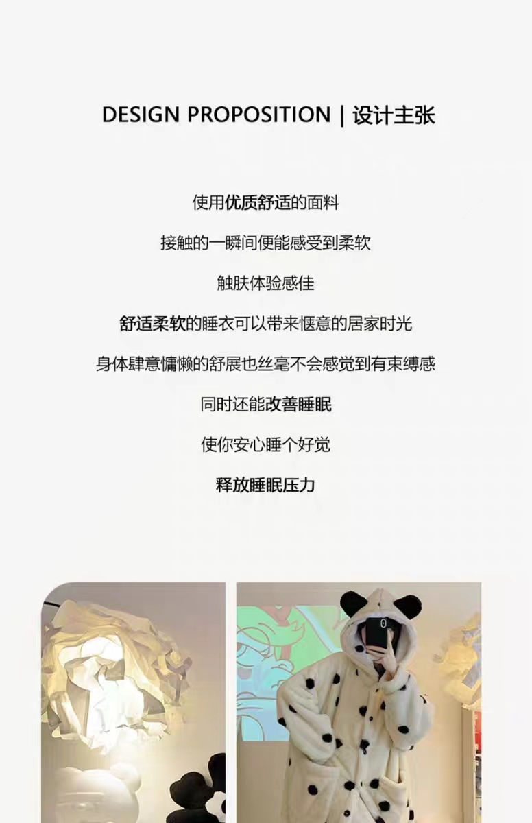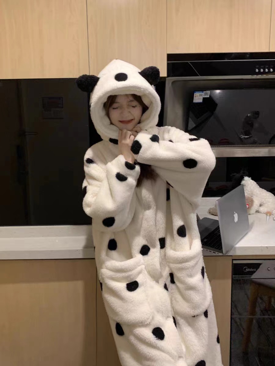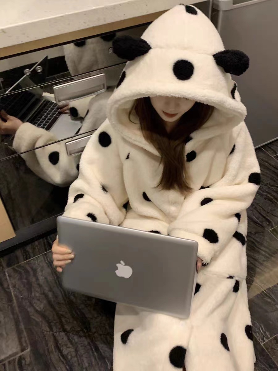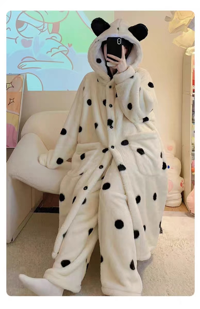 雀说 波点睡袍睡衣女秋冬新款法兰绒家居服珊瑚绒加厚长款甜美公主套装ALW 24007-1