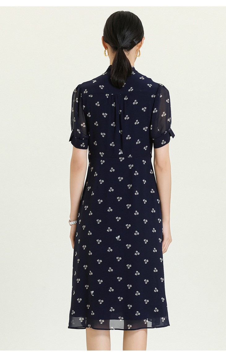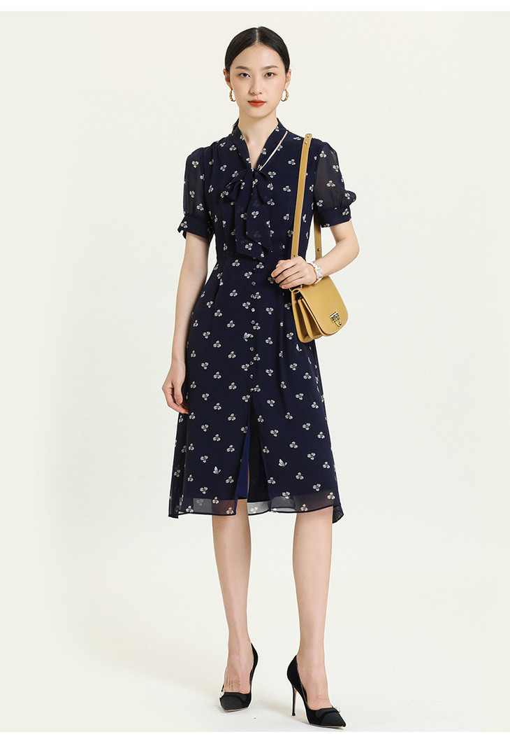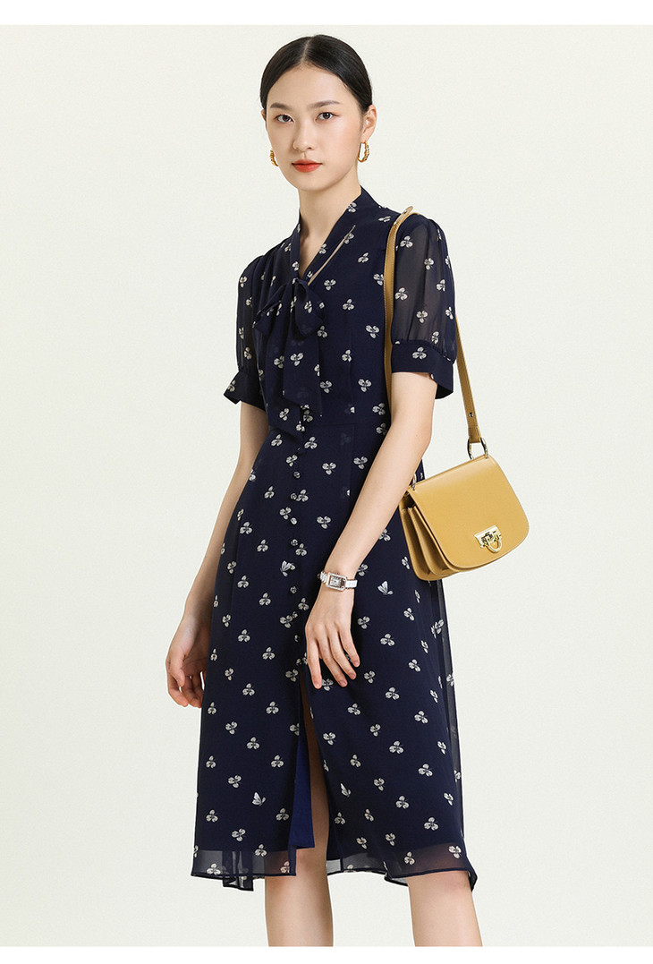 乔万尼夏新款真丝乔其碎花连衣裙女收腰显瘦气质桑蚕丝中长裙ES2E152