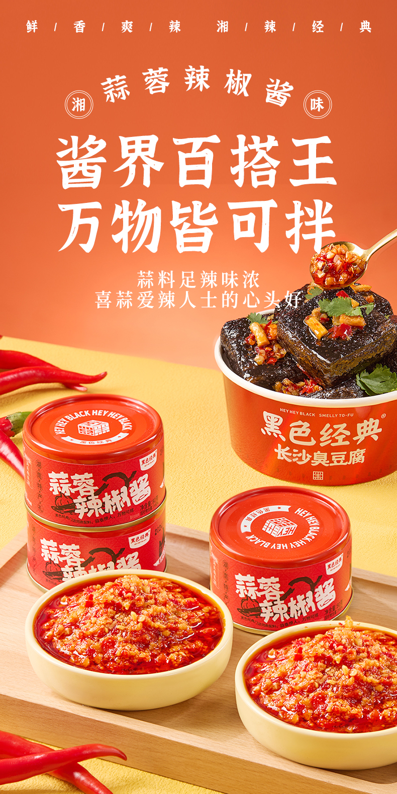 【新品8折尝鲜】黑色经典经典蒜蓉辣椒酱240g(80g*3) 3罐装百搭臭豆腐同款辣酱 辣香四溢