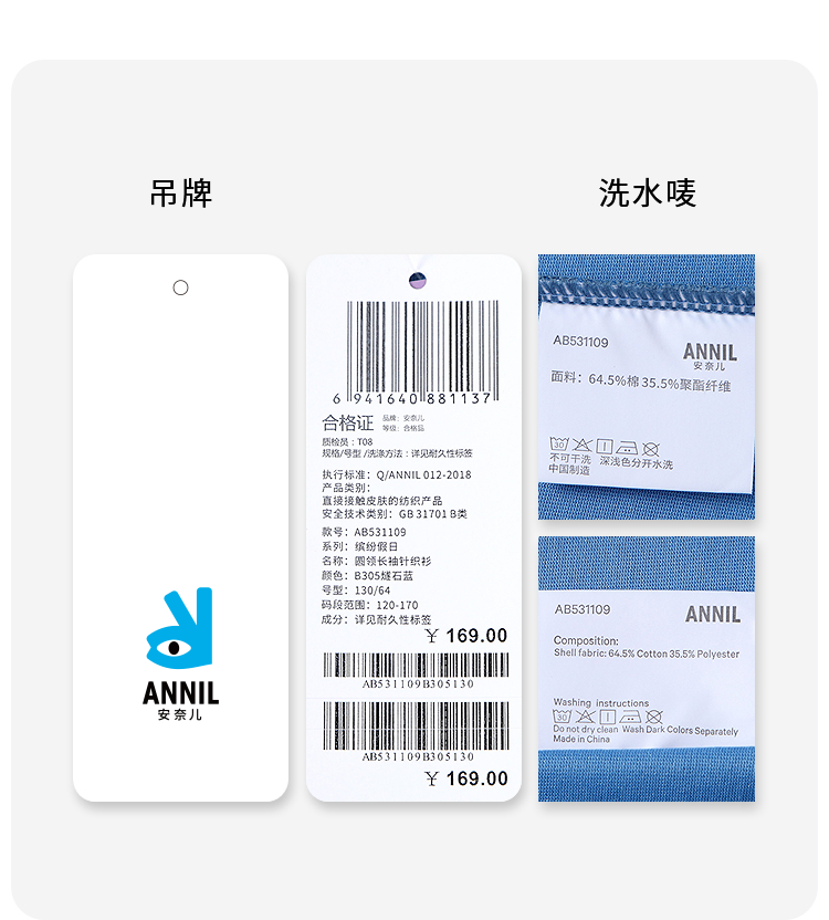 【实体店同款】男童圆领长袖针织衫秋季新款安奈儿童装AB531109