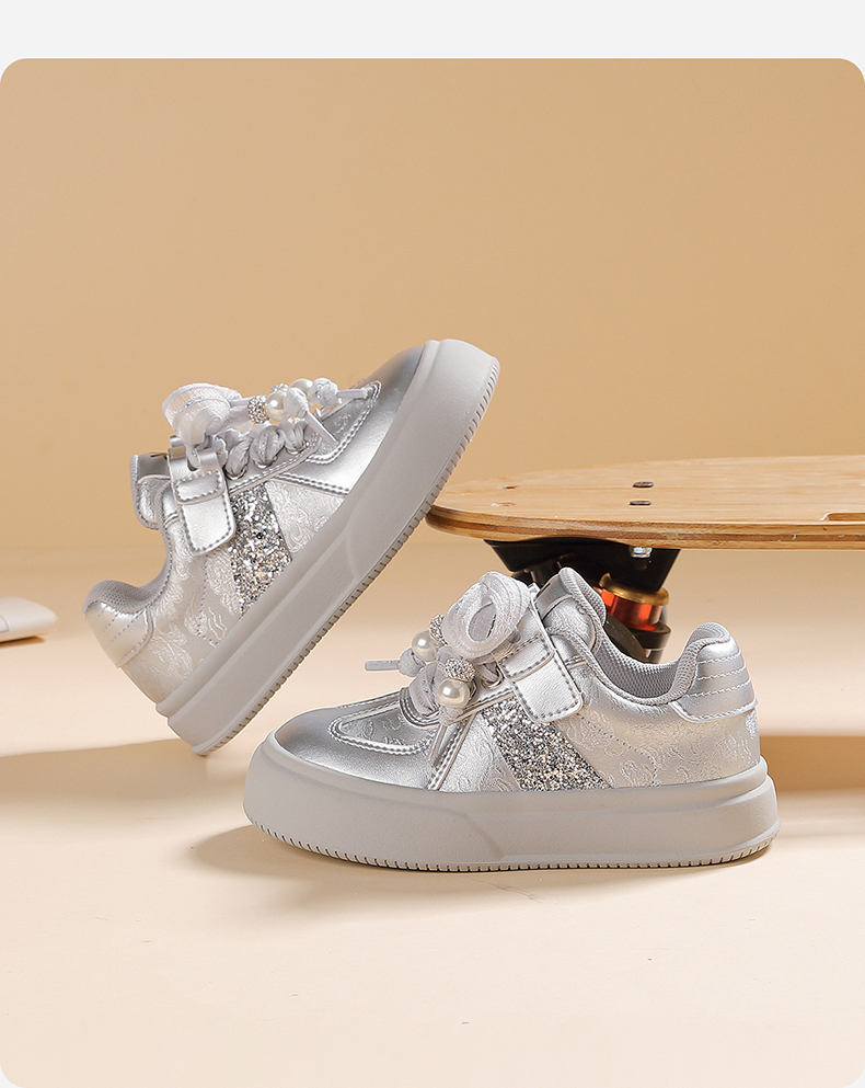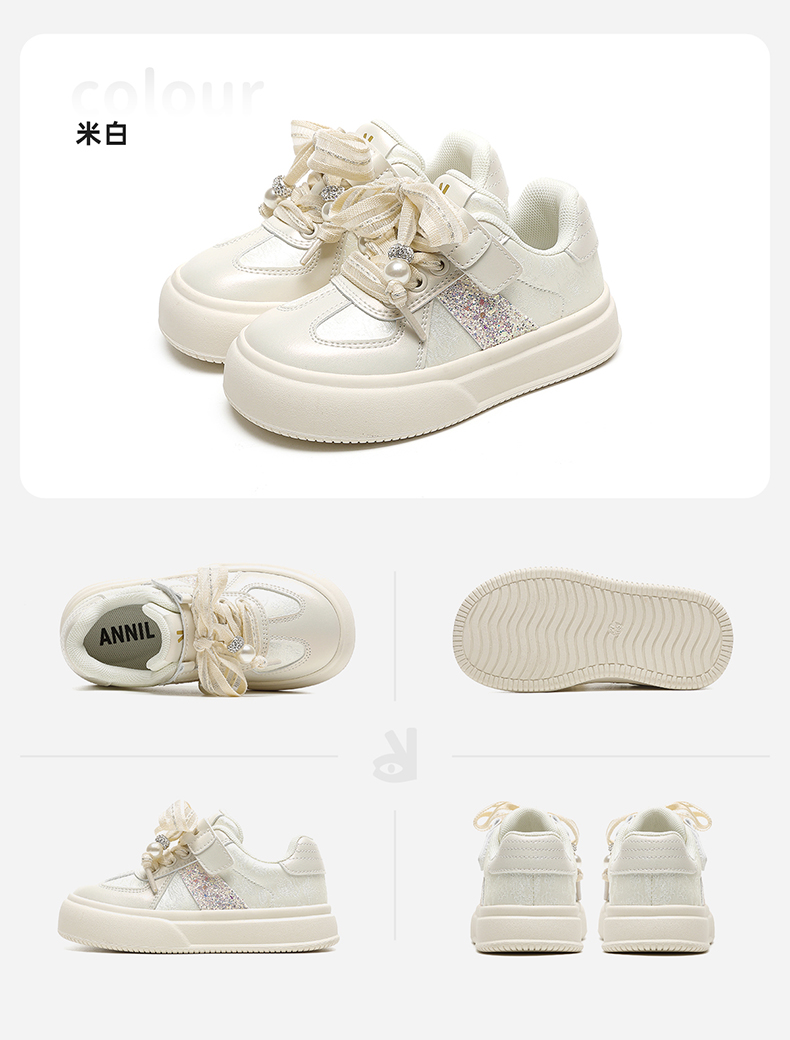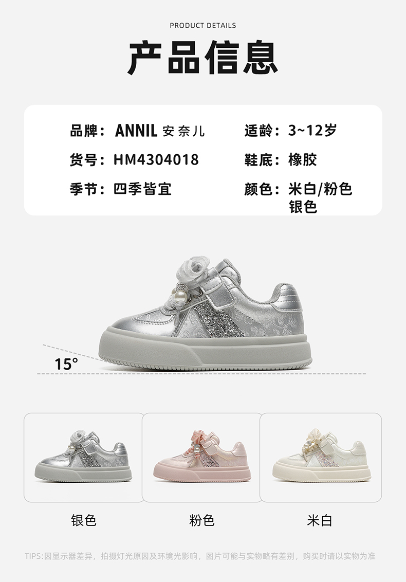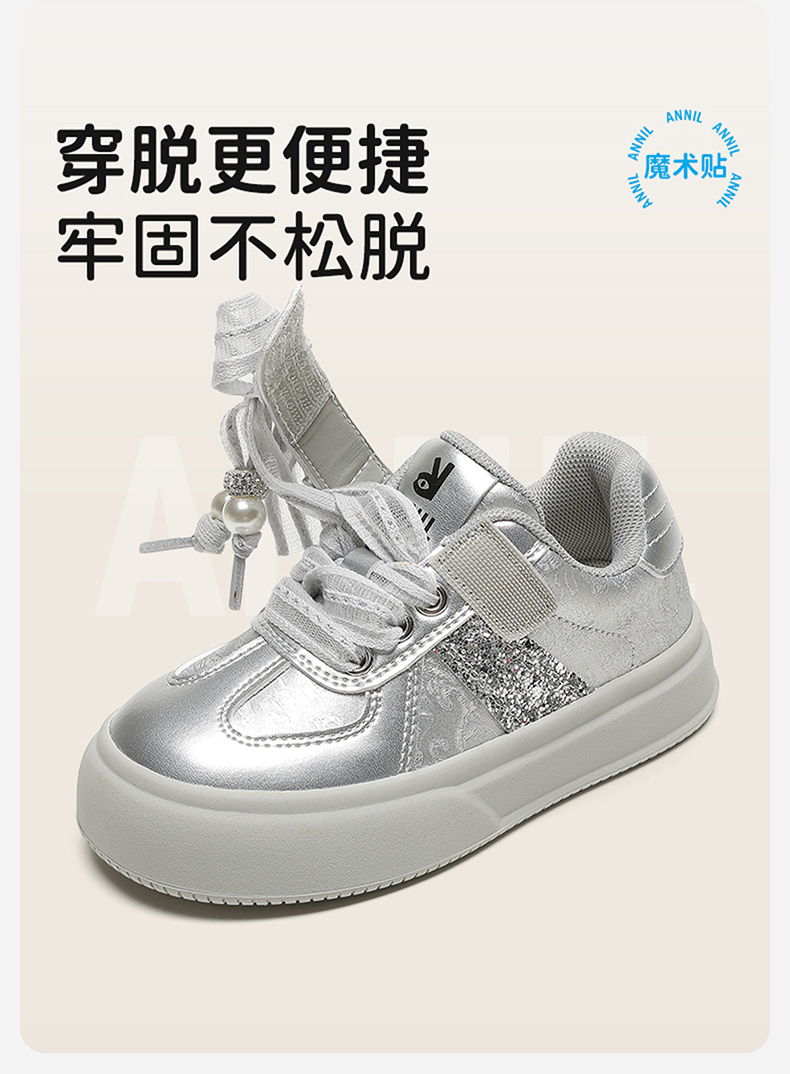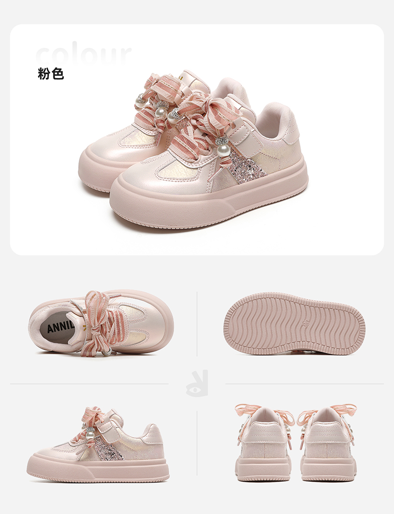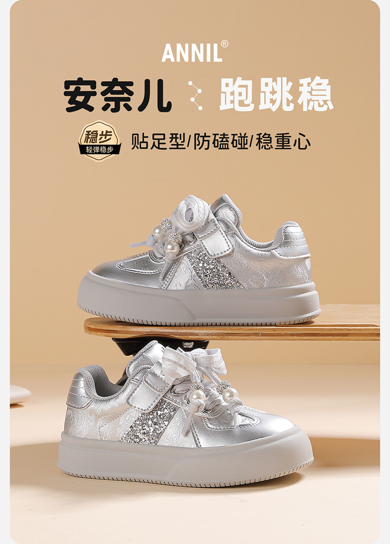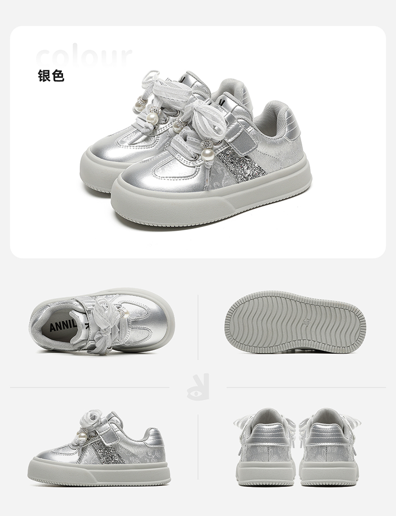 ANNIL/安奈儿童鞋秋季新款时尚女童板鞋百搭休闲鞋软底透气亮面鞋HM4304018