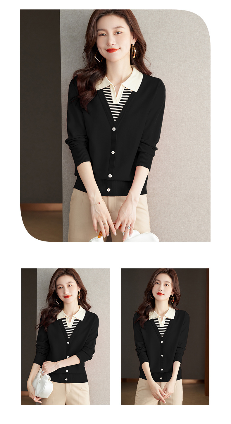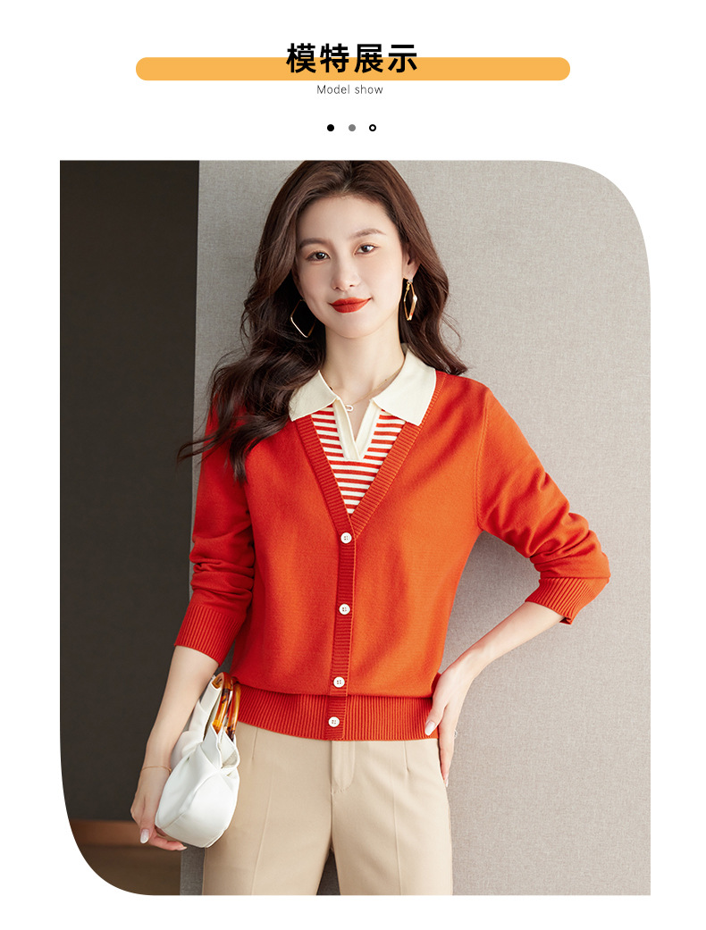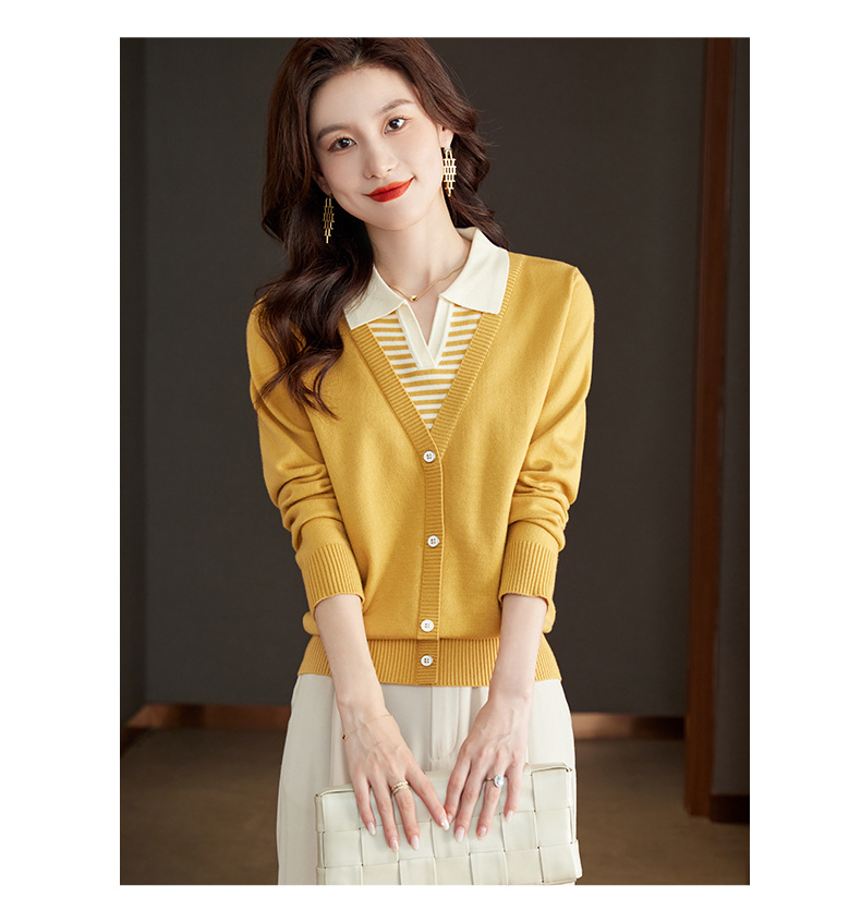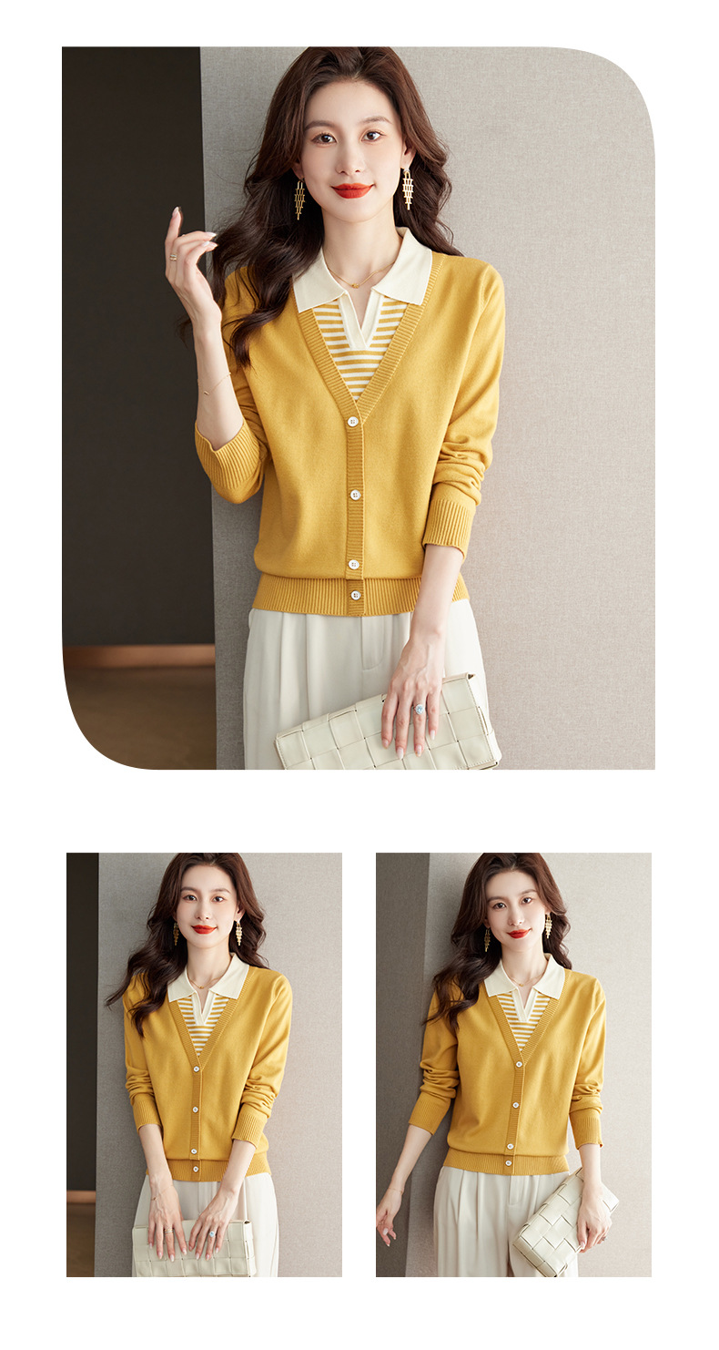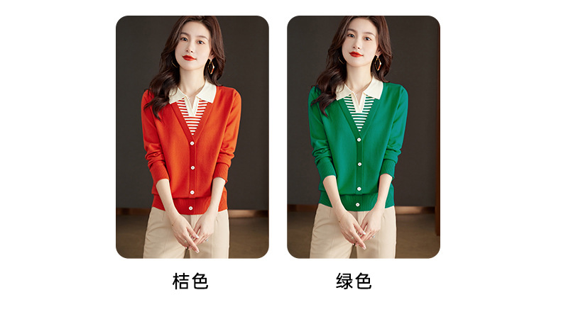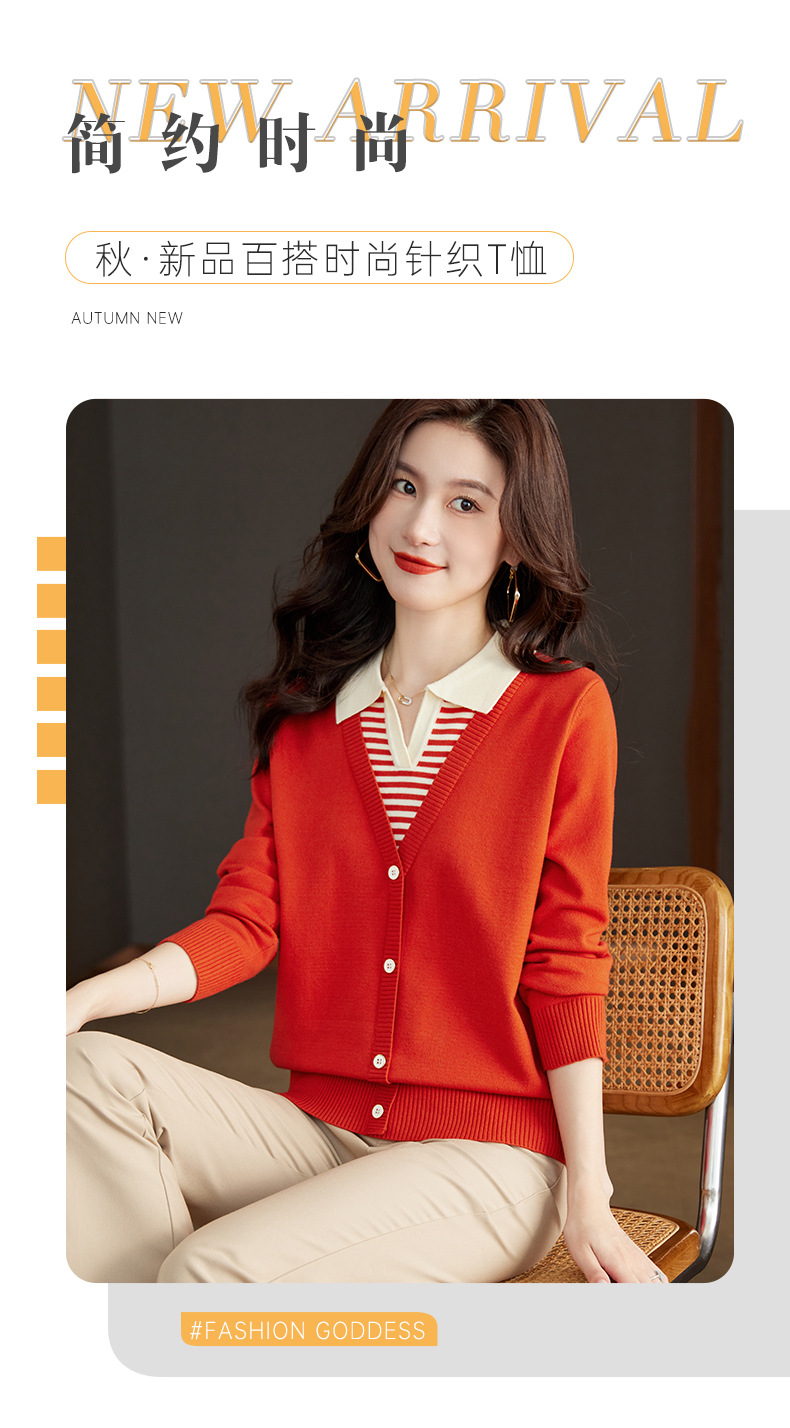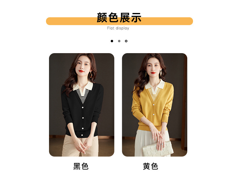" 丁摩 假两件上衣女秋季韩系毛衣洋气翻领针织打底衫女3ZF-SMZ9809"