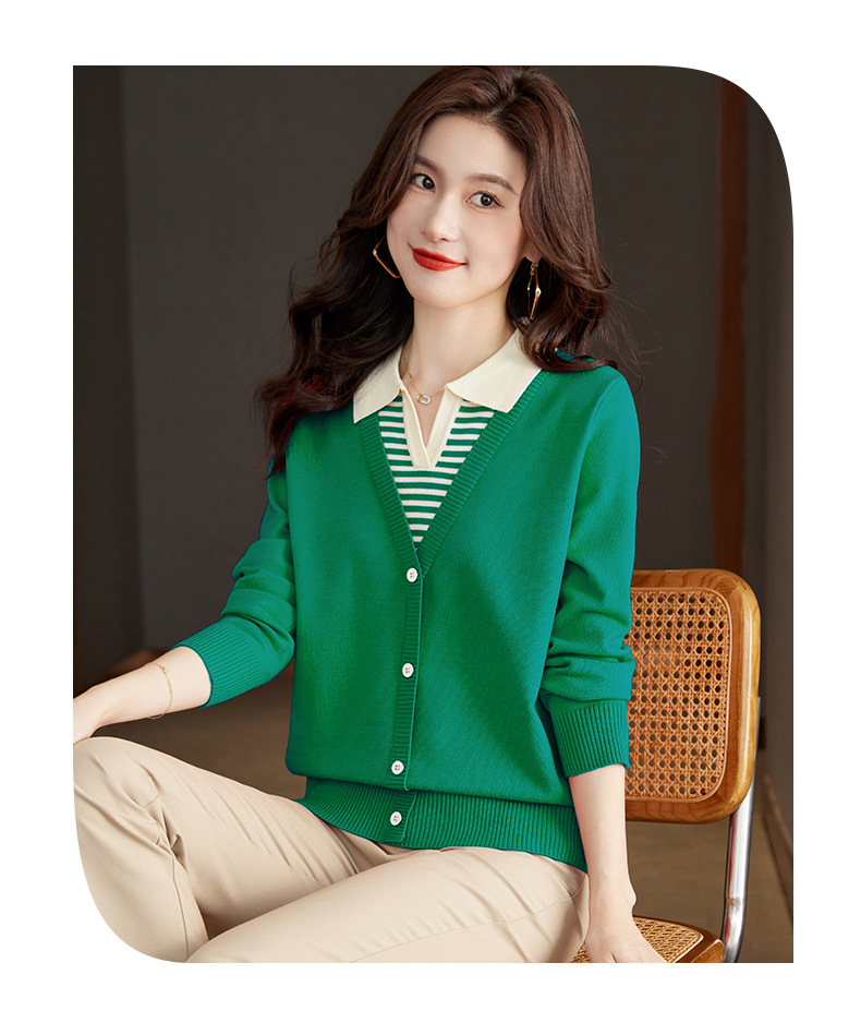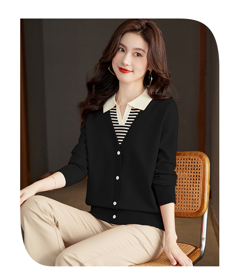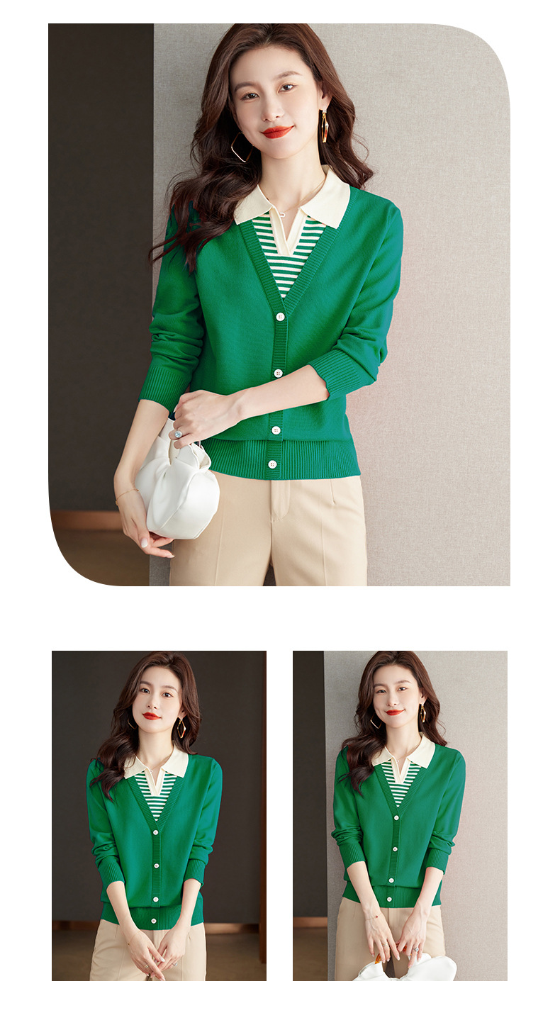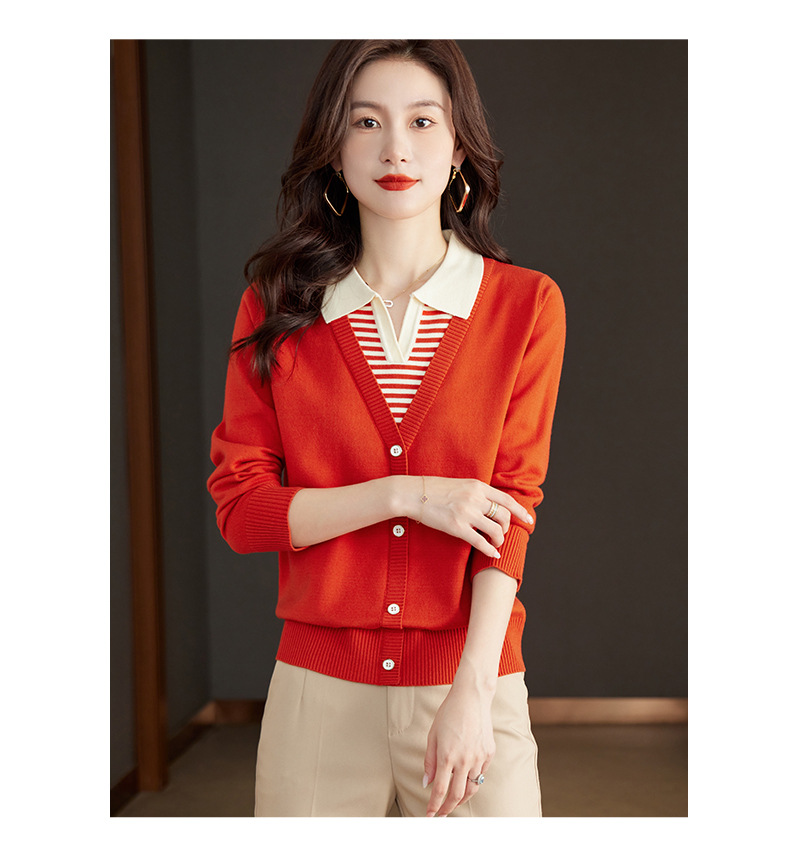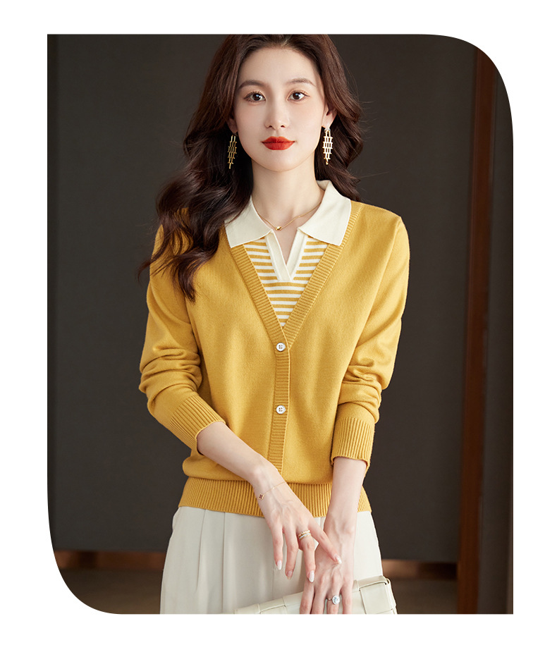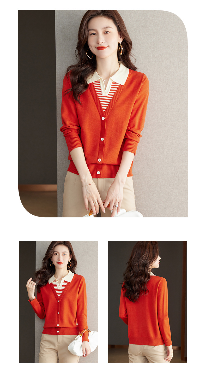 " 丁摩 假两件上衣女秋季韩系毛衣洋气翻领针织打底衫女3ZF-SMZ9809"