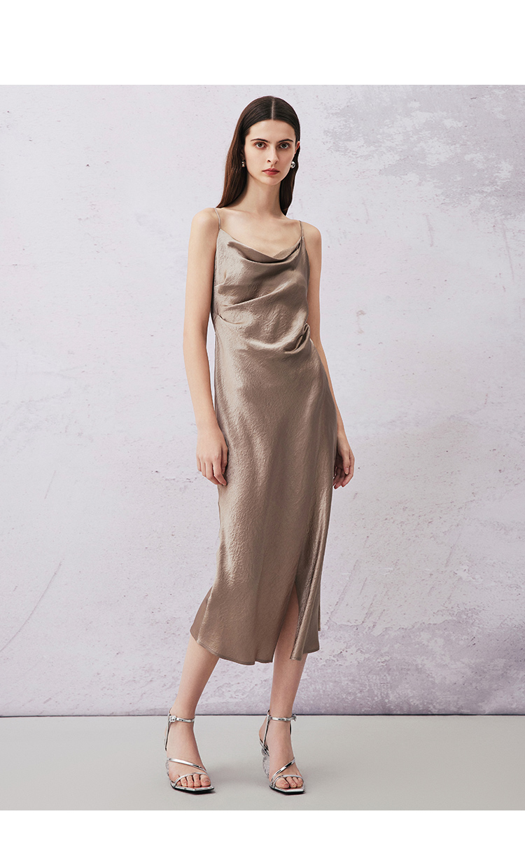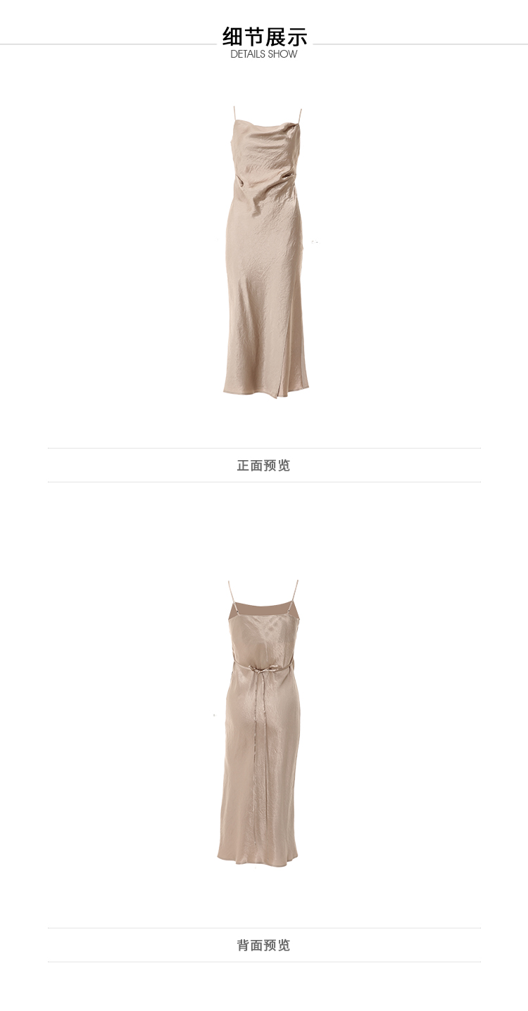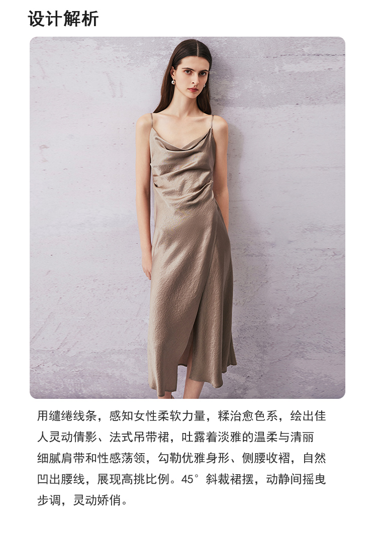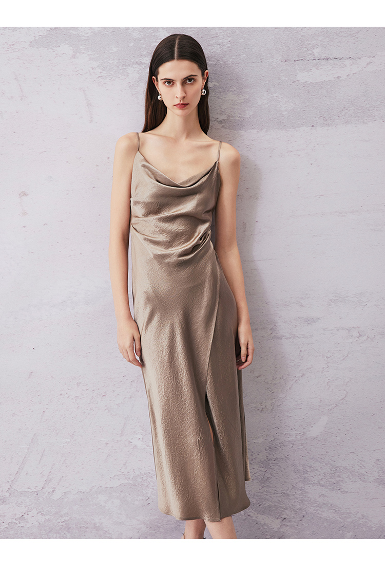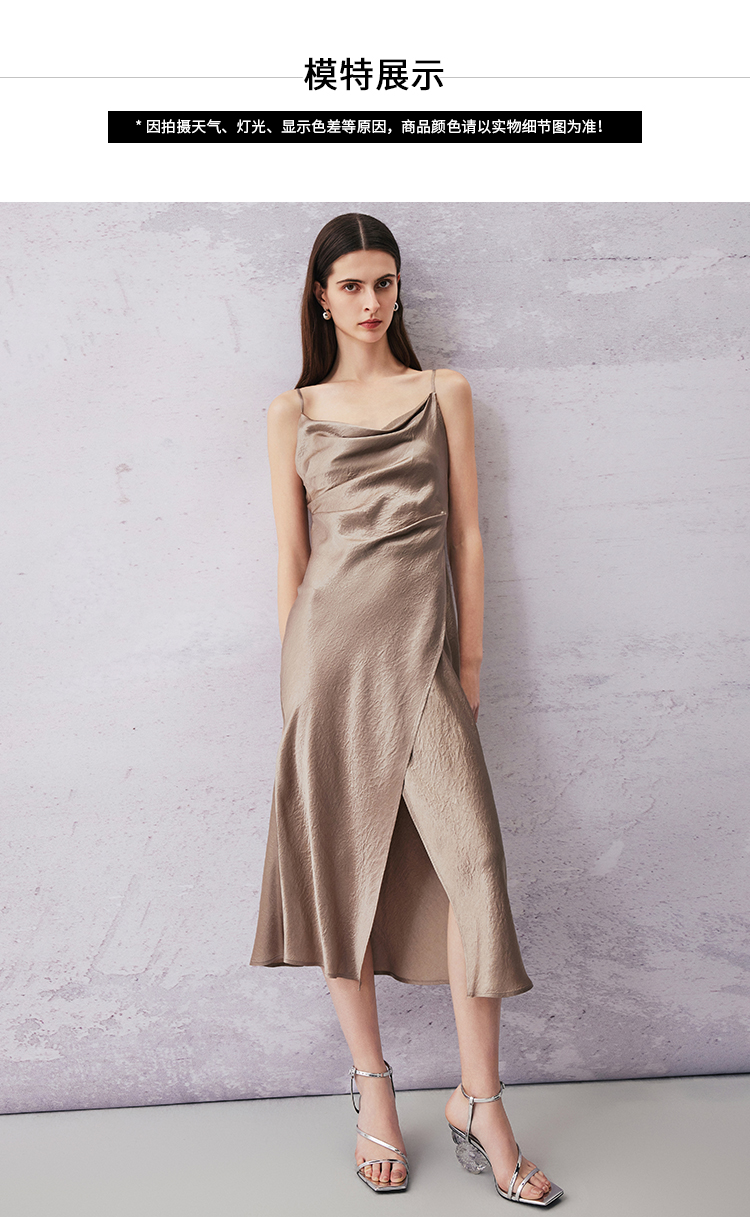 VIMAGE纬漫纪夏季新款气质慵懒荡领系带围裹开叉醋纤吊带连衣裙V2107720