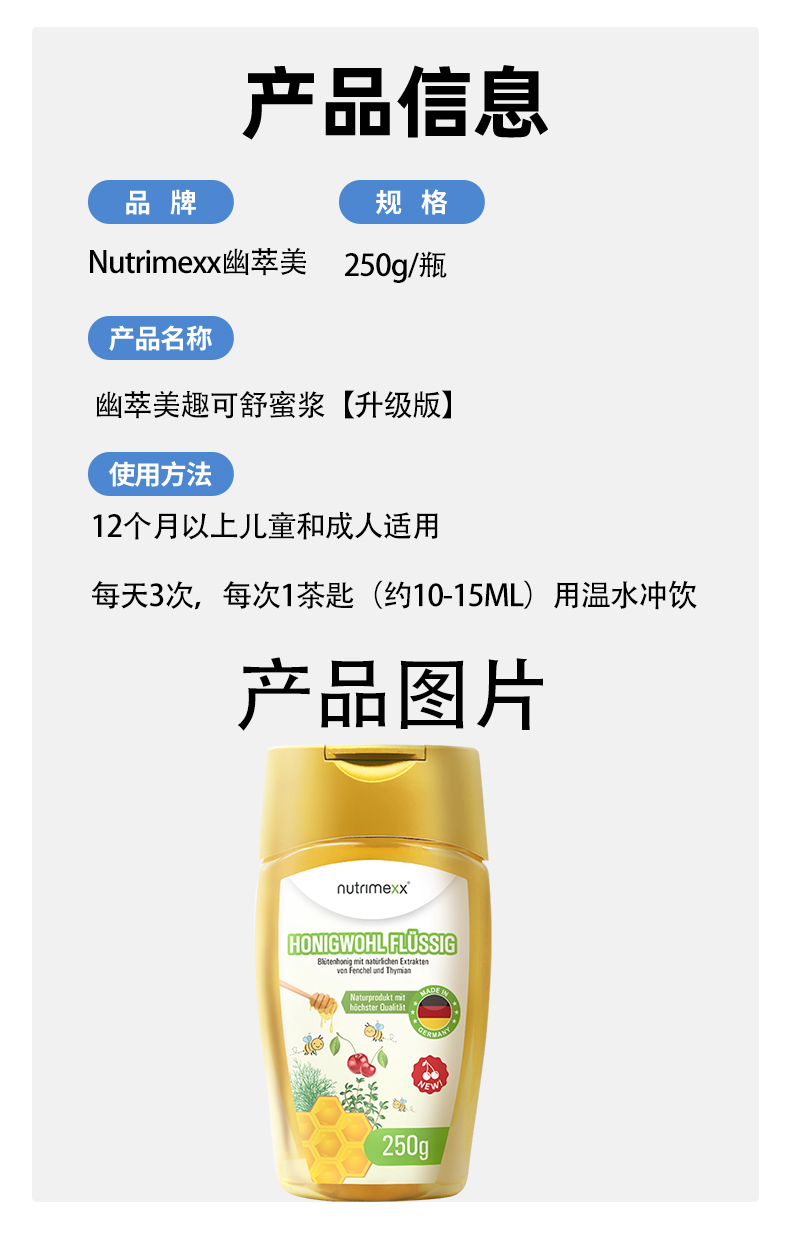 【春日活动】德国Nutrimexx幽萃美趣可舒百里香油蜂蜜浆250g 1岁+