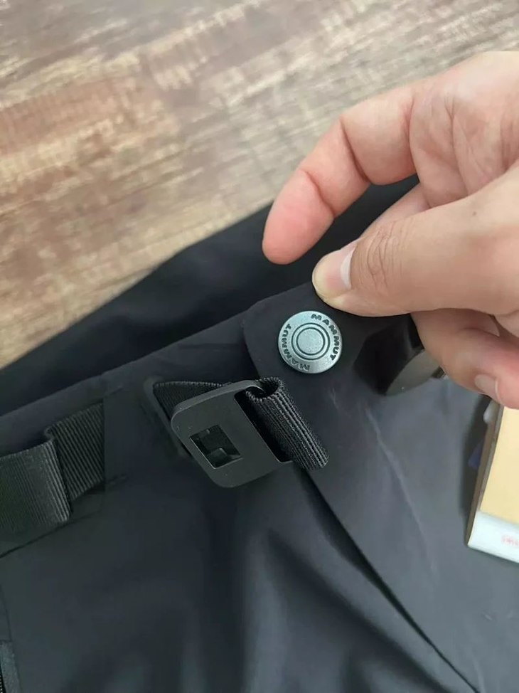 区别之前的老款!!!此新款两侧均为拉链口袋!!+腰部全压胶工艺封边+门襟压胶不规则处理!!