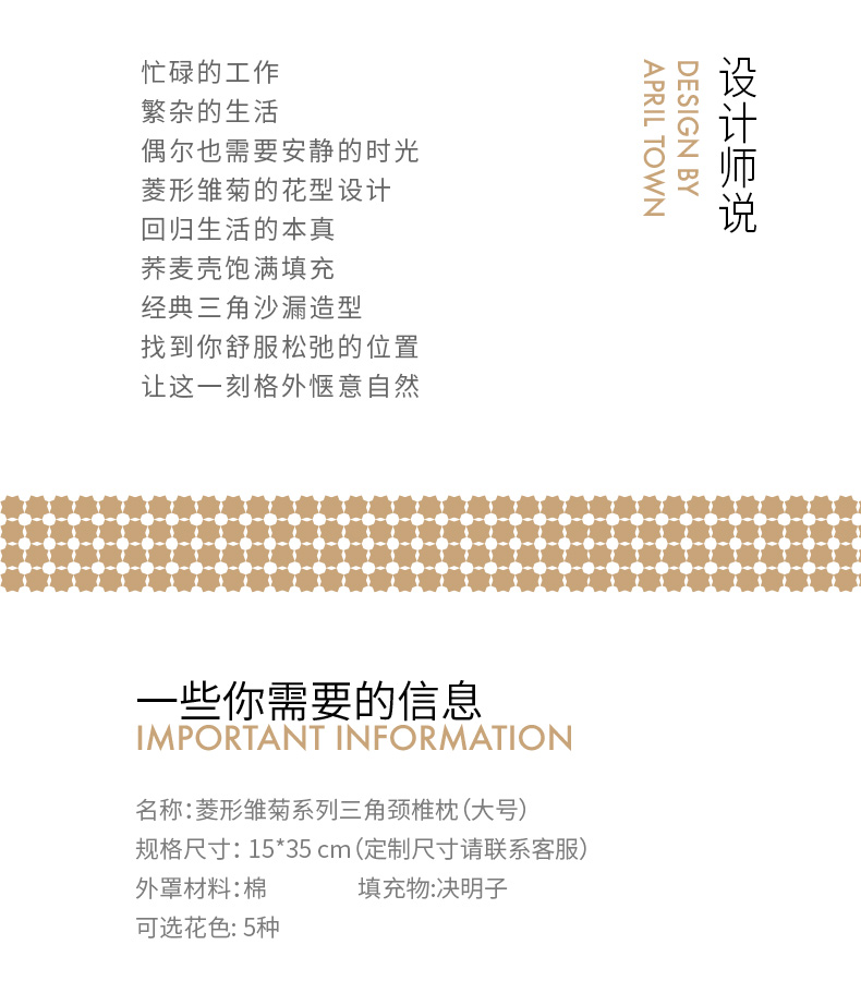 菱形雏菊系列三角颈椎枕天然荞麦壳菊花护颈枕睡觉支撑专用枕头成人