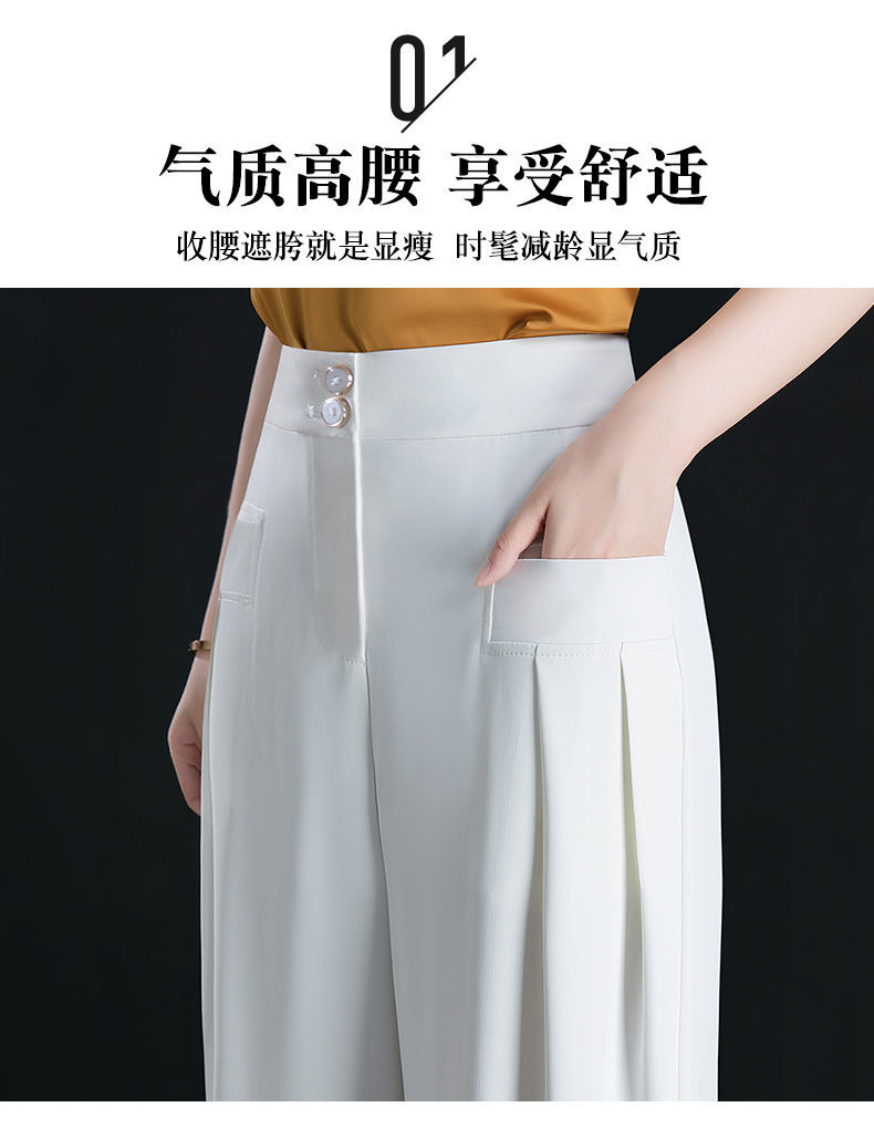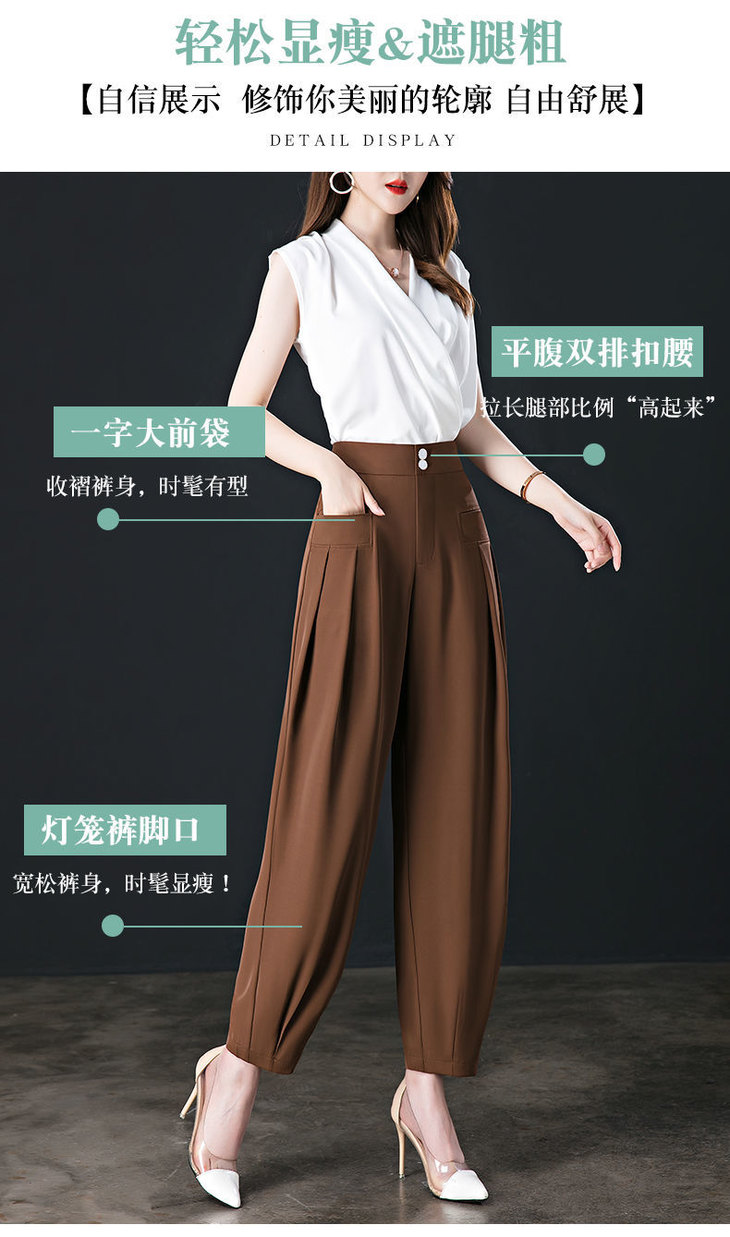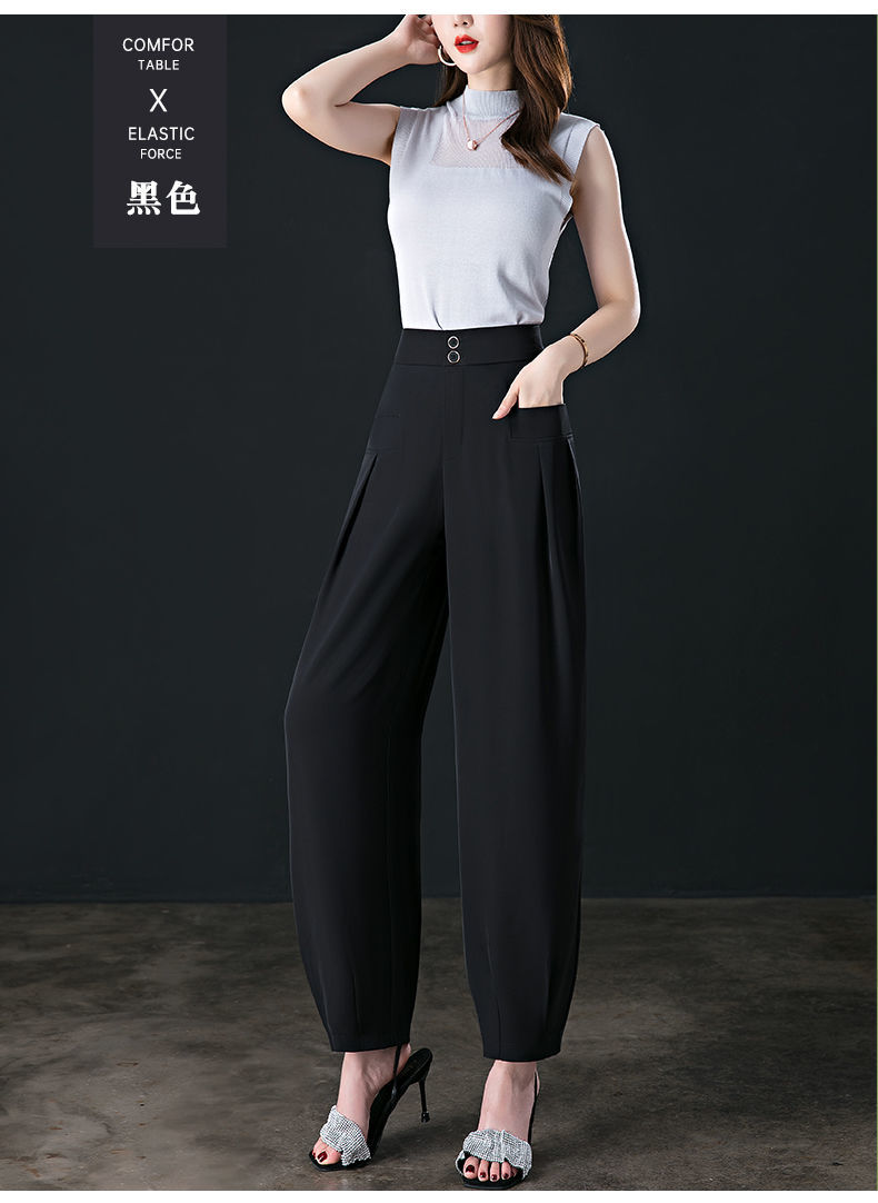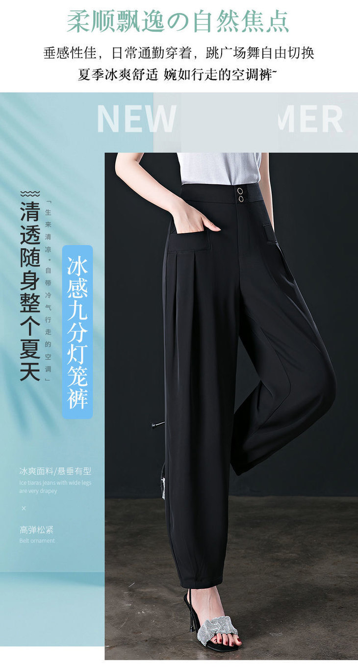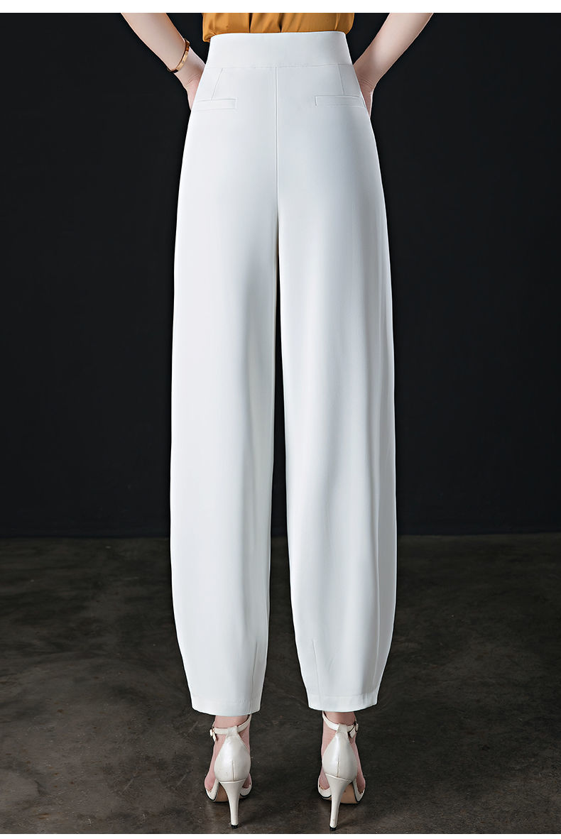 TZW-夏季薄款高腰休闲九分灯笼裤垂感时尚白色冰丝裤子
