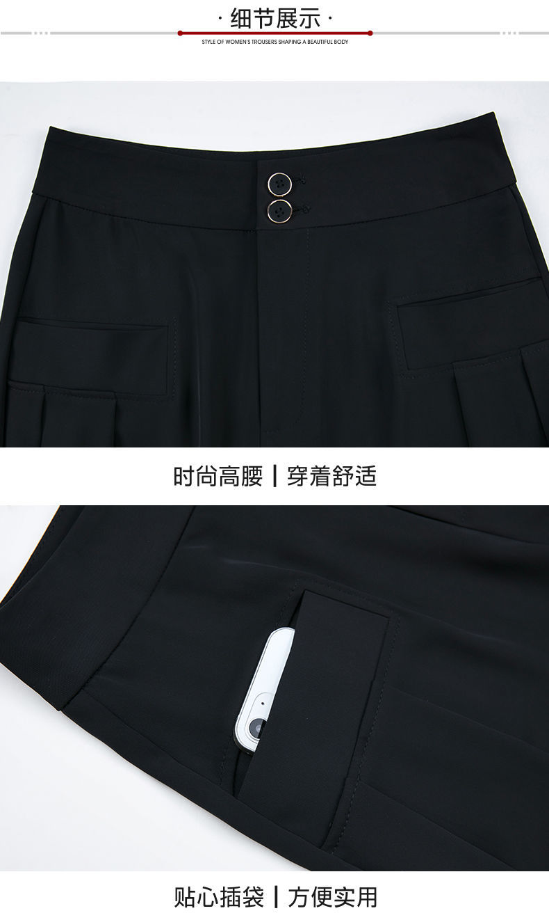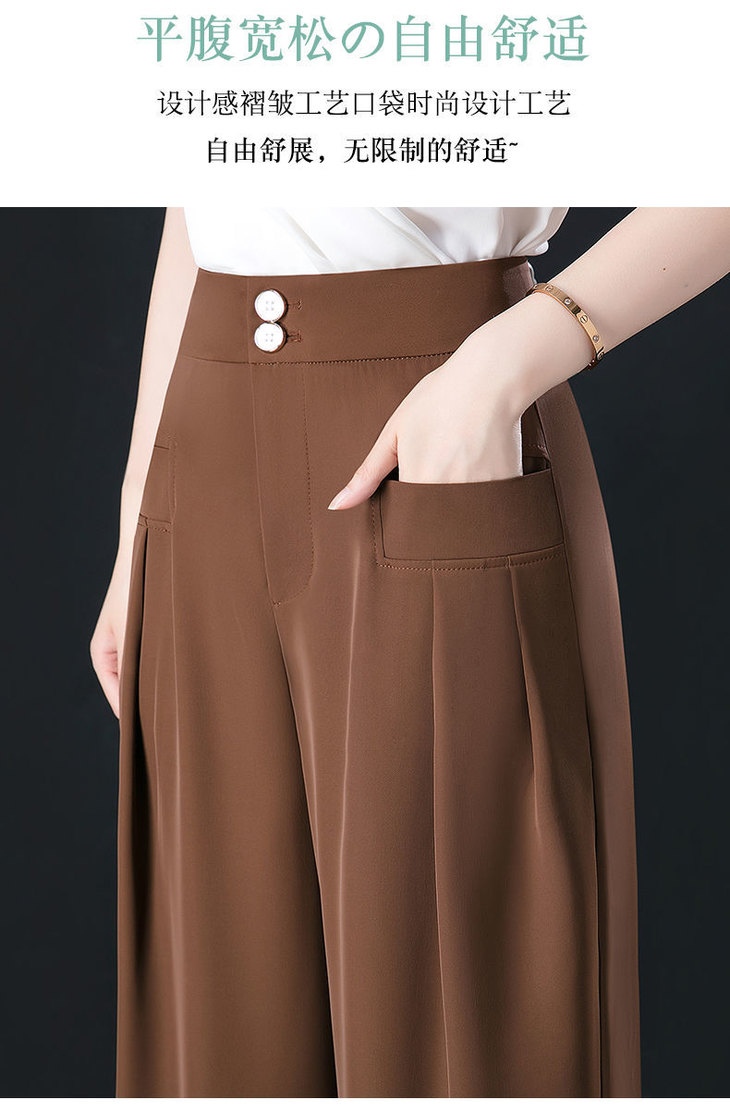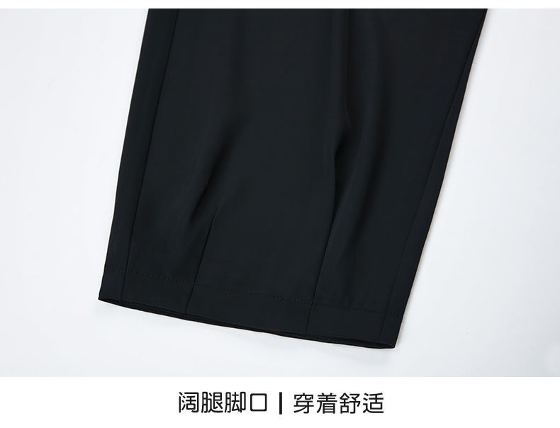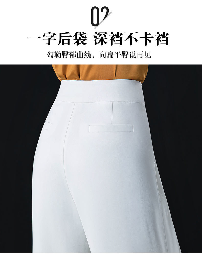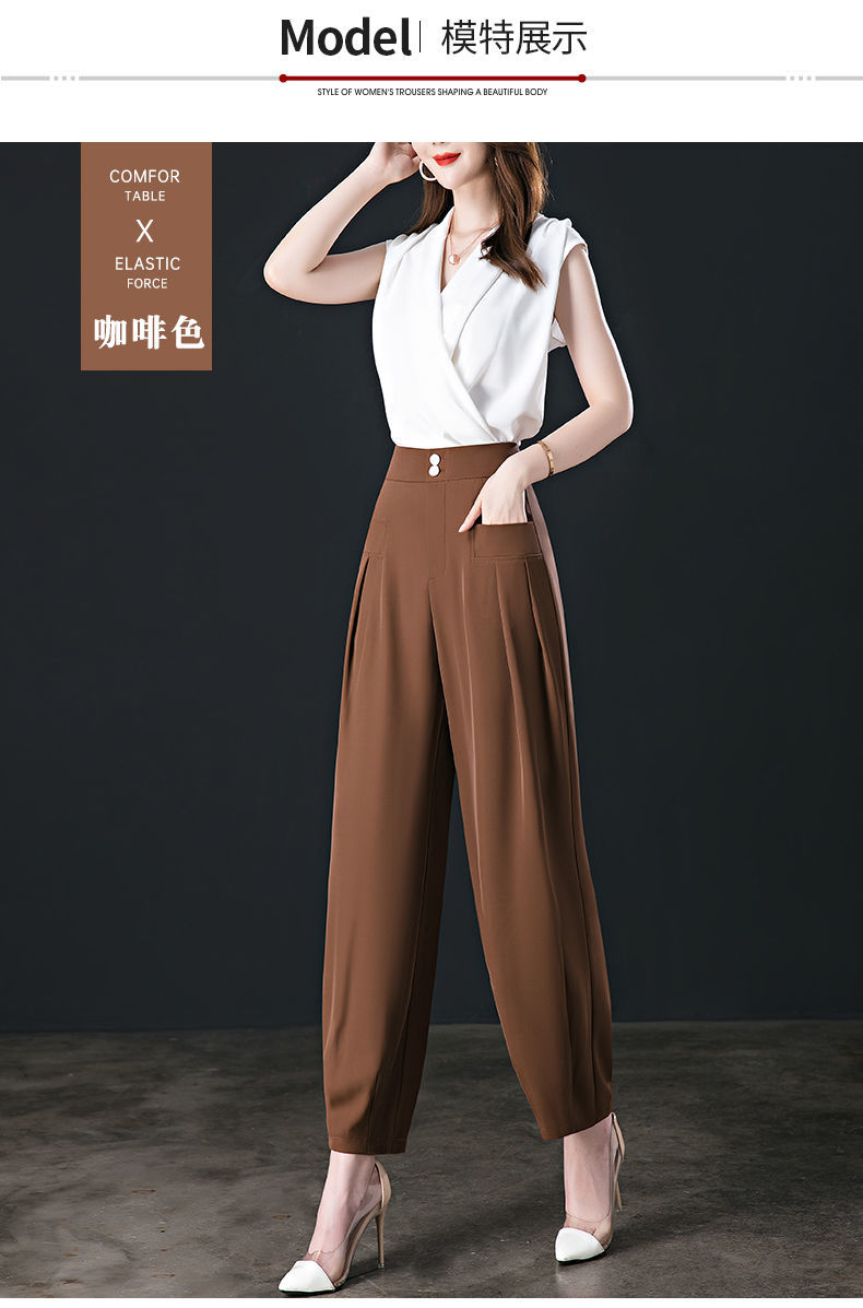 TZW-夏季薄款高腰休闲九分灯笼裤垂感时尚白色冰丝裤子