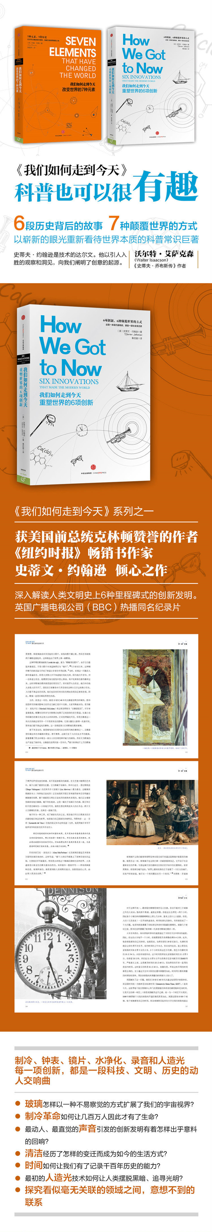 畅销书作家史蒂文·约翰逊,考察了若干世纪以来的创新史,追溯了现代生活六项主要技术(制冷、钟表、镜片、水净化、录音和人造光)的发展历史,《我们如何走到今天:重塑世界的6项创新》以全新视角审视伟大创意的力量与回响。