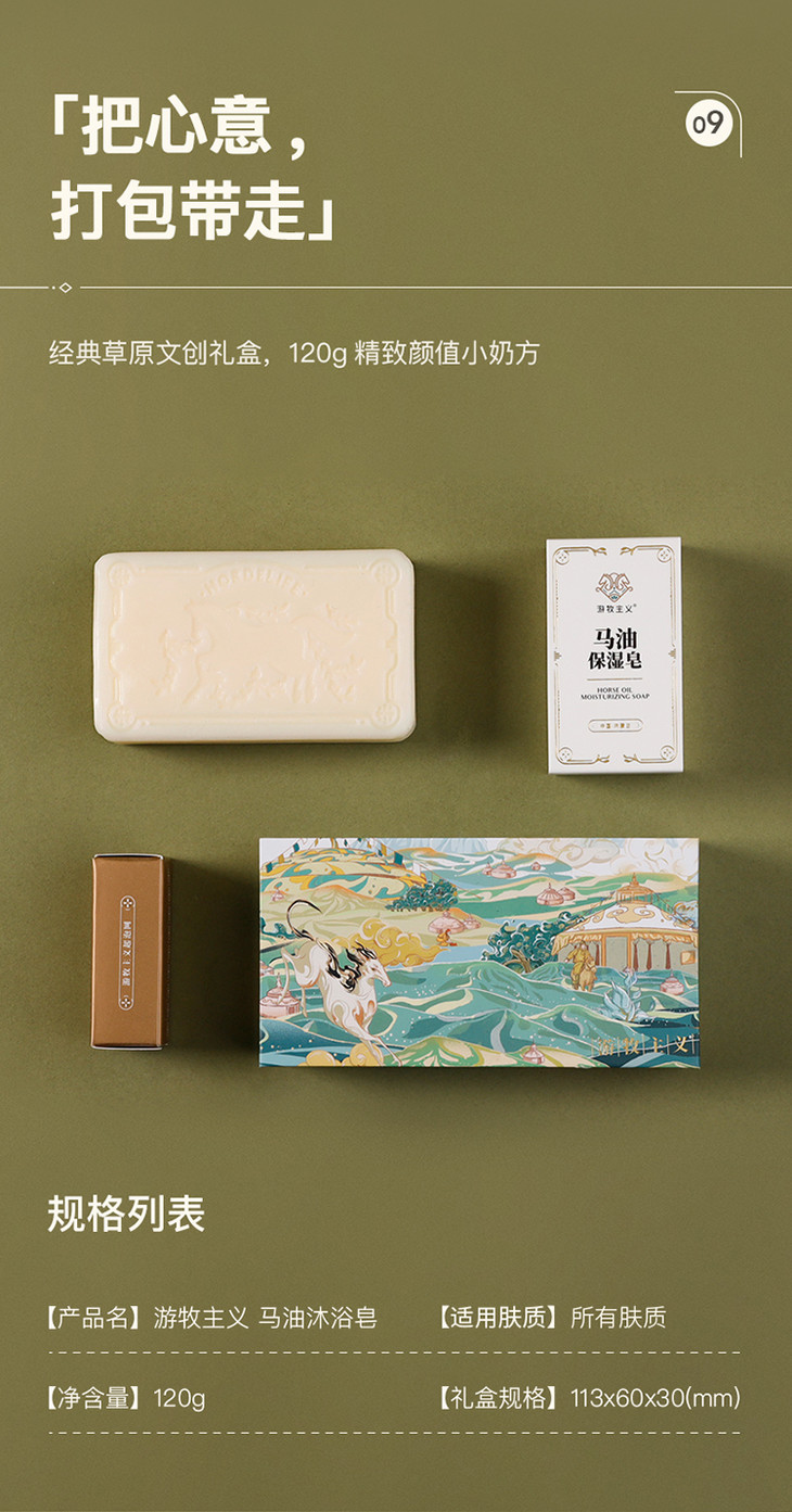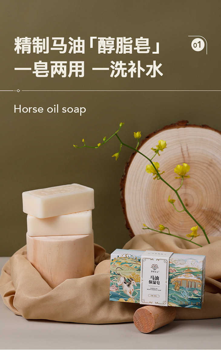 买2盒赠50g马油手霜!【来自内蒙古大草原】游牧主义马油保湿皂一皂两用一洗补水深度清洁低敏亲肤增强肌肤水润力无泪配方儿童可用