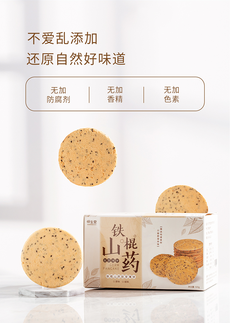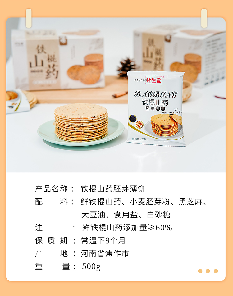 【怀生堂】铁棍山药胚芽薄饼「 山药≥60%」,健康养生零食!500克/盒