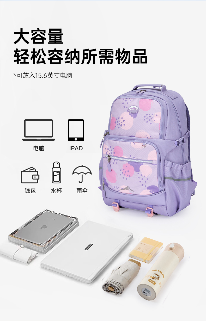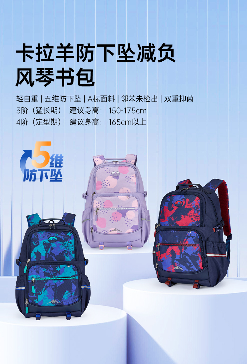 卡拉羊26.4L/30.4L中学生5维减负防下坠护脊风琴书包大容量双肩包绮遇记 CX5564/L
