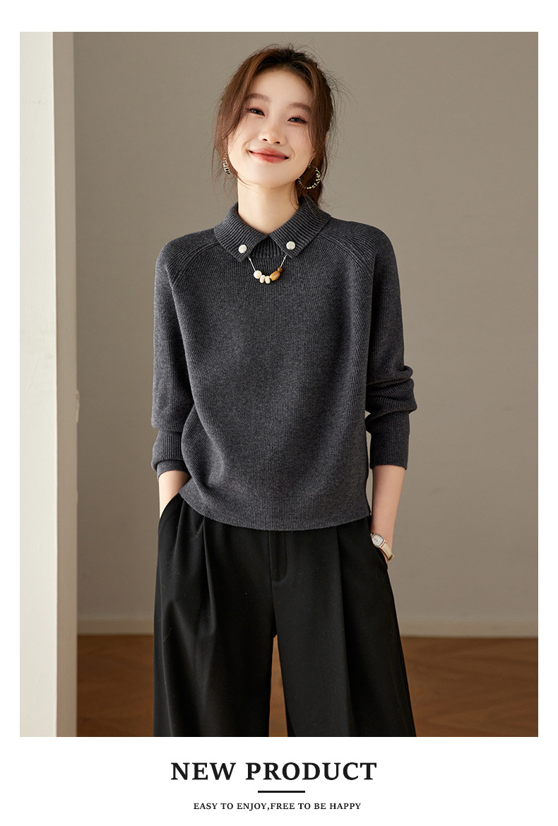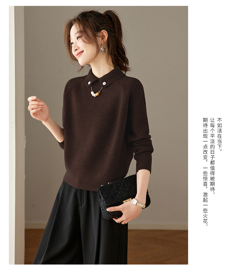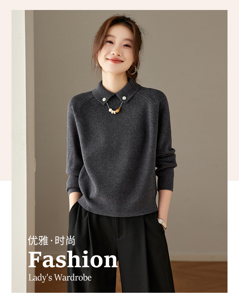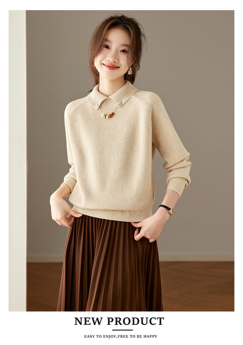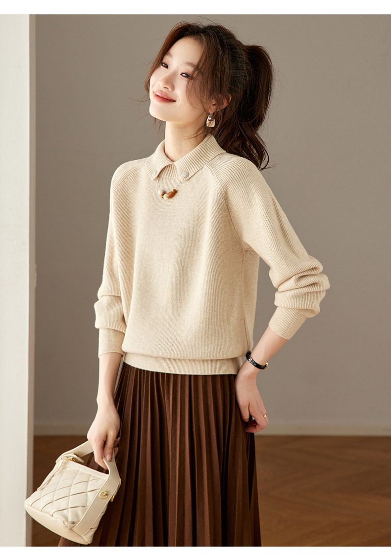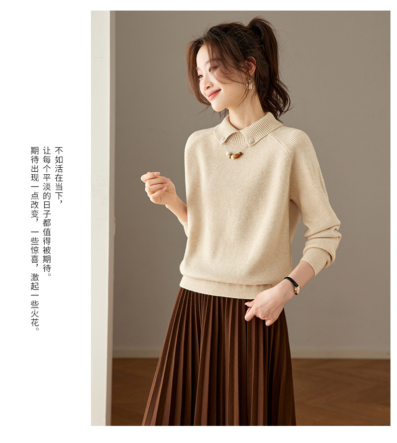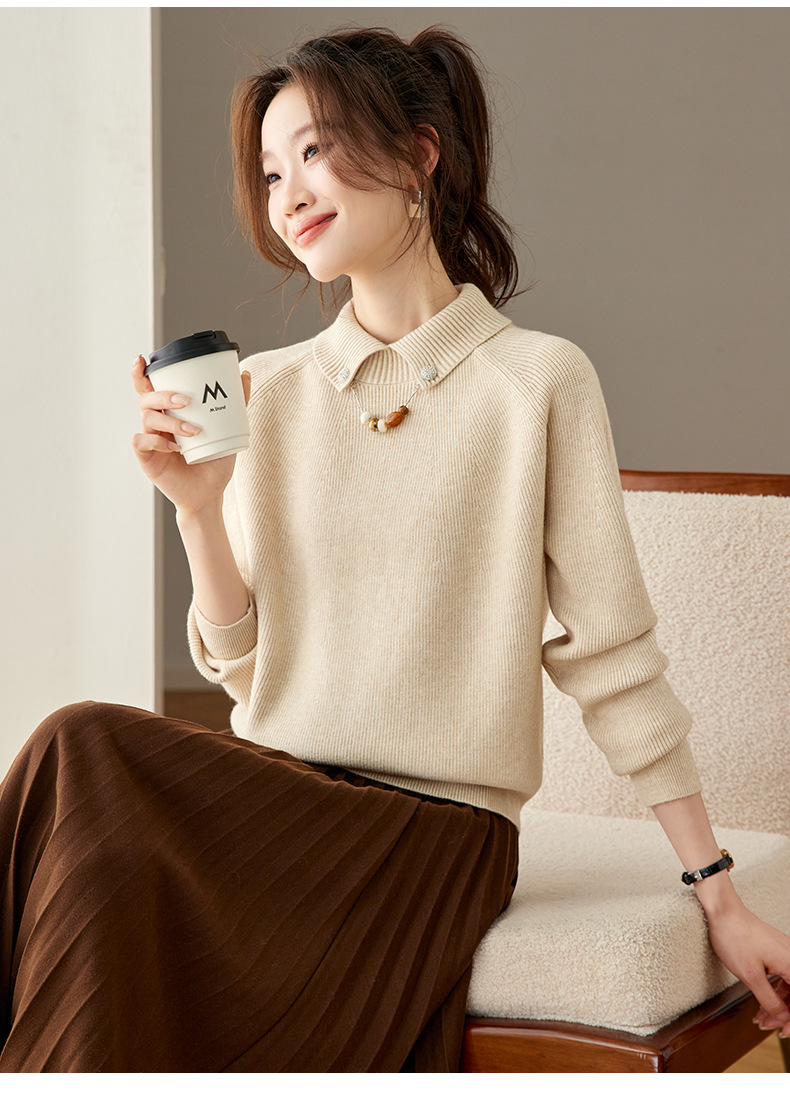 CC复古保暖毛衣女秋冬宽松显瘦内搭高级感好看减龄娃娃领针织上衣厚