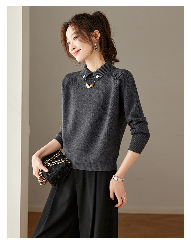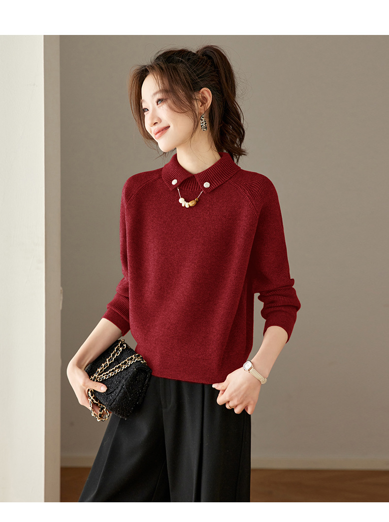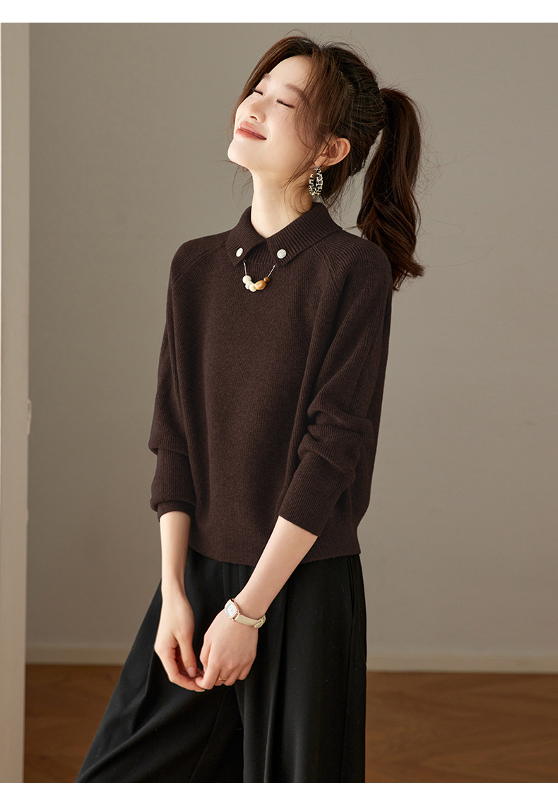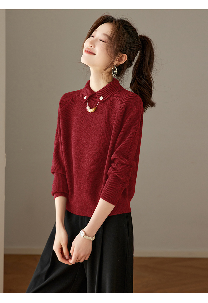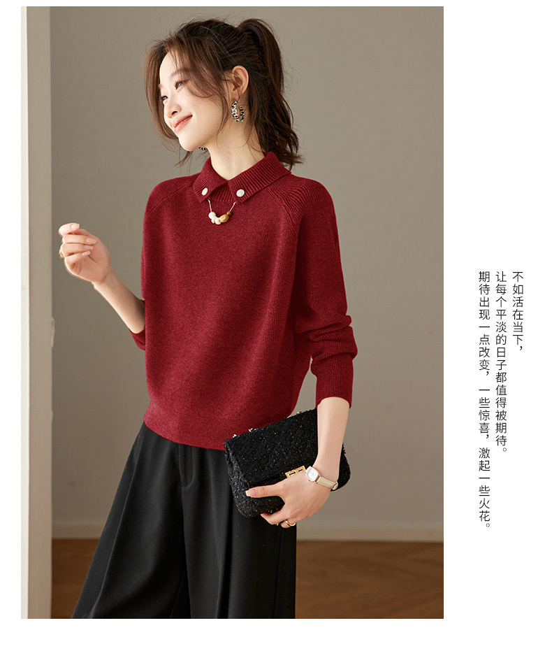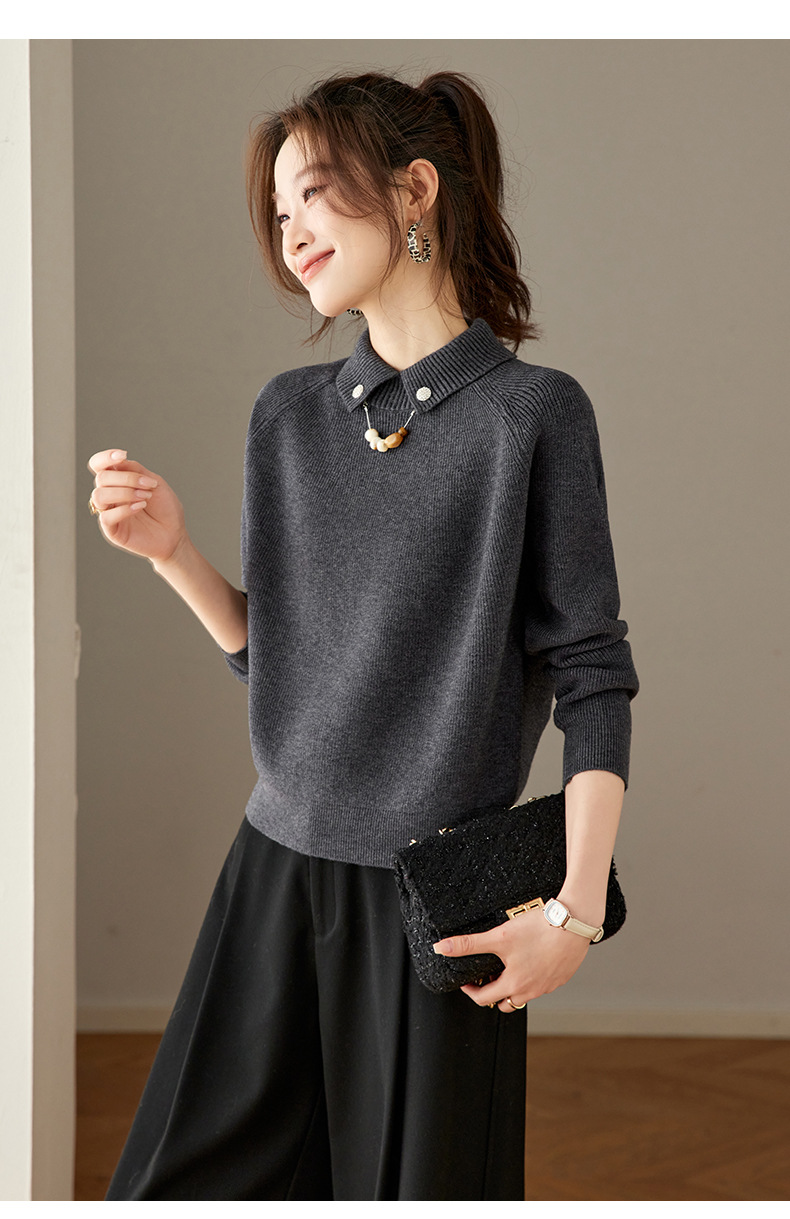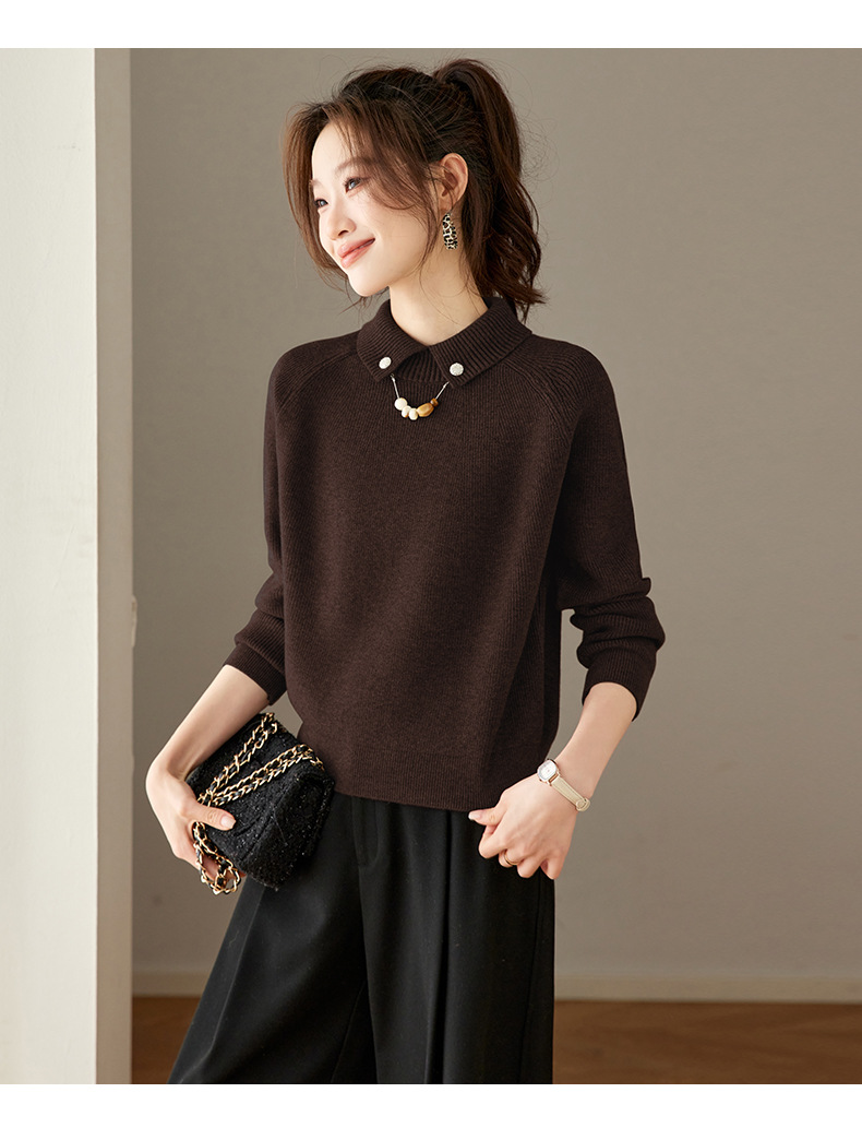 CC复古保暖毛衣女秋冬宽松显瘦内搭高级感好看减龄娃娃领针织上衣厚