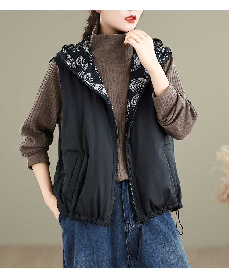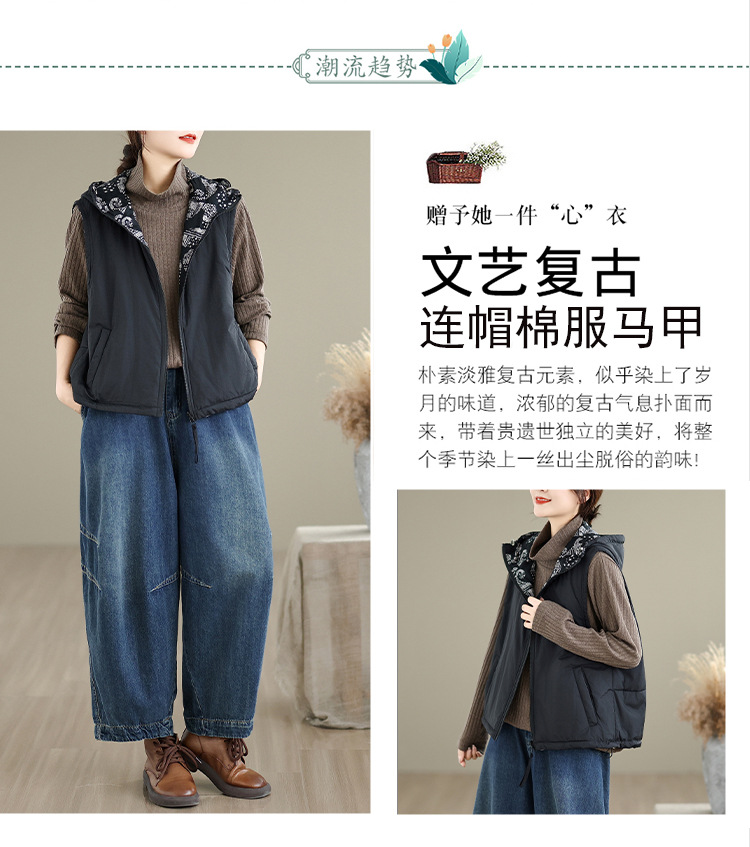 A8636-1两面穿秋冬马甲女2025年新款百搭连帽棉显瘦百搭保暖棉衣棉服外套