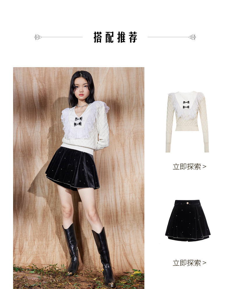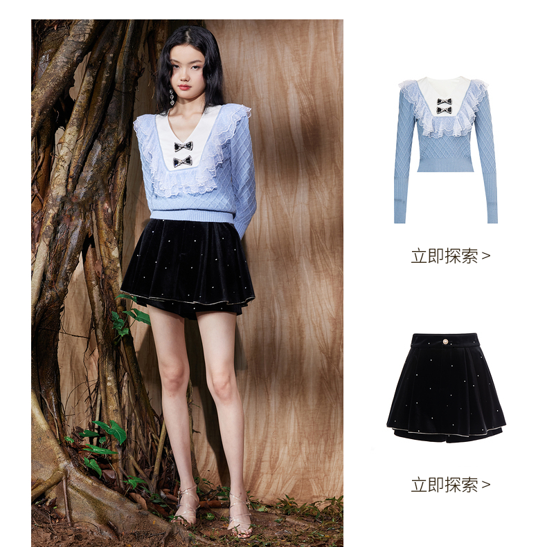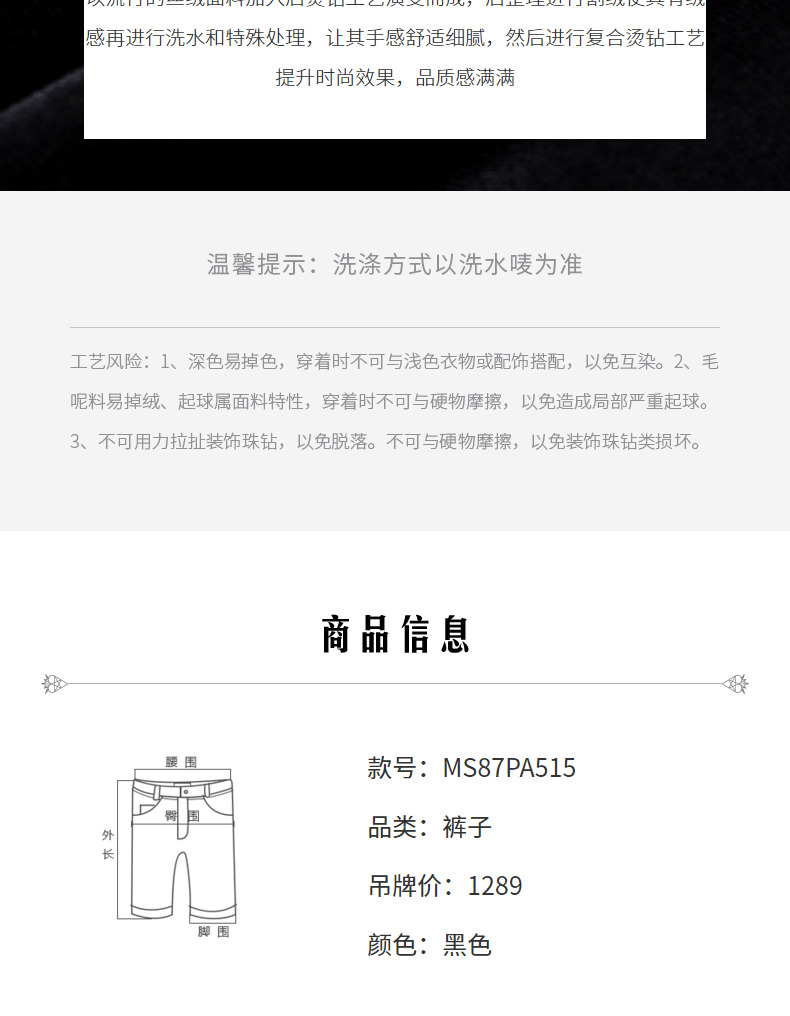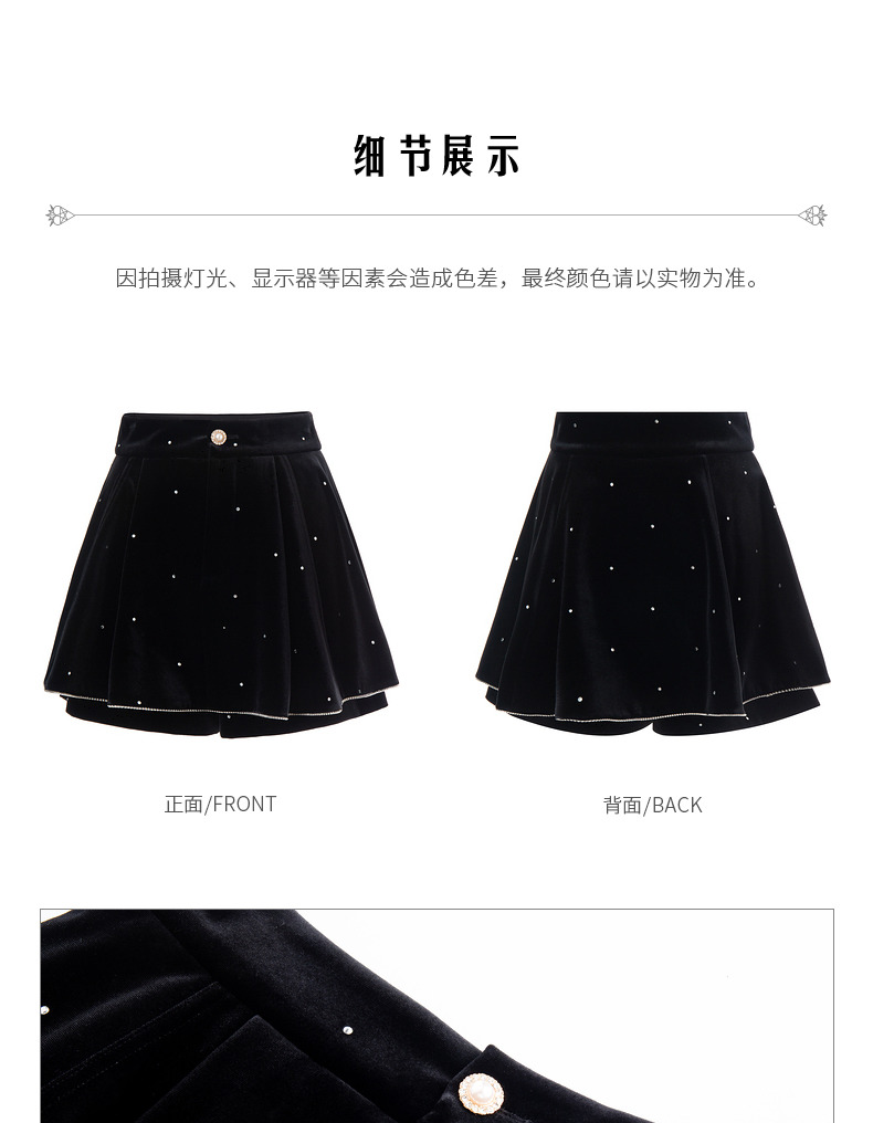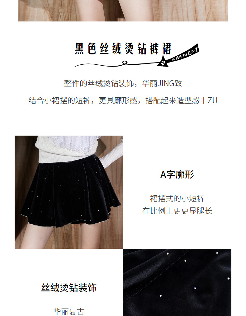 MAXRIENY法式复古丝绒烫钻裤裙廓形a字短裤秋款华丽精致感热裤(货号:MS87PA515)