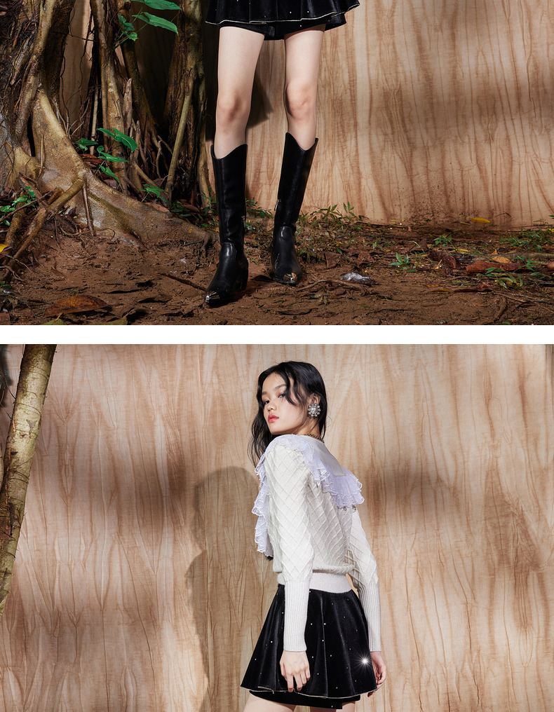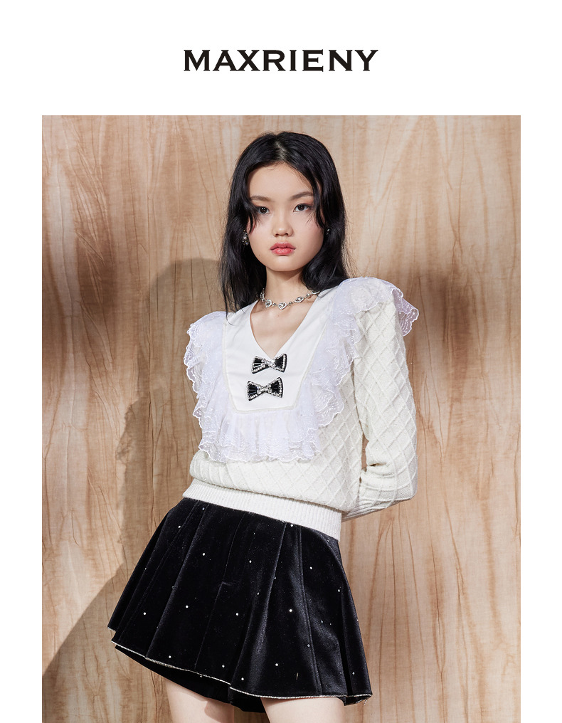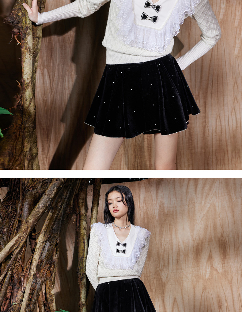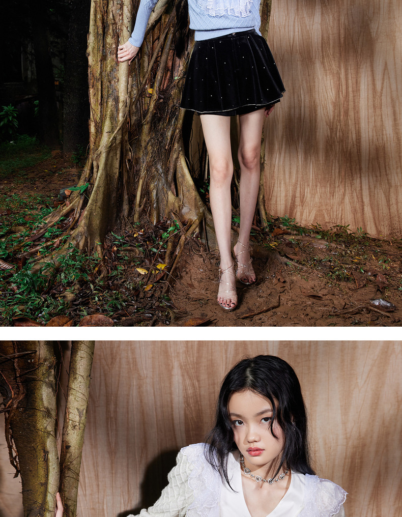 MAXRIENY法式复古丝绒烫钻裤裙廓形a字短裤秋款华丽精致感热裤(货号:MS87PA515)