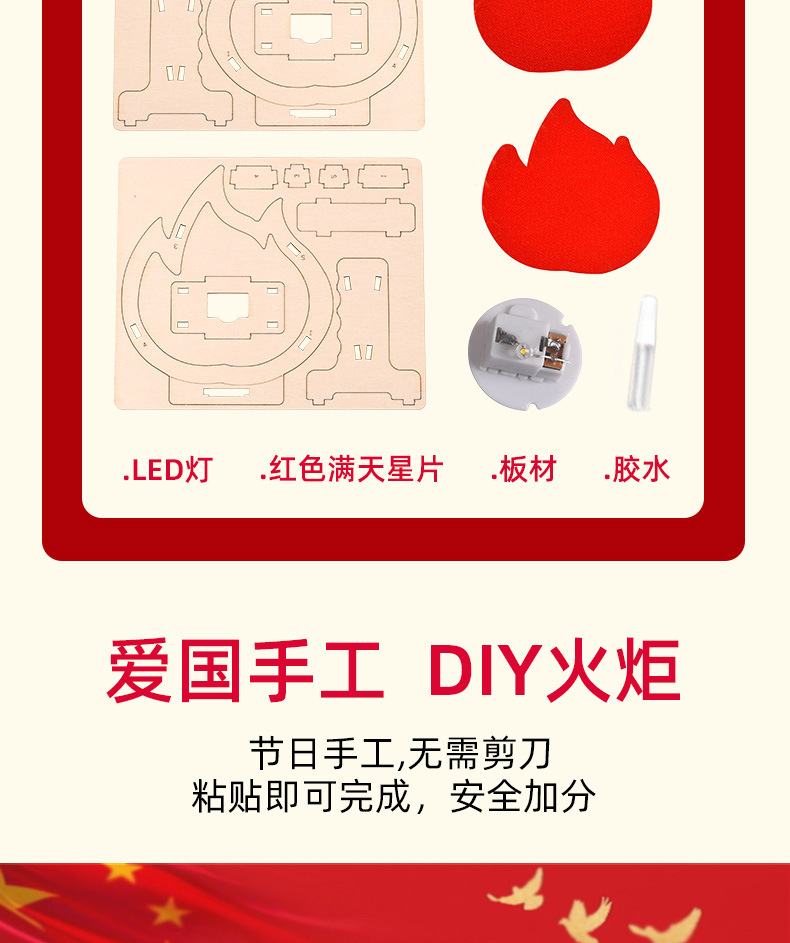 爱国建军手工星星之火儿童节材料包制作幼儿园国庆节道具diy火炬