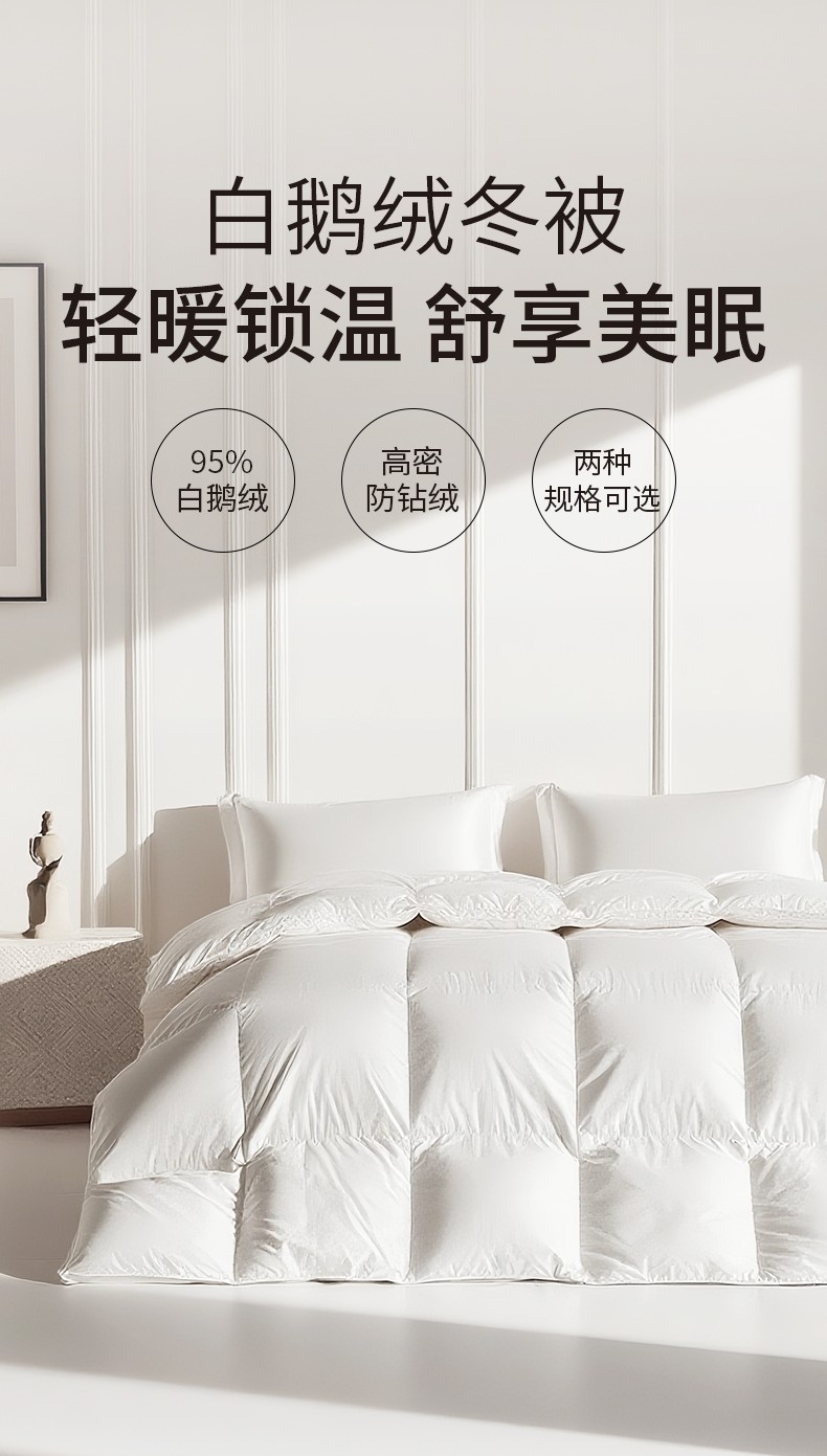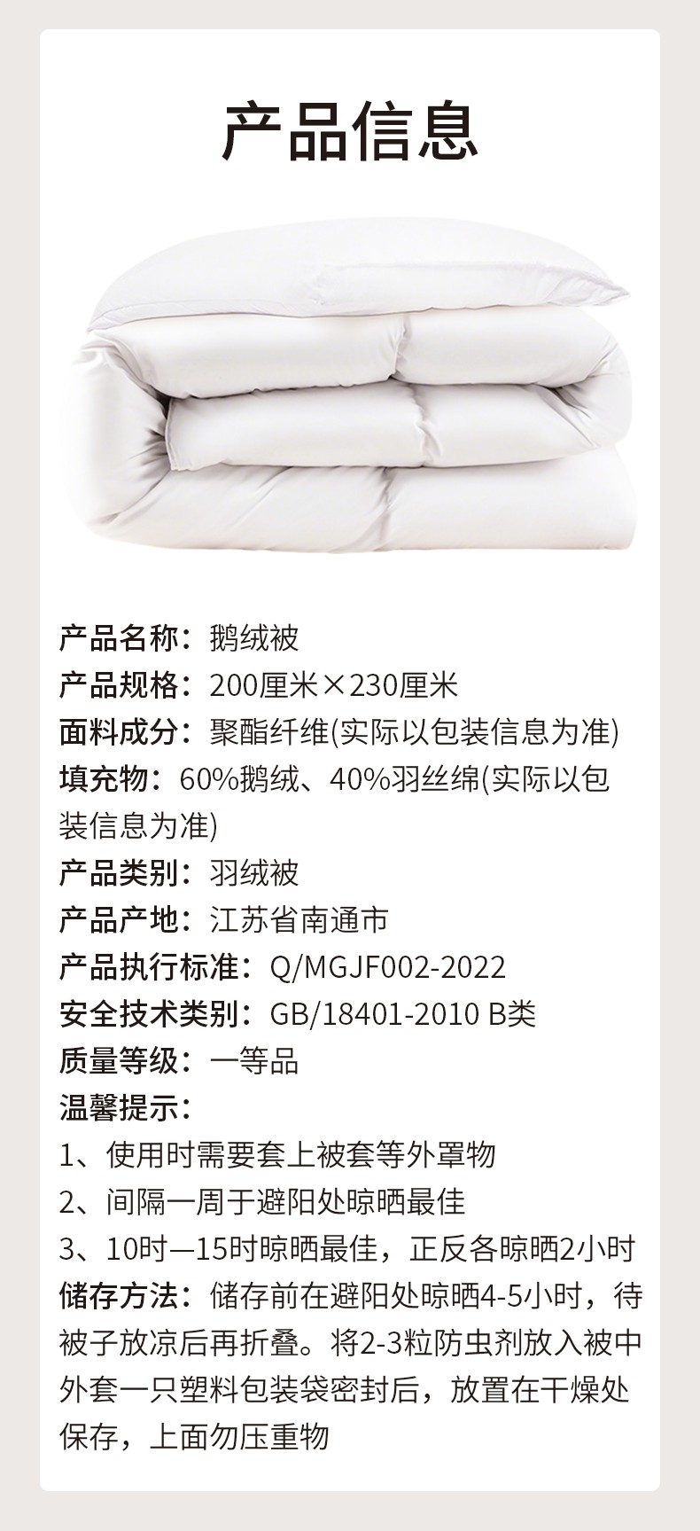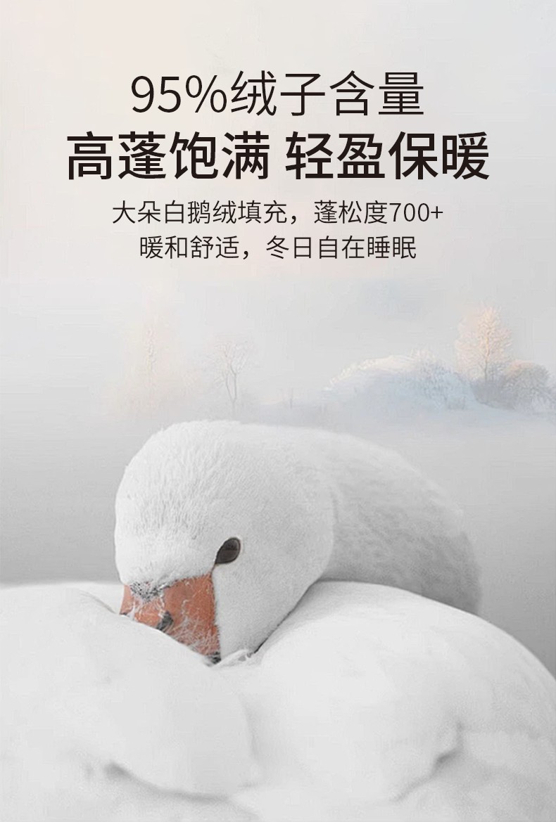 笙观相沐鹅绒被 95%绒子含量 大朵白鹅绒填充 高蓬饱满 轻盈保暖