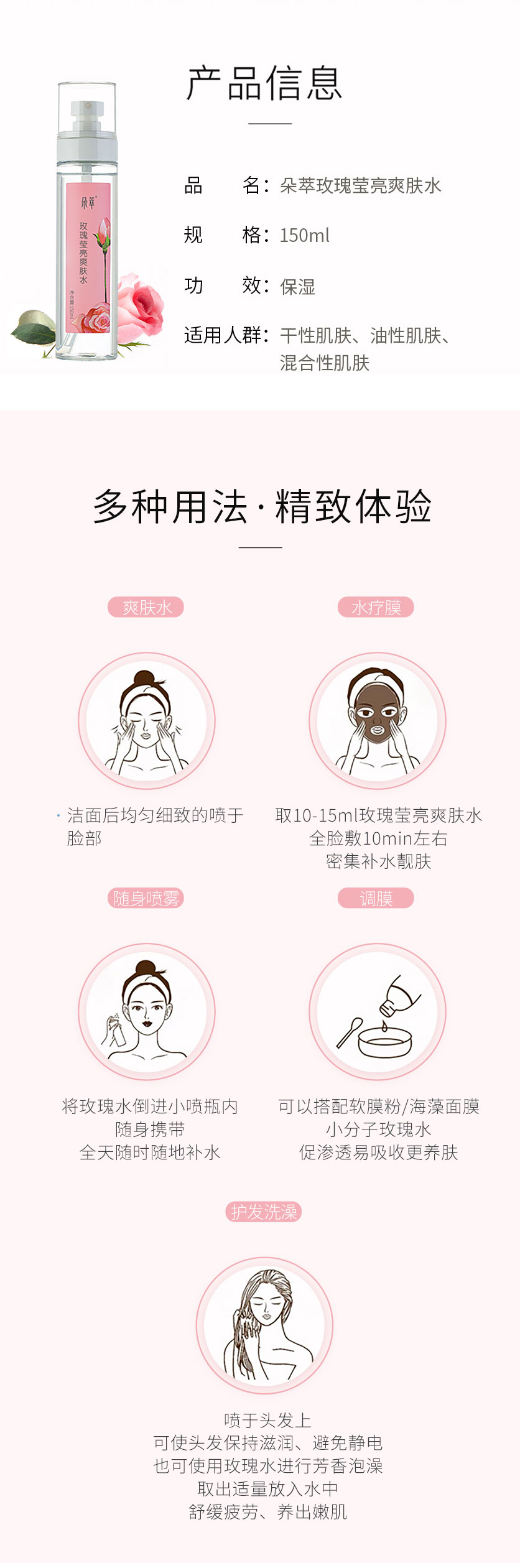 朵萃·玫瑰莹亮爽肤水150g 水气蒸馏法 萃取不破坏