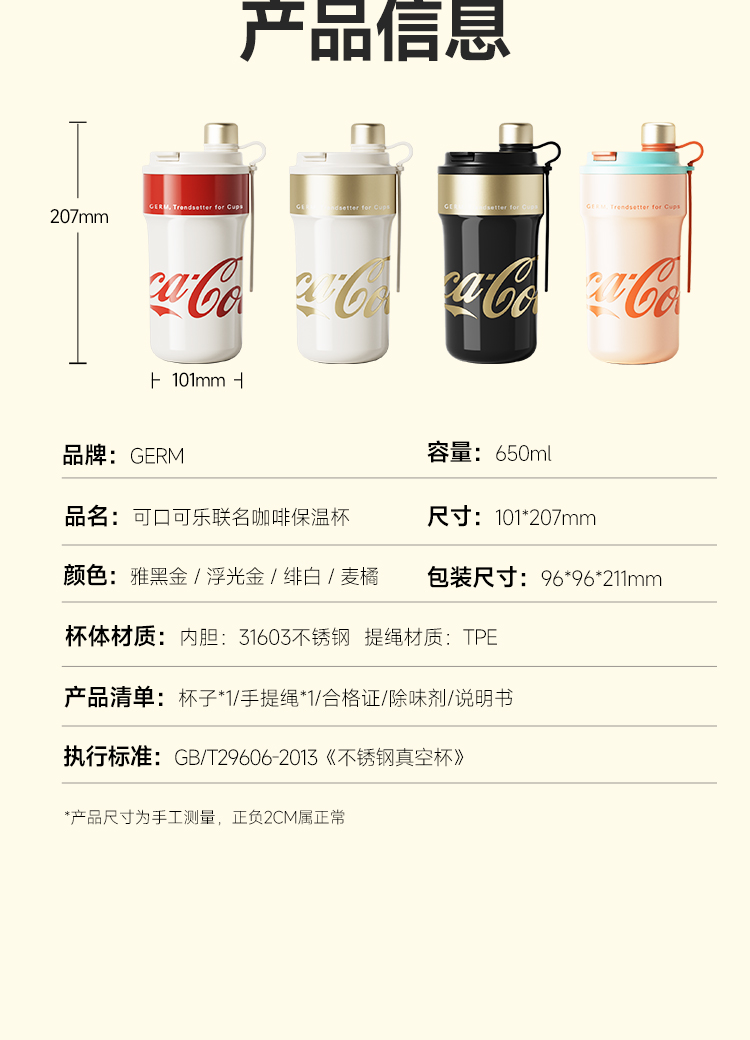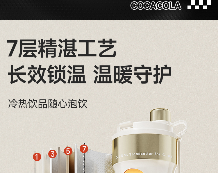 GERM可口可乐联名款派派保温杯-雅黑金-650ml