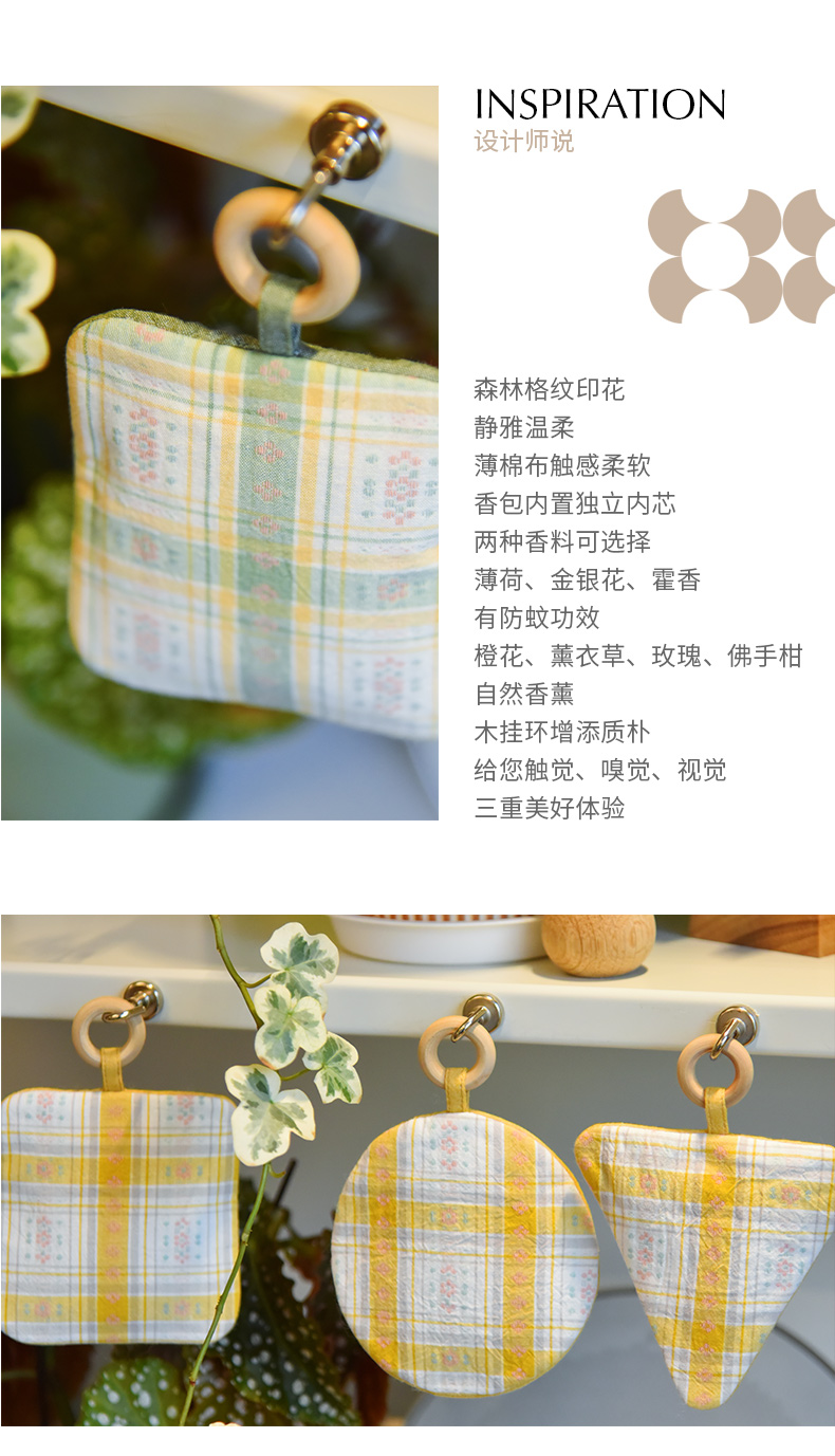 森系格纹香包轻奢田园衣柜持久香气除味香囊香袋
