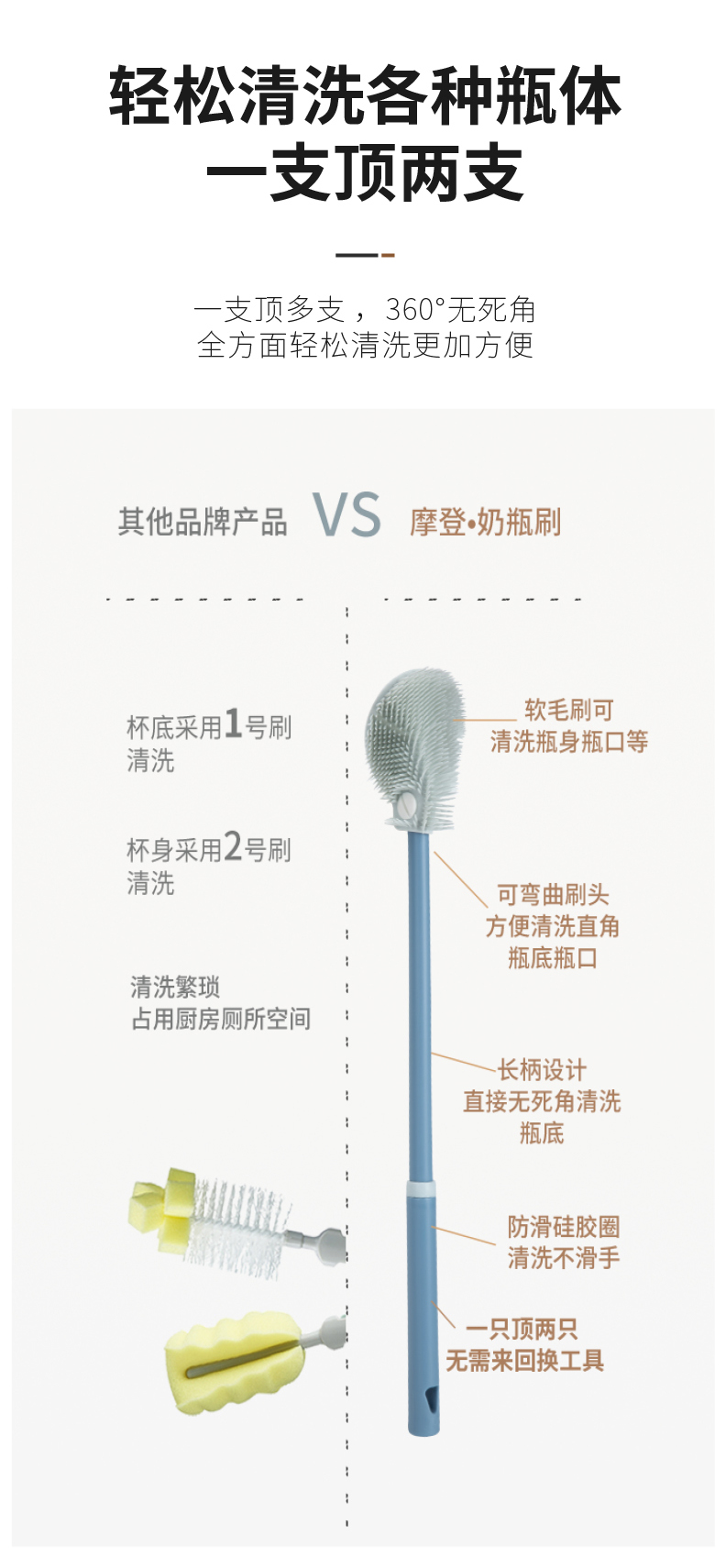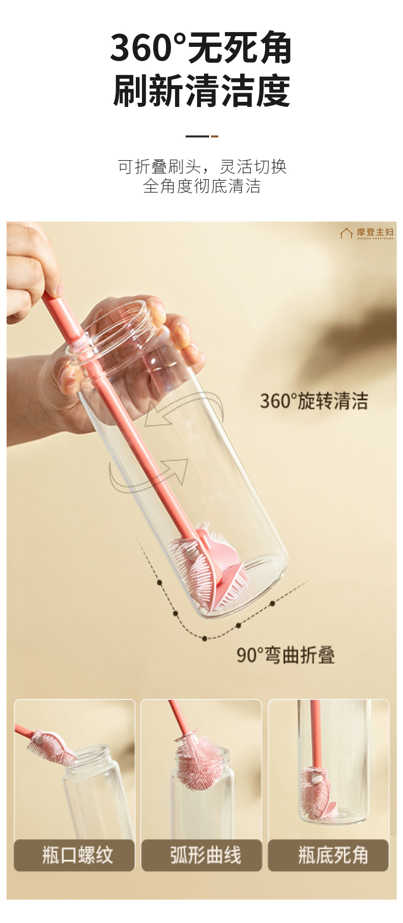 摩登主妇硅胶杯刷多功能清理刷子保温杯奶瓶清洁刷无死角清洗神器