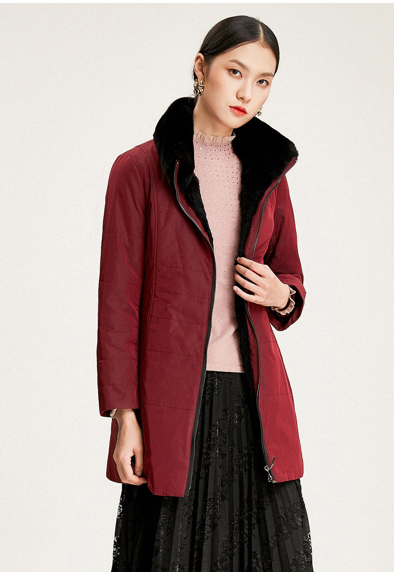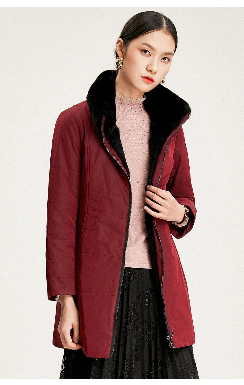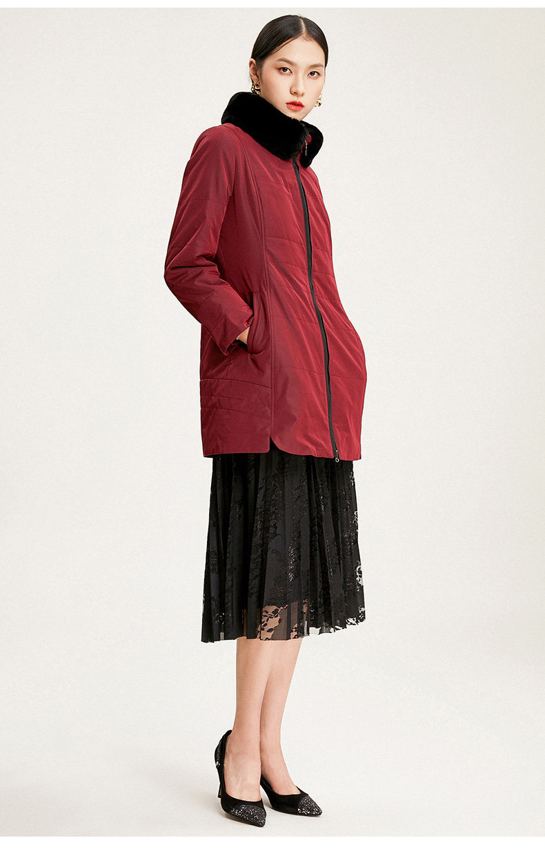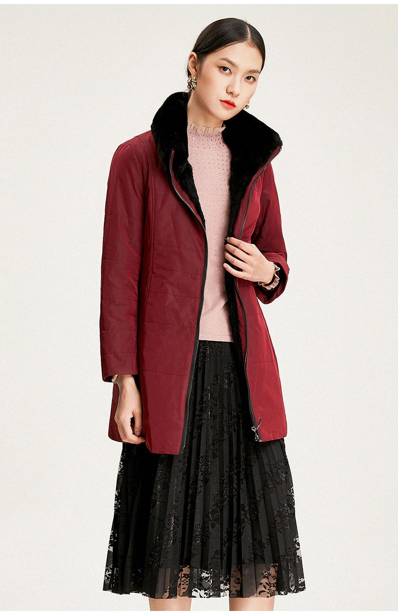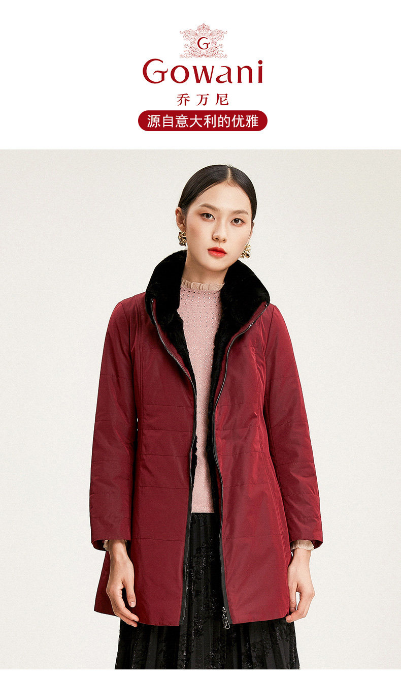 乔万尼派克服冬季修身显瘦外套女保暖毛领皮草中长款EN4N781