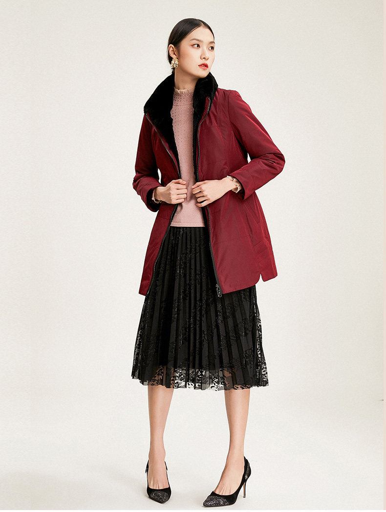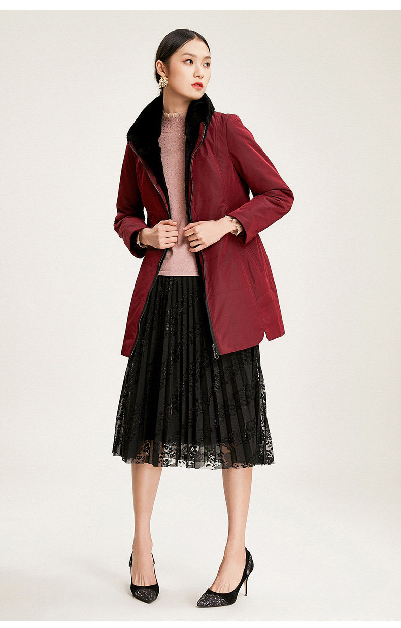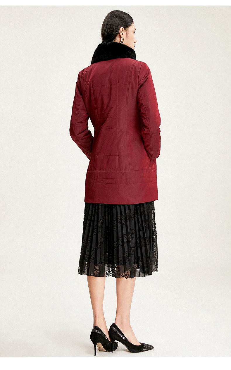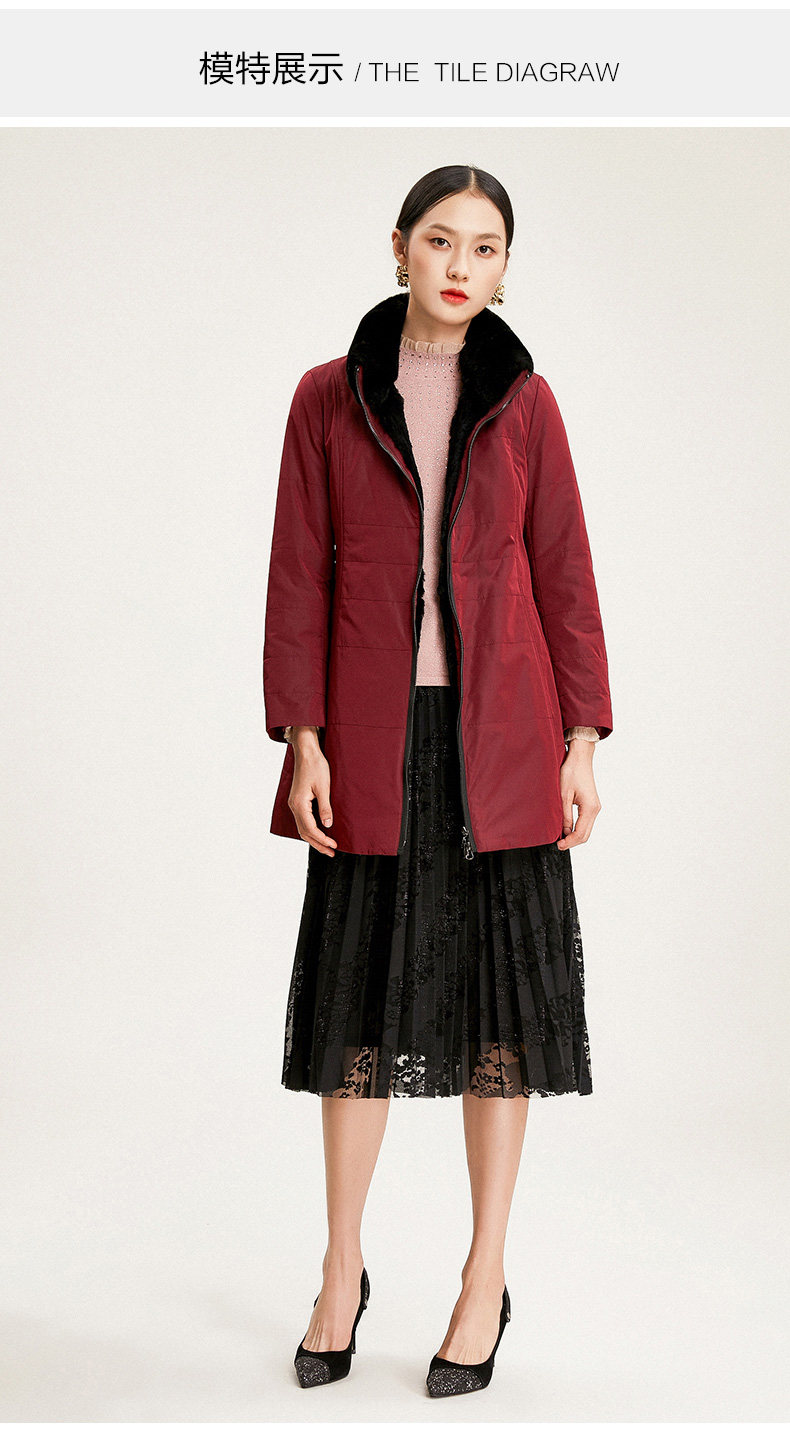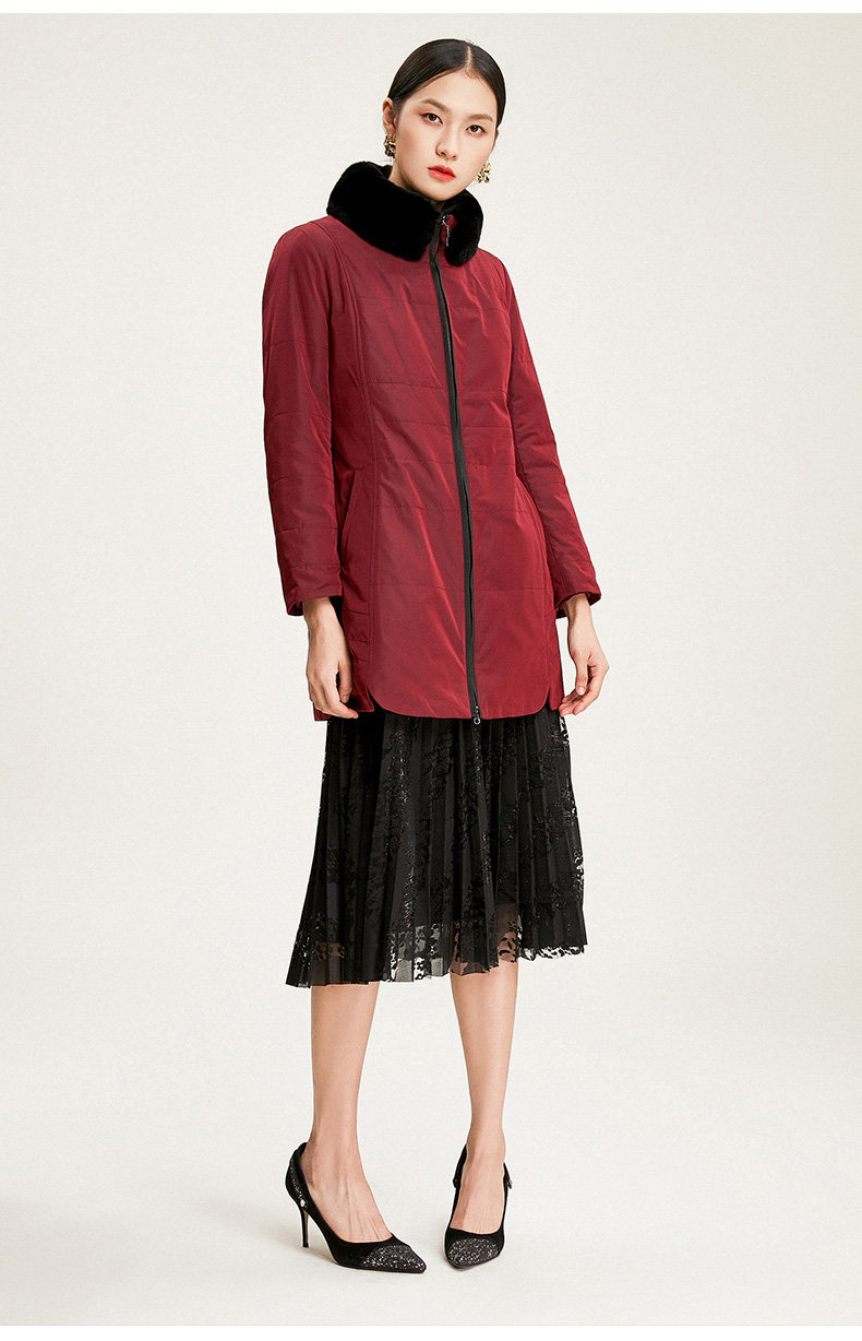 乔万尼派克服冬季修身显瘦外套女保暖毛领皮草中长款EN4N781