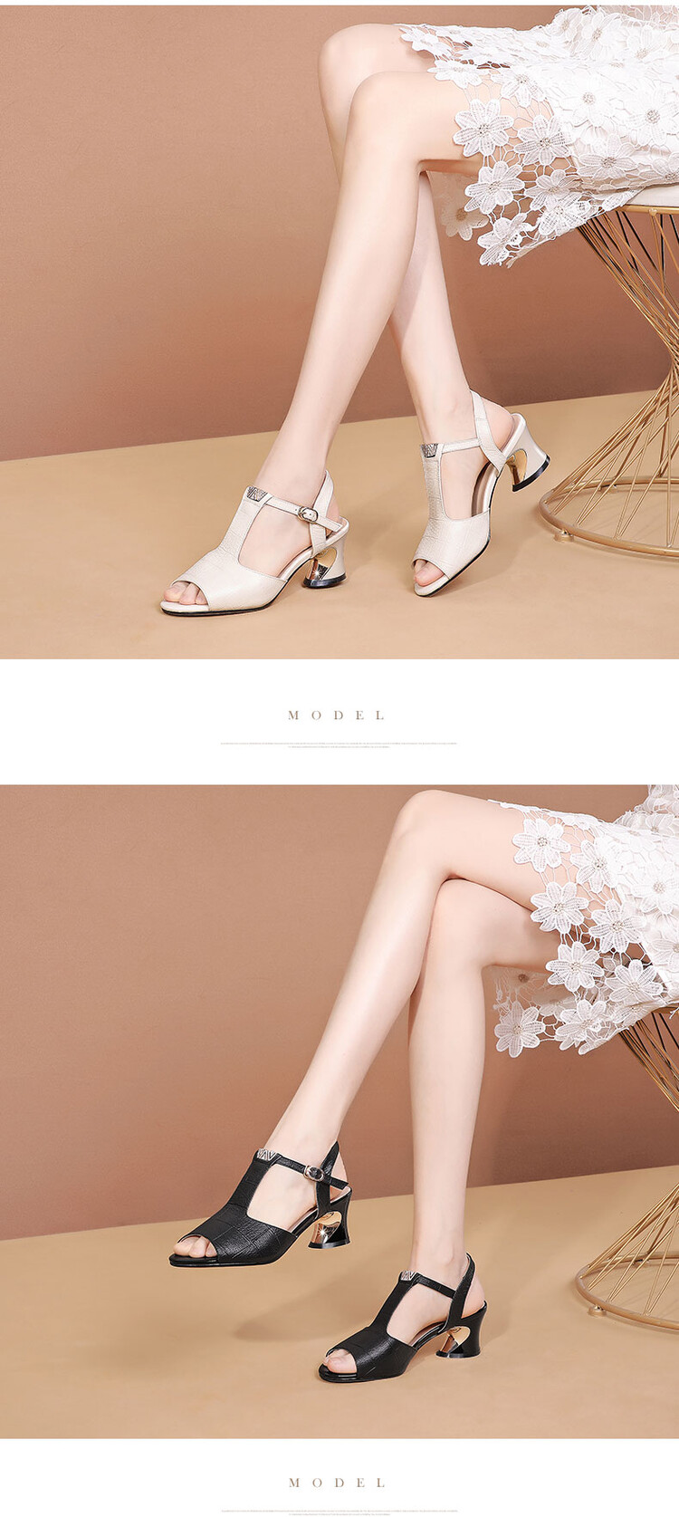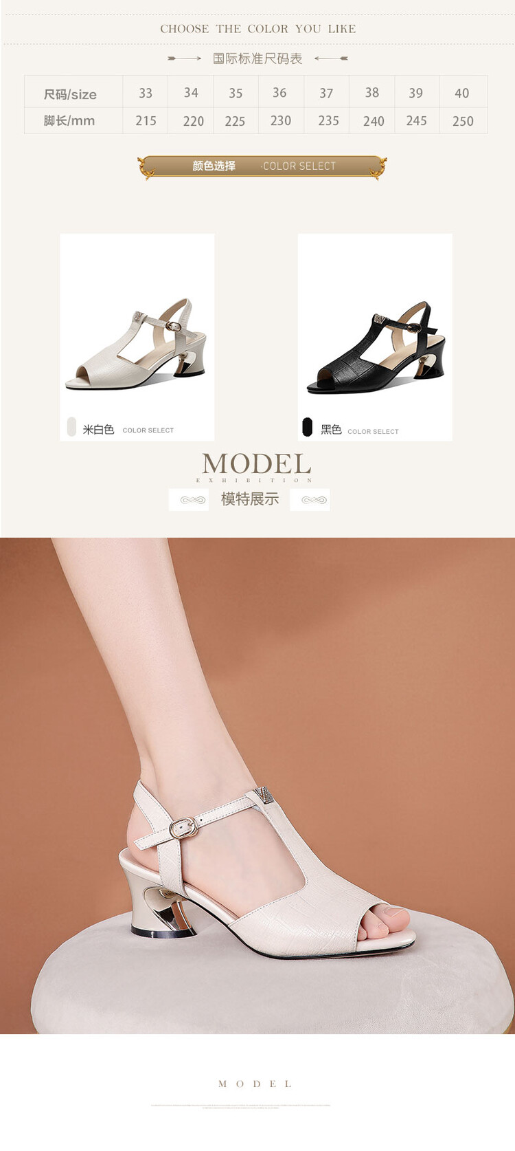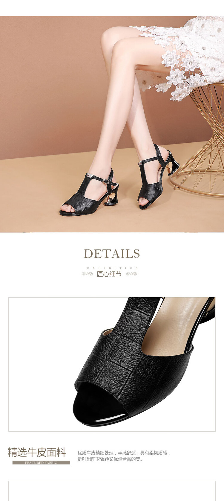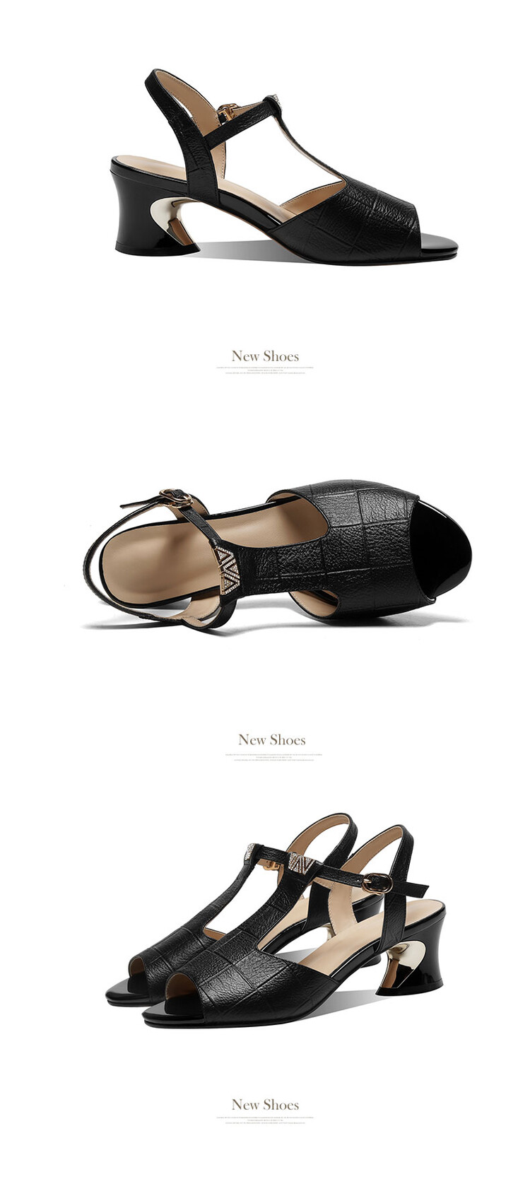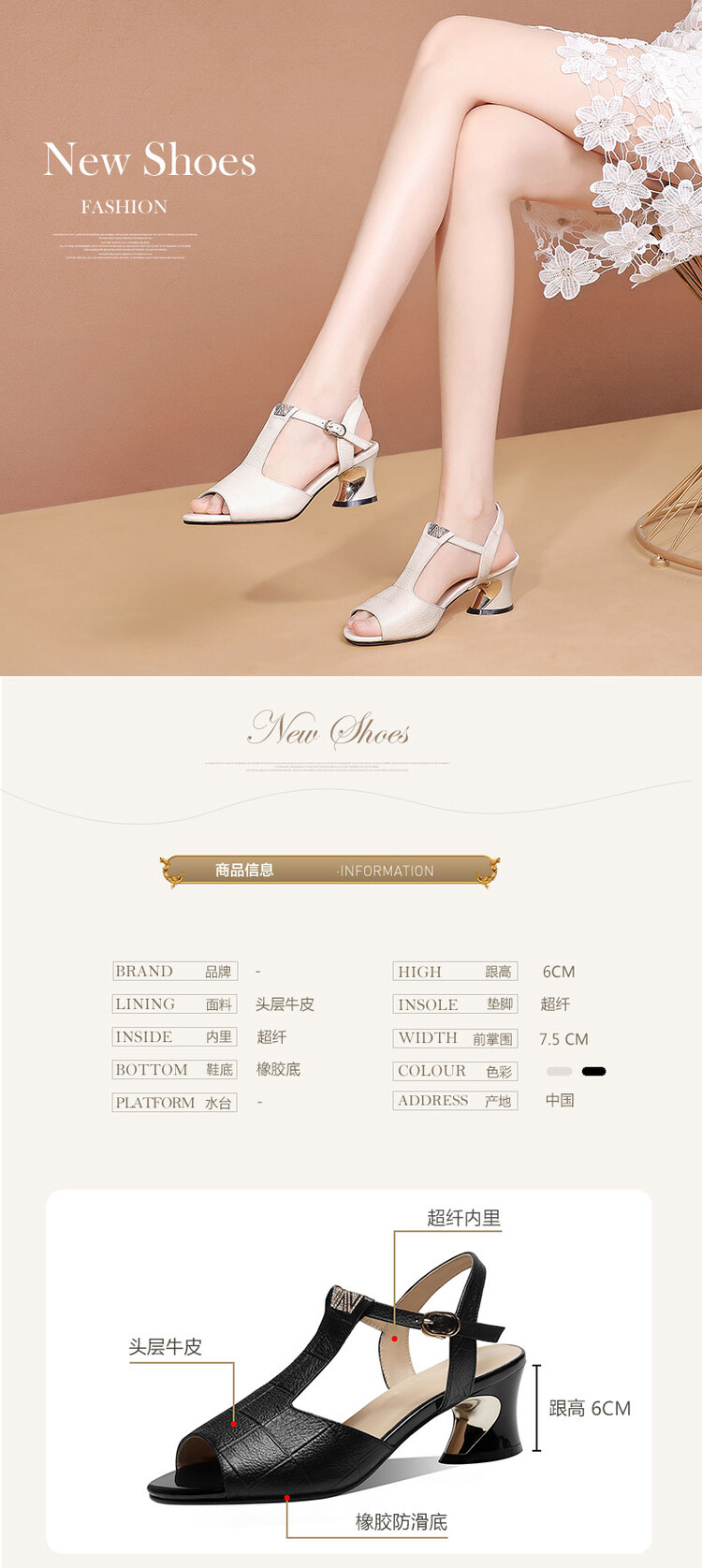 中跟新款真软皮粗跟鱼嘴鞋,镂空格子软皮罗马凉鞋JLD-629