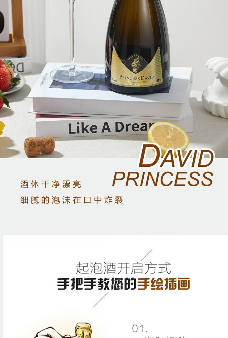 黛威·王妃 经典意大利风情起泡酒 甜型汽泡酒鸡尾酒微醺荔枝味果酒至爱之选 750ml单支装