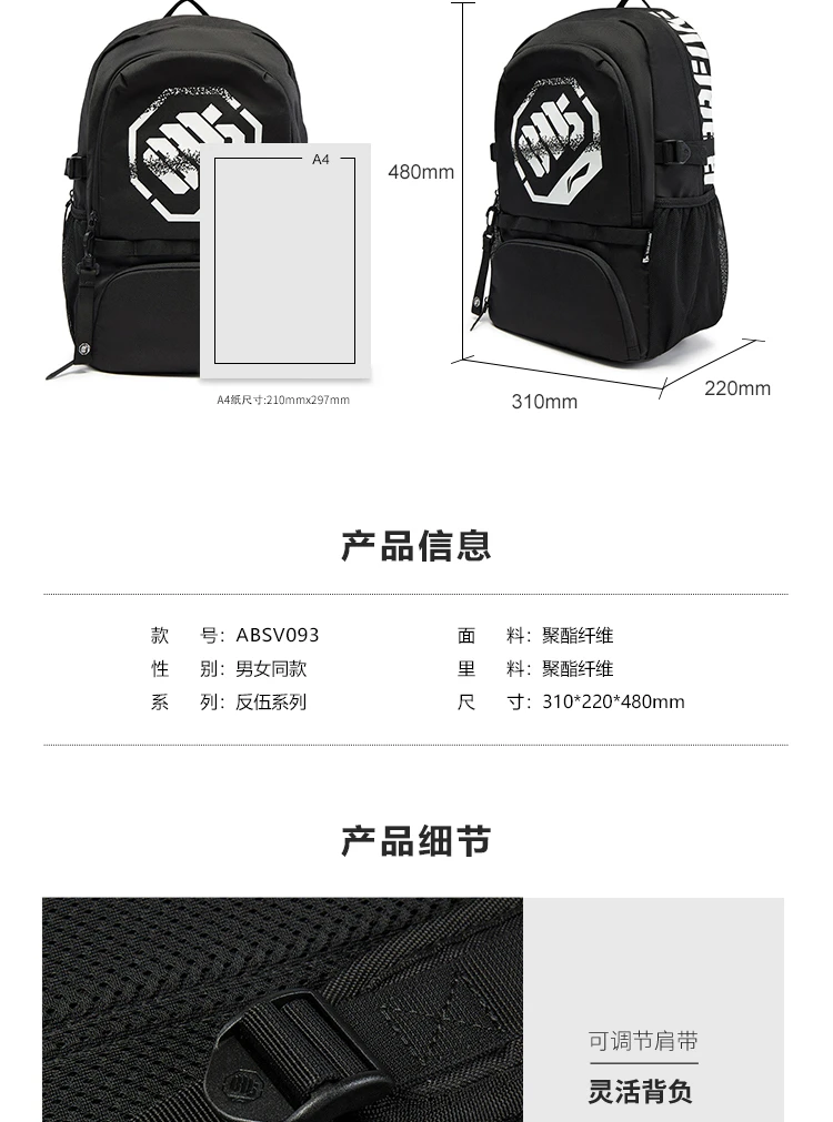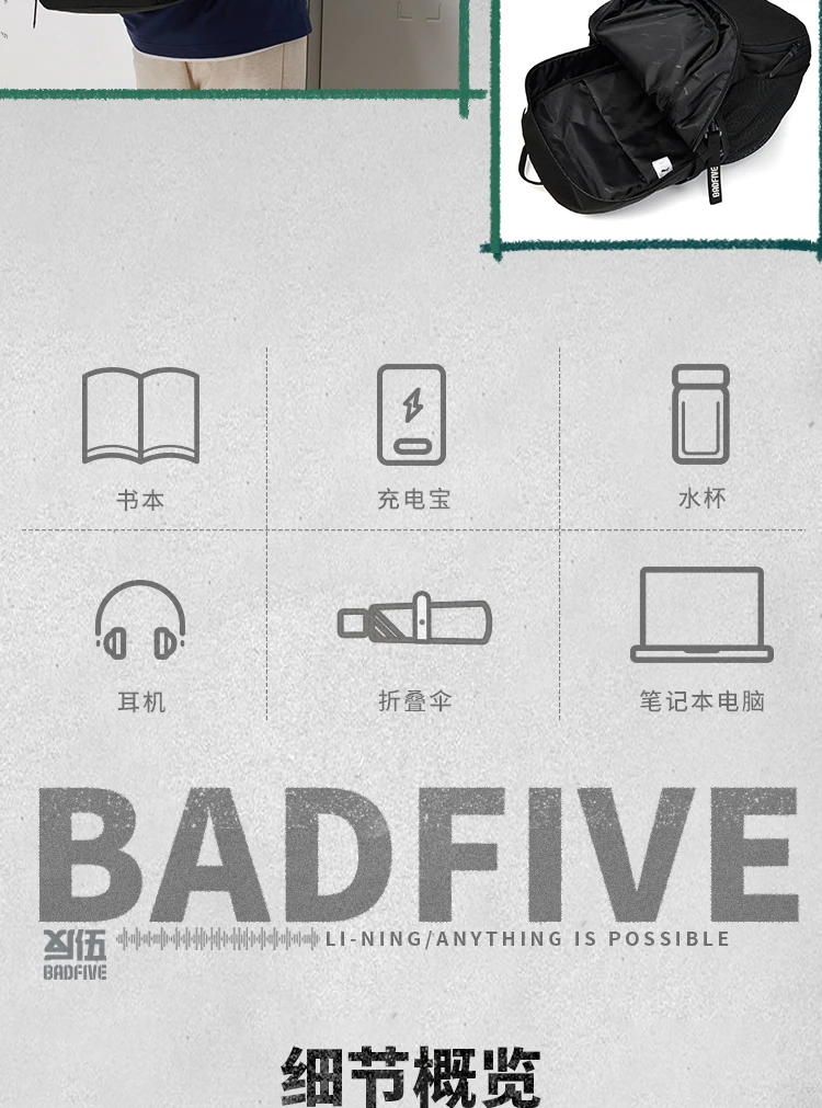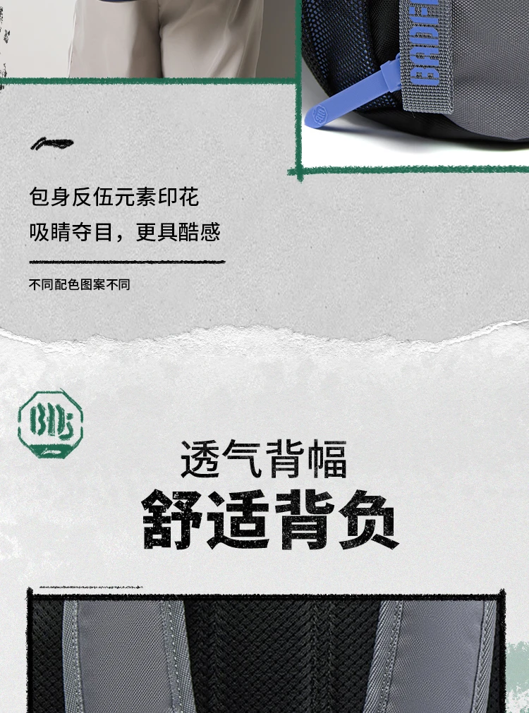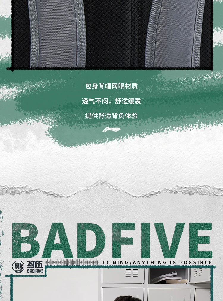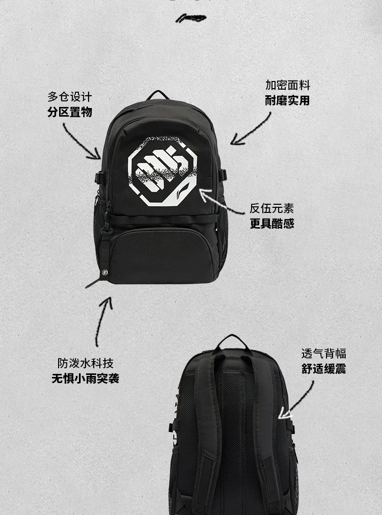 李宁反伍BADFIVE防泼水双肩包ABSV093
