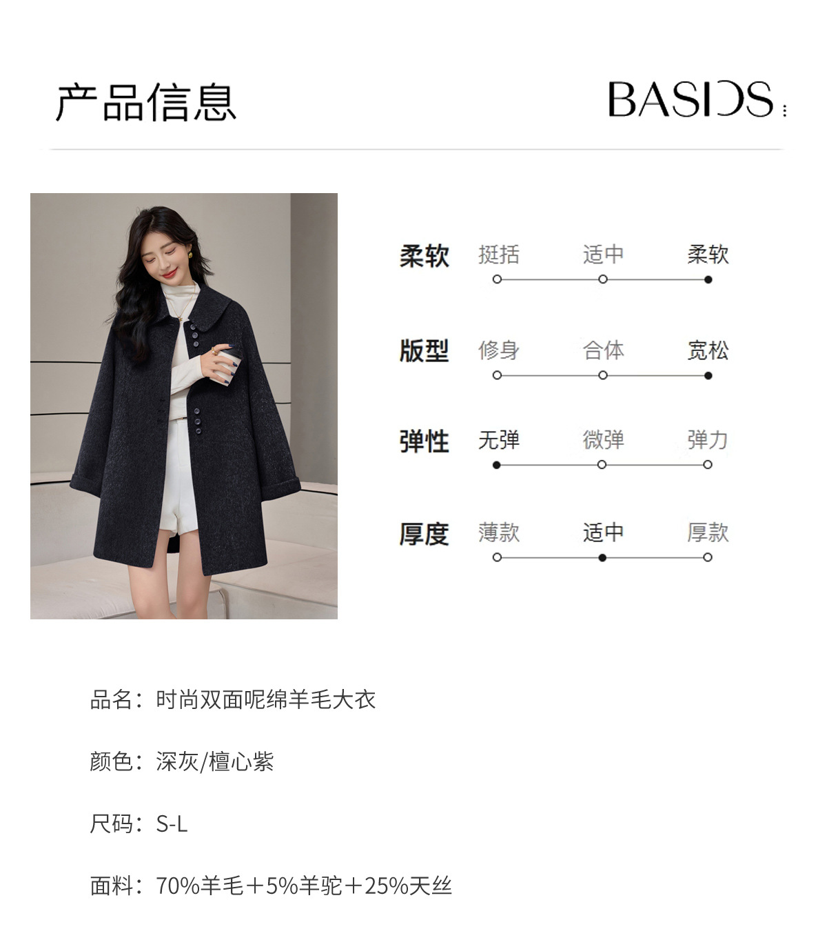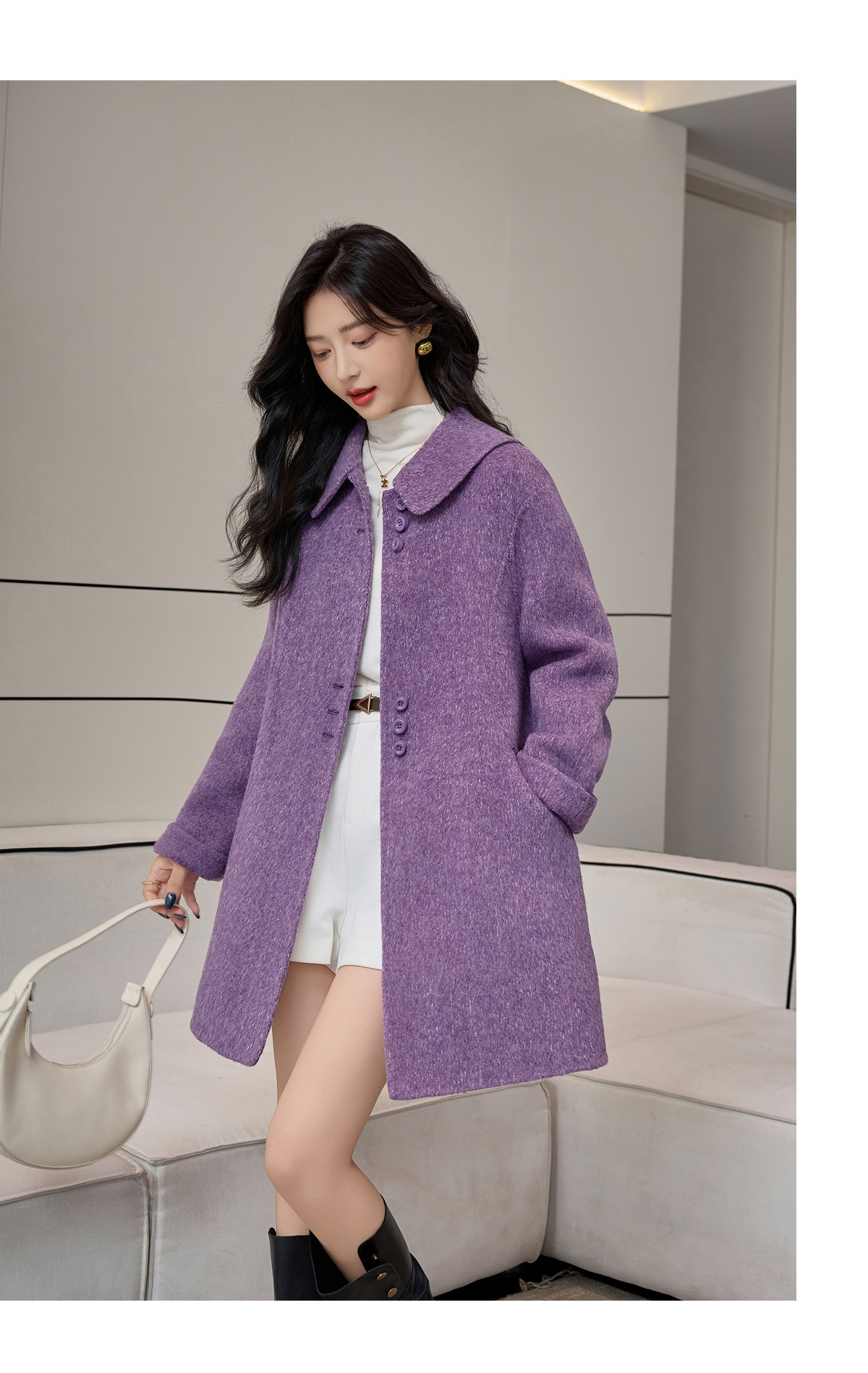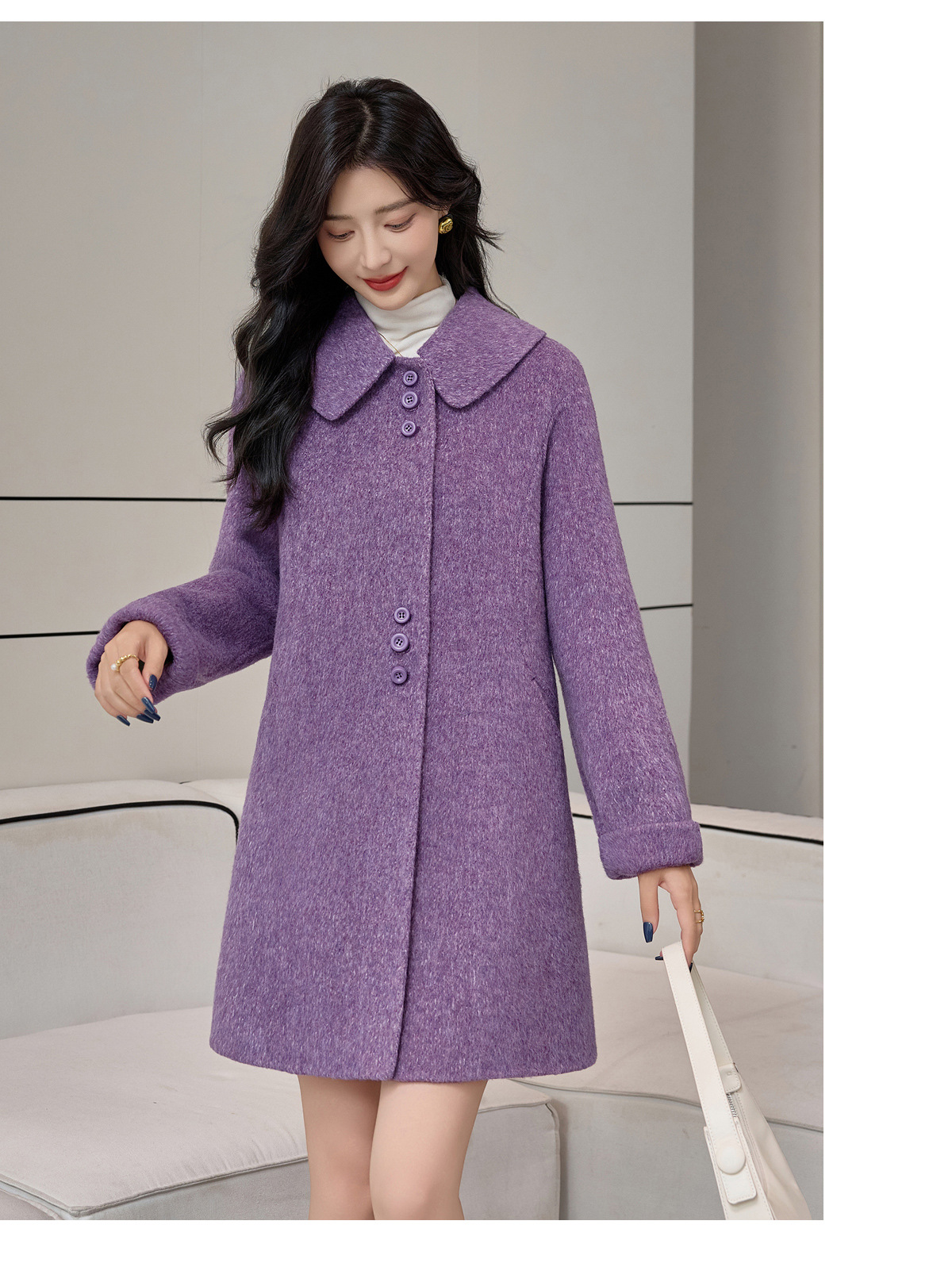 TC 914522单排扣紫色羊毛呢子毛呢外套大衣 商品图4