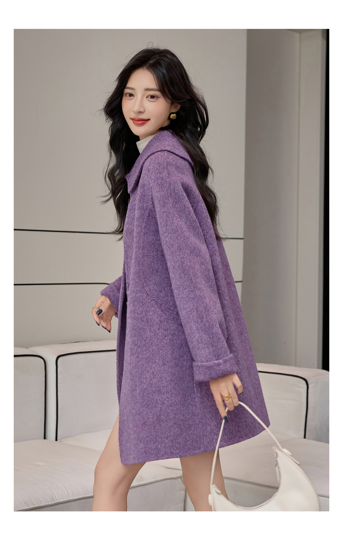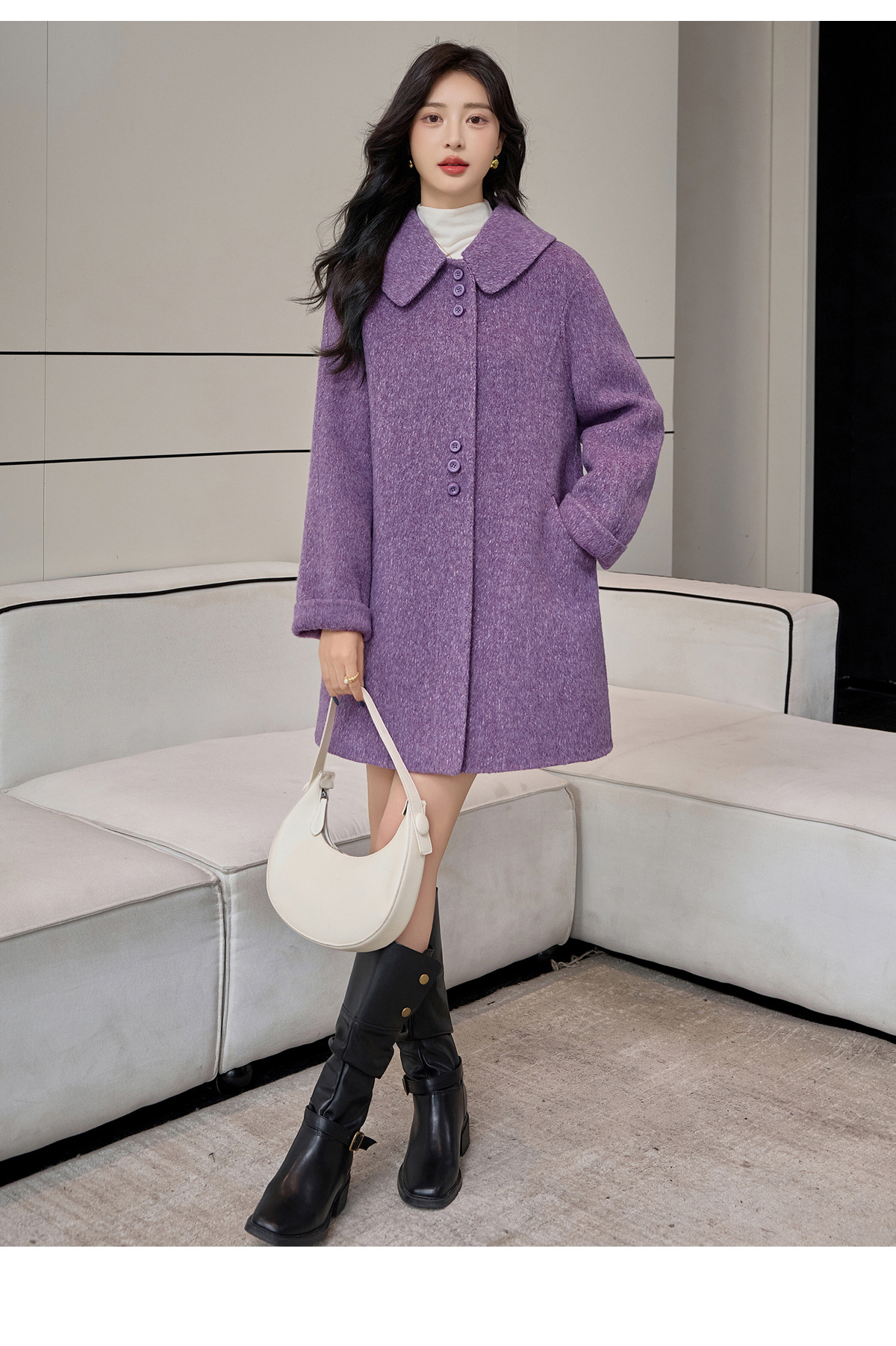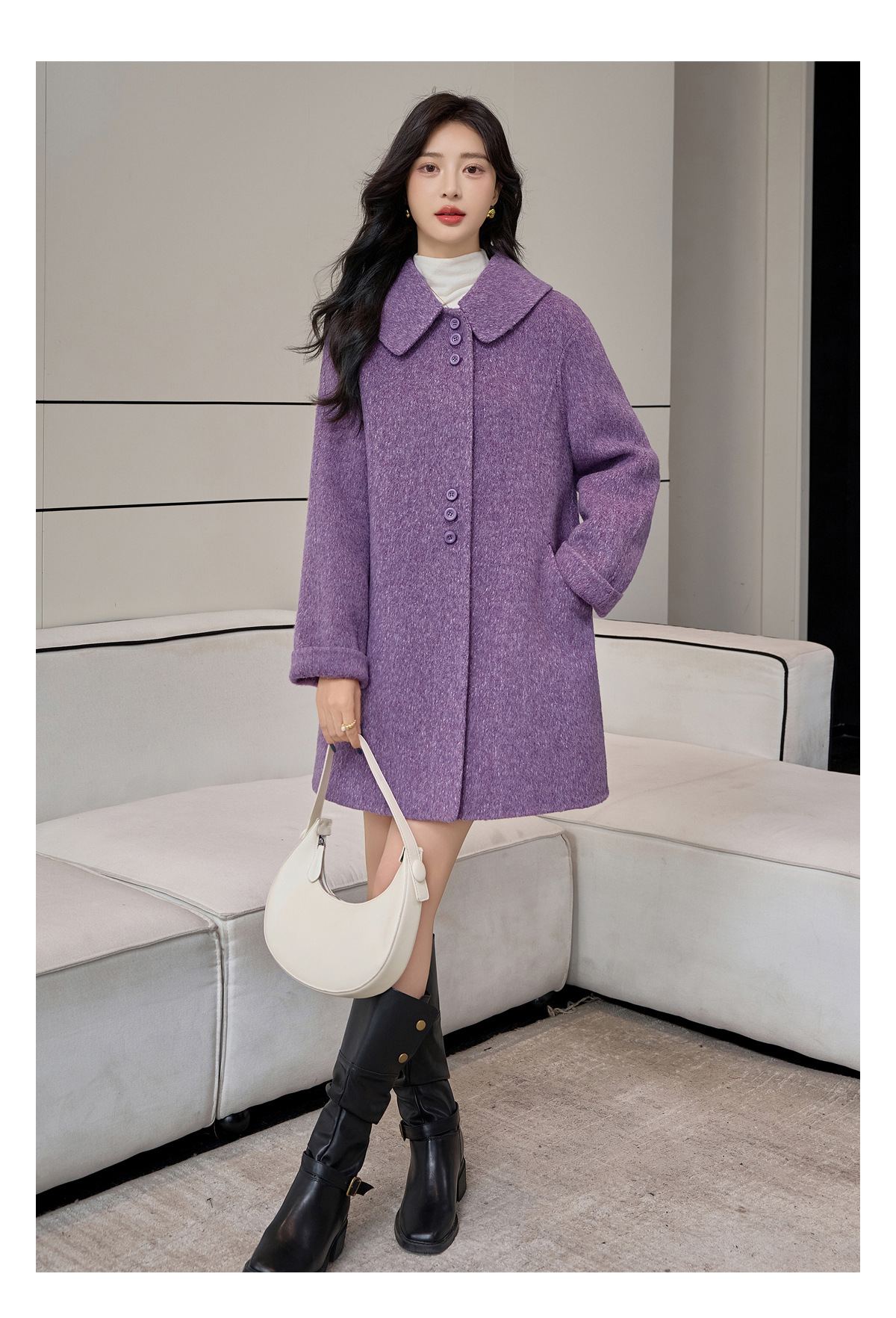TC 914522单排扣紫色羊毛呢子毛呢外套大衣 商品图0