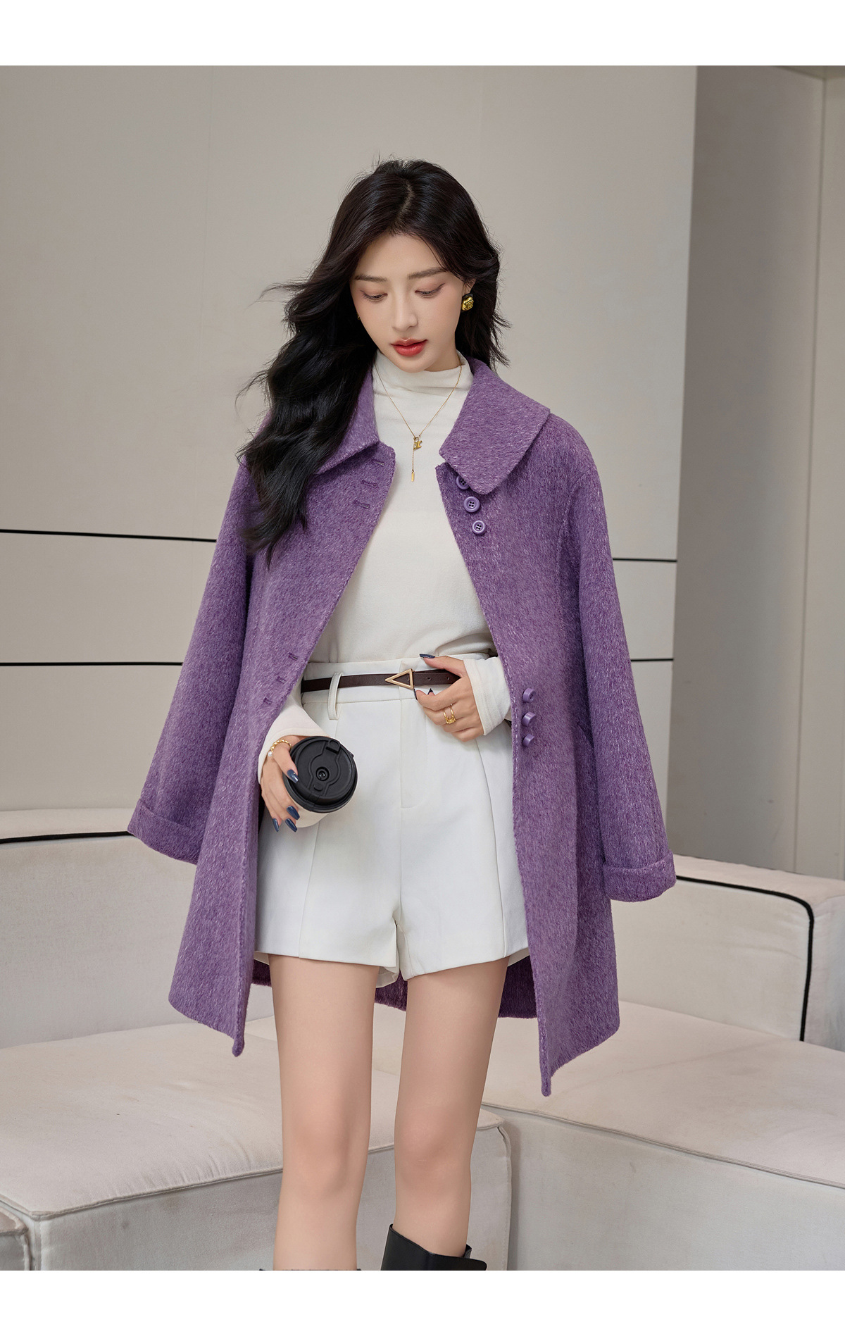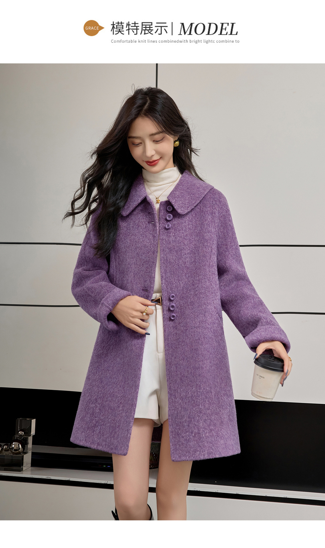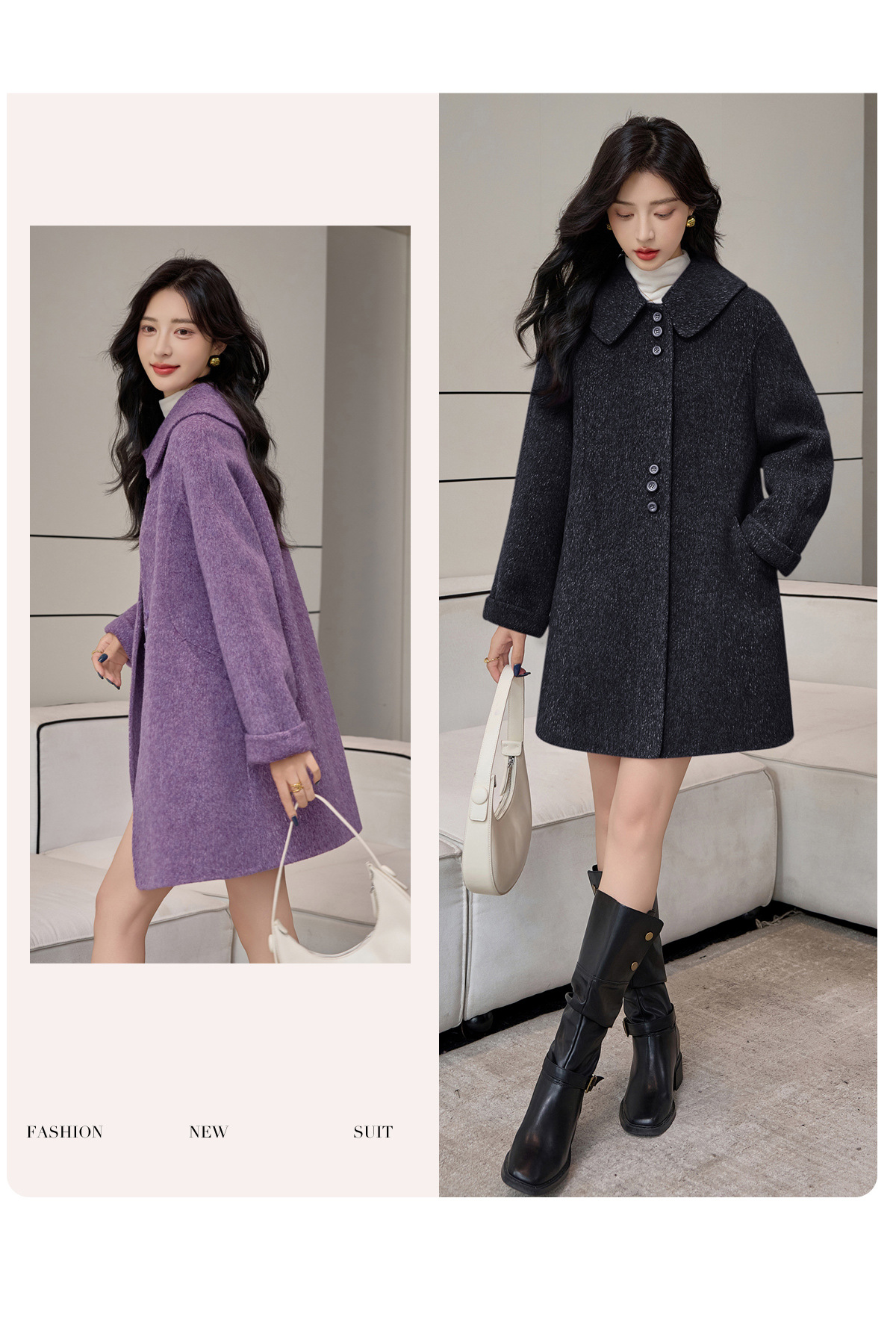 TC 914522单排扣紫色羊毛呢子毛呢外套大衣 商品图0
