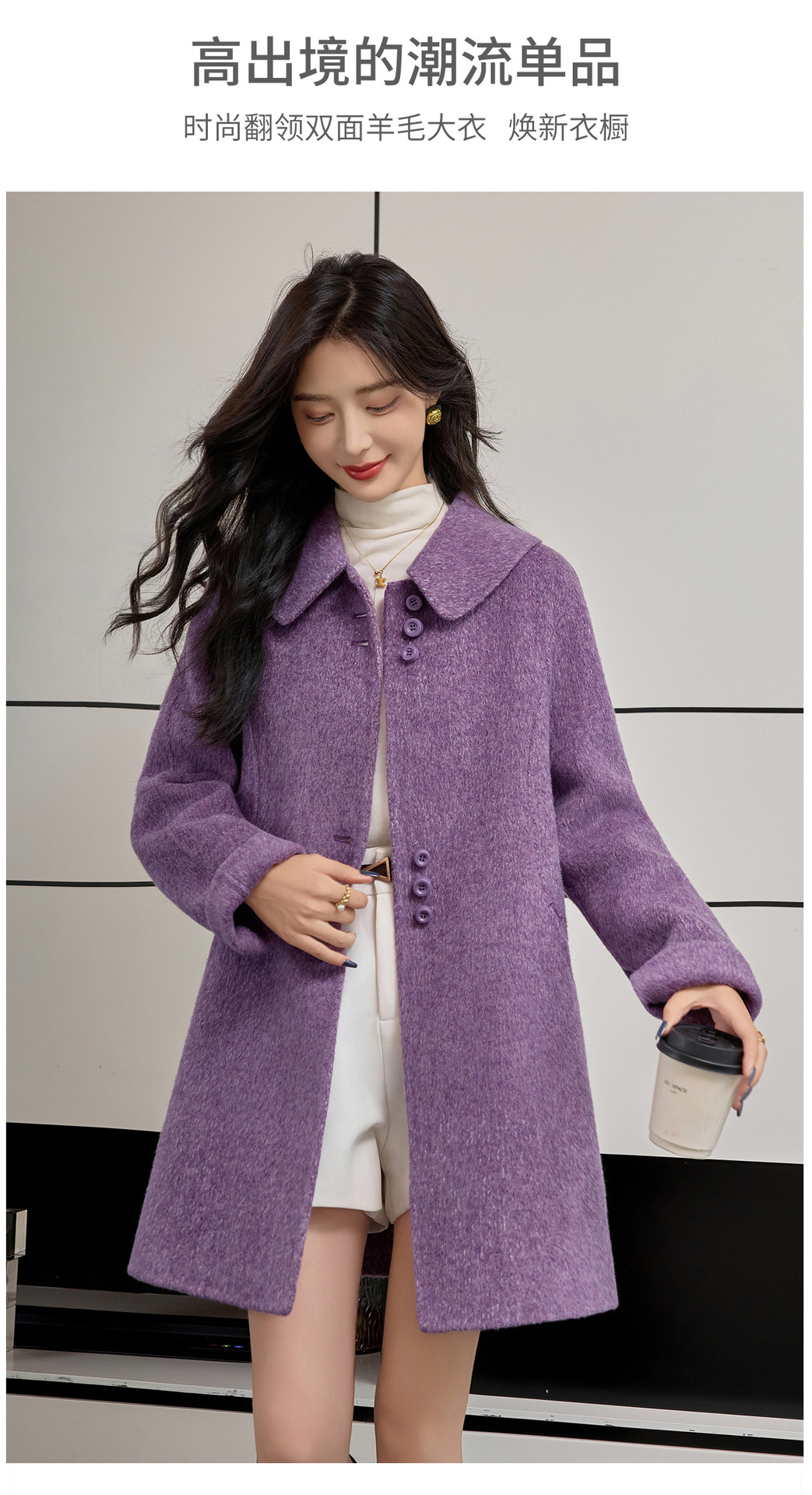 TC 914522单排扣紫色羊毛呢子毛呢外套大衣 商品图3