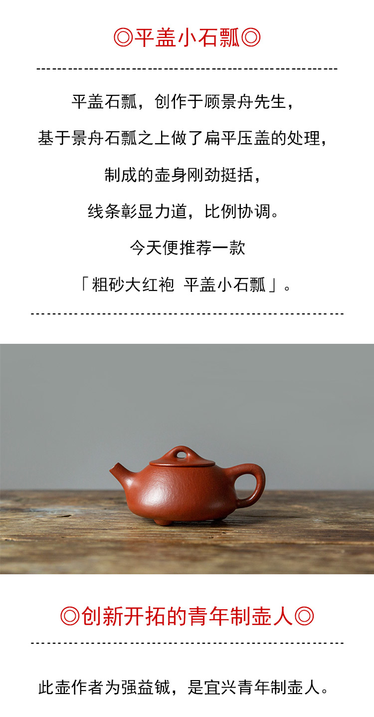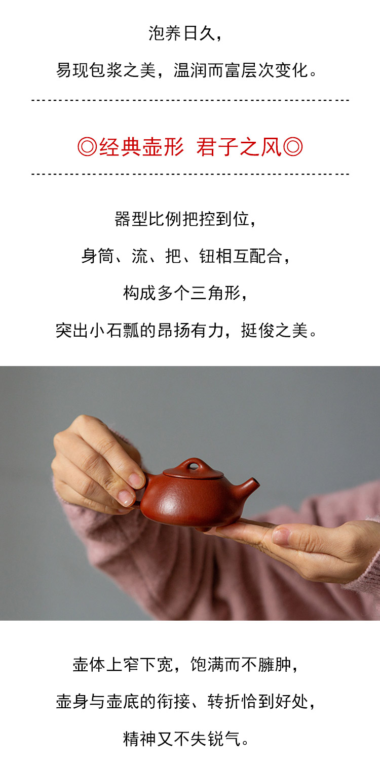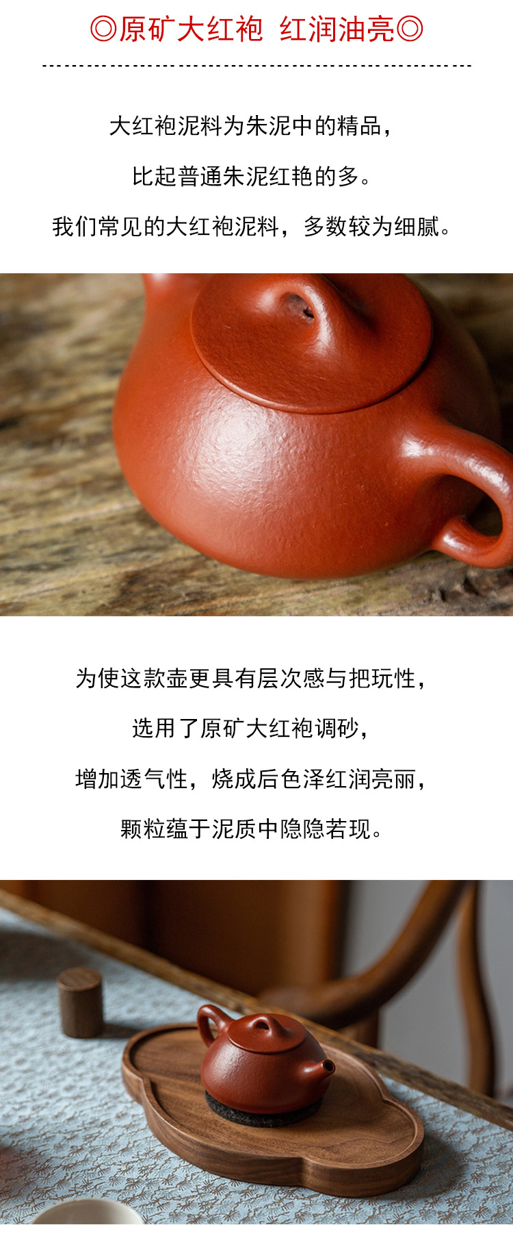 茶香记 紫砂壶 粗砂大红袍 平盖小石瓢 经典壶型 红润油亮 趁手实用