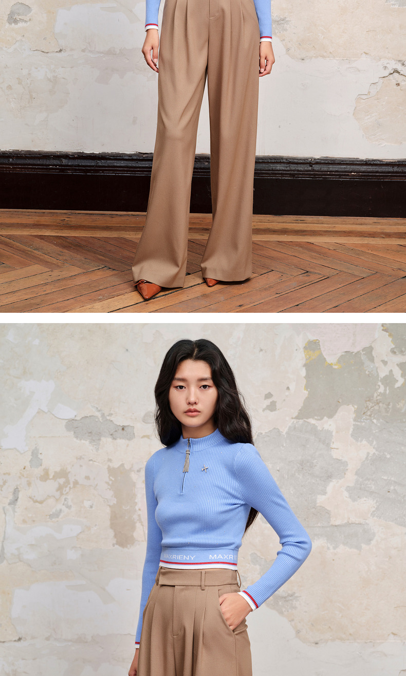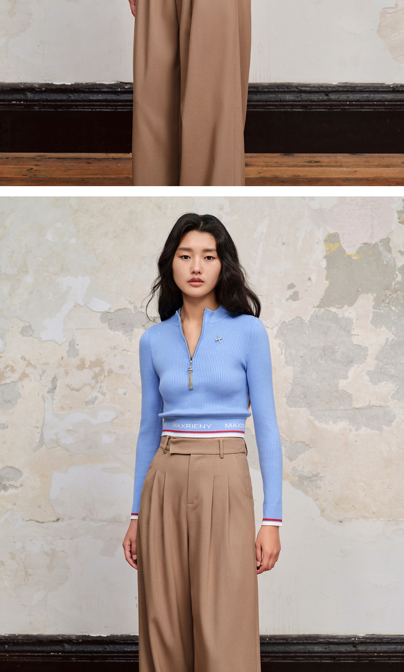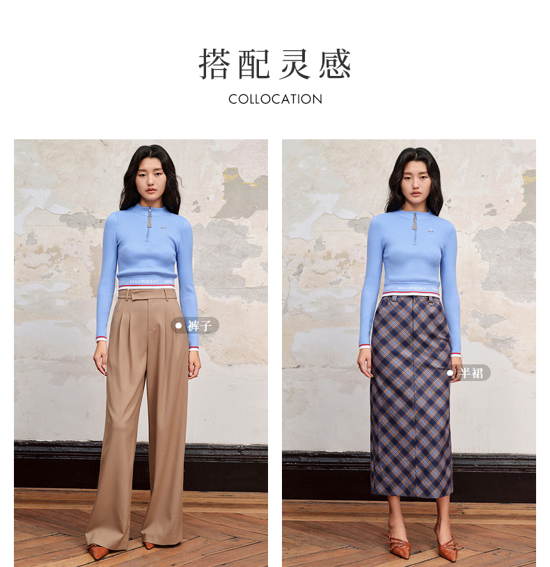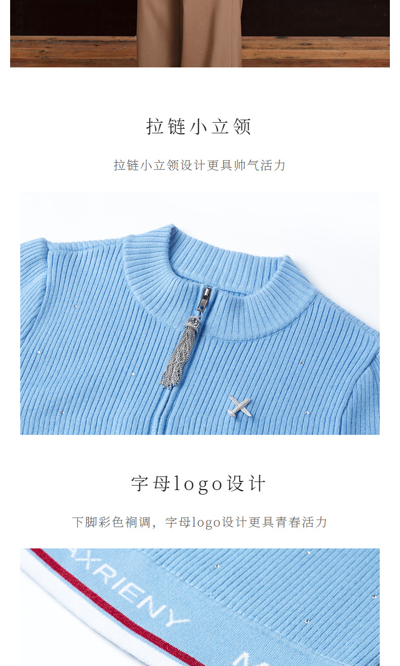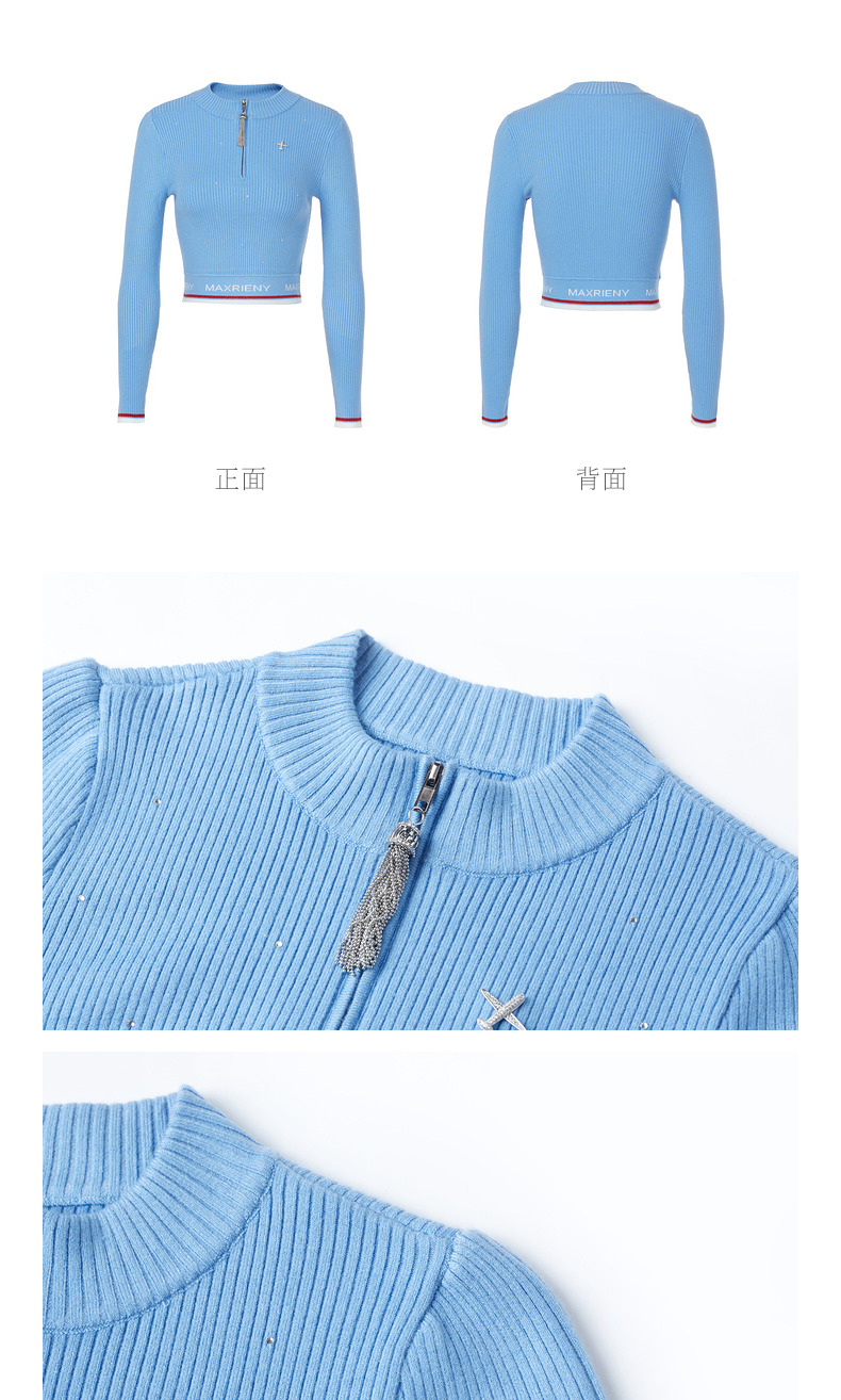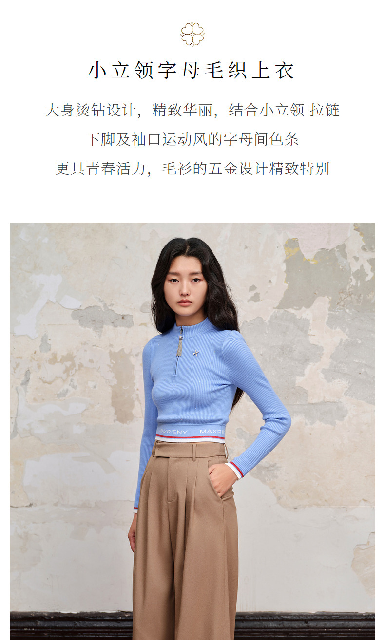 MAXRIENY小立领拉链套头针织修身收腰上衣女(货号:MC88SW587)