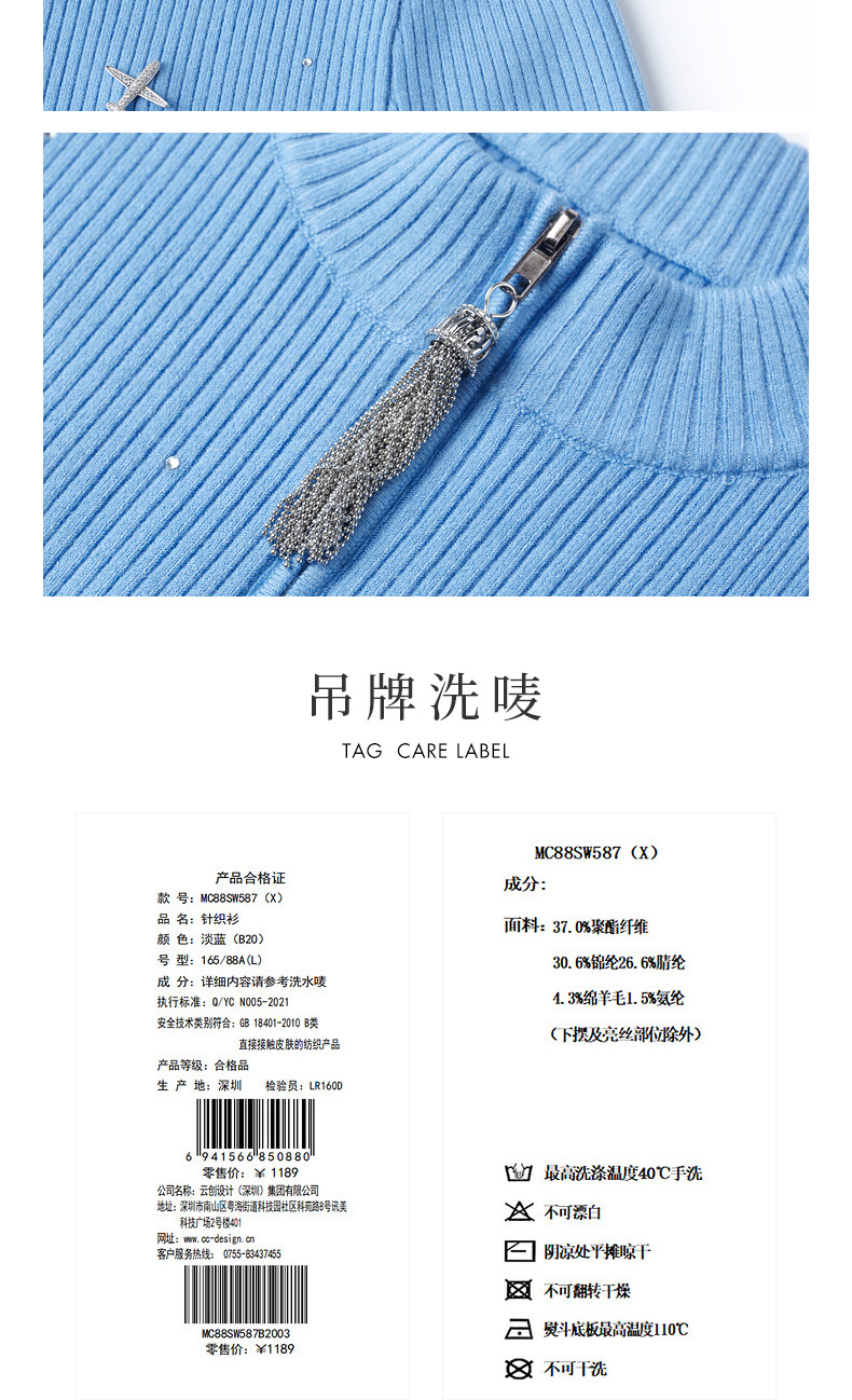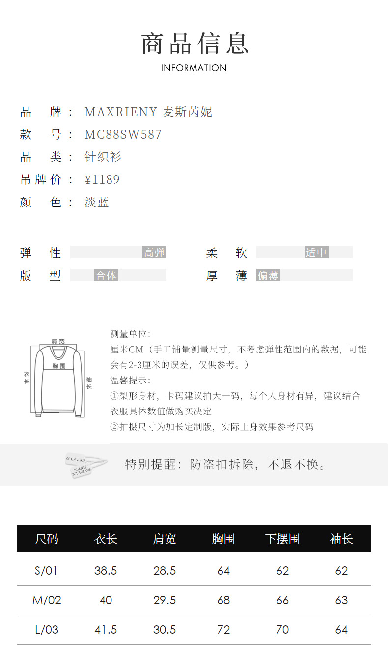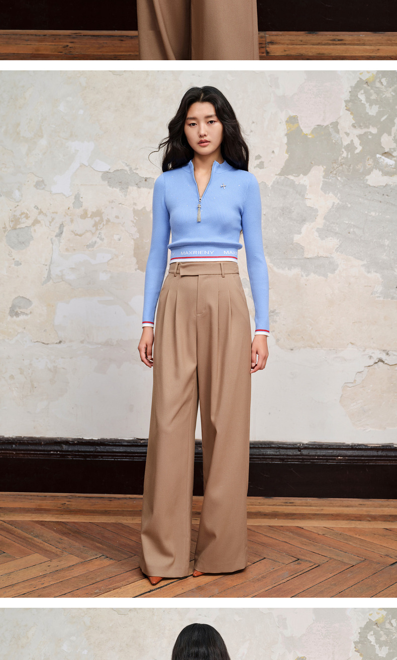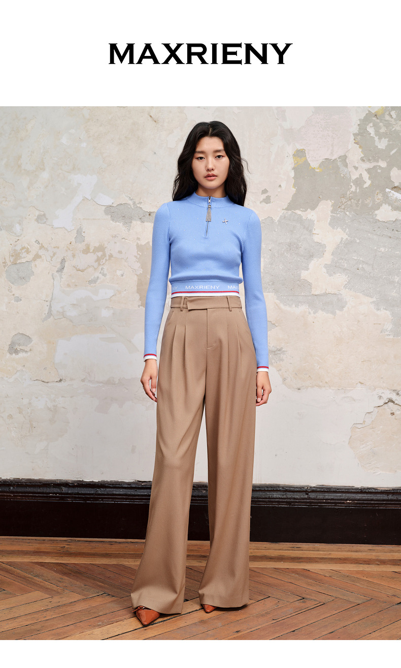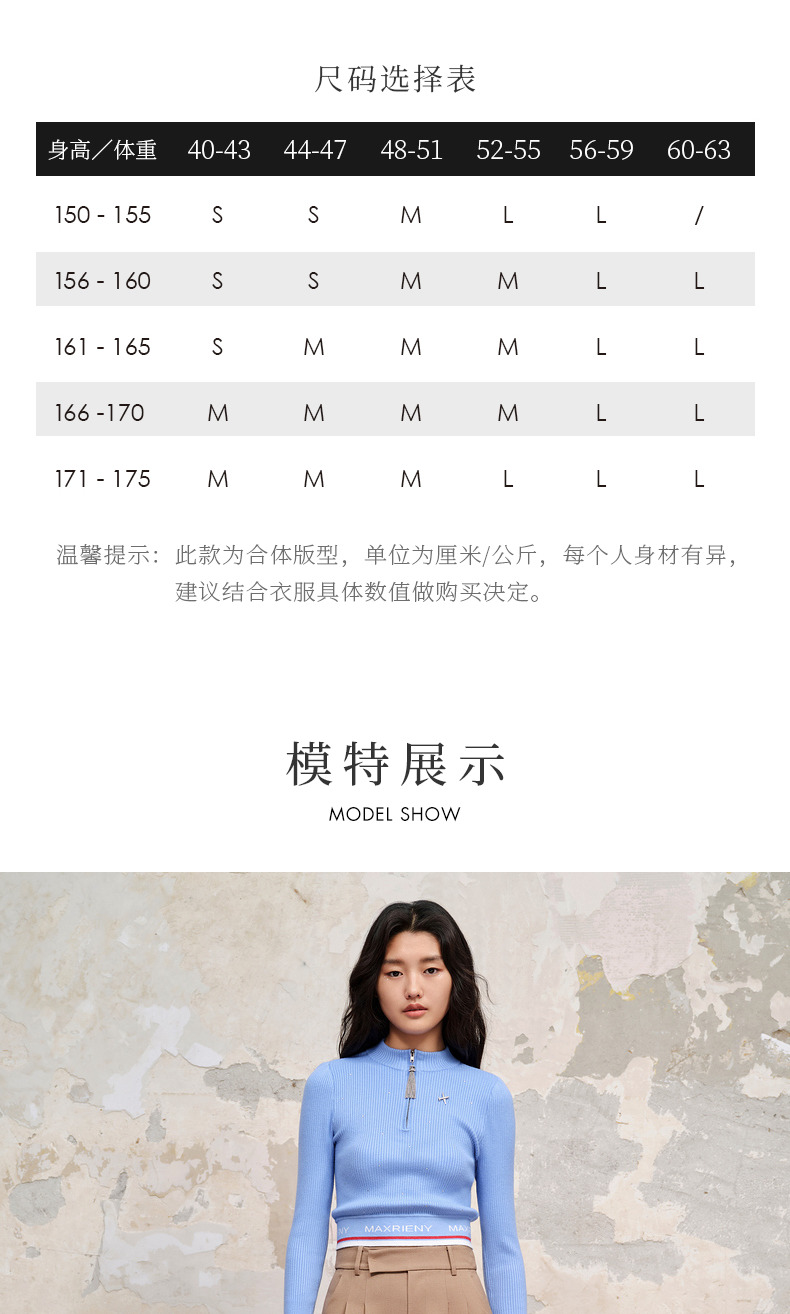 MAXRIENY小立领拉链套头针织修身收腰上衣女(货号:MC88SW587)