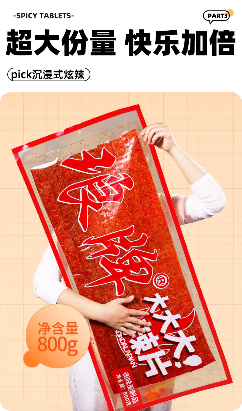 【周三会员日限时折扣】琅牌大大大辣片超长巨型网红辣片800g/包