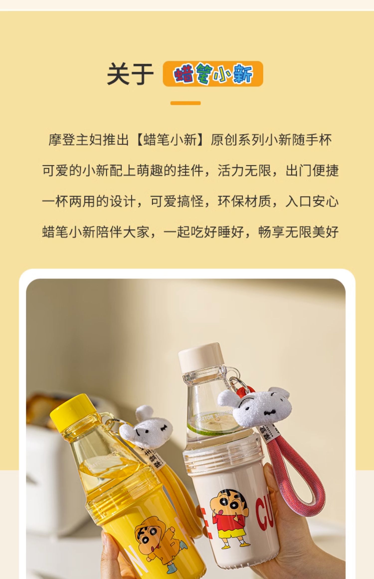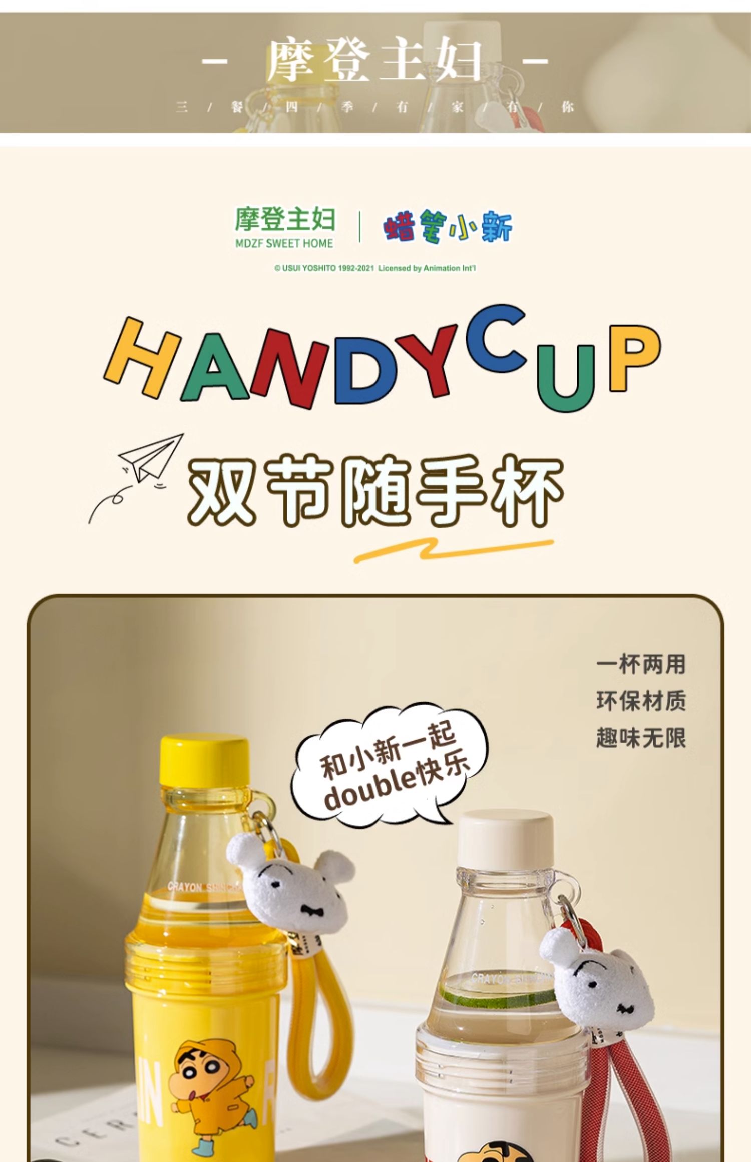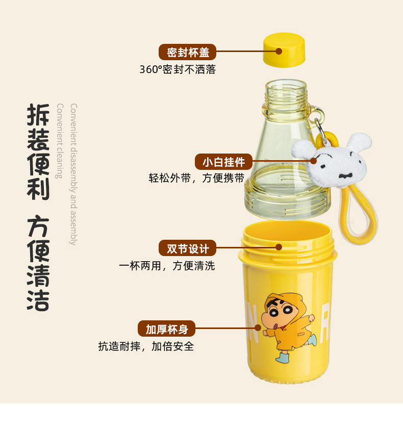 【摩登主妇&蜡笔小新】夏天水杯儿童上学专用女生随手杯饮料杯子