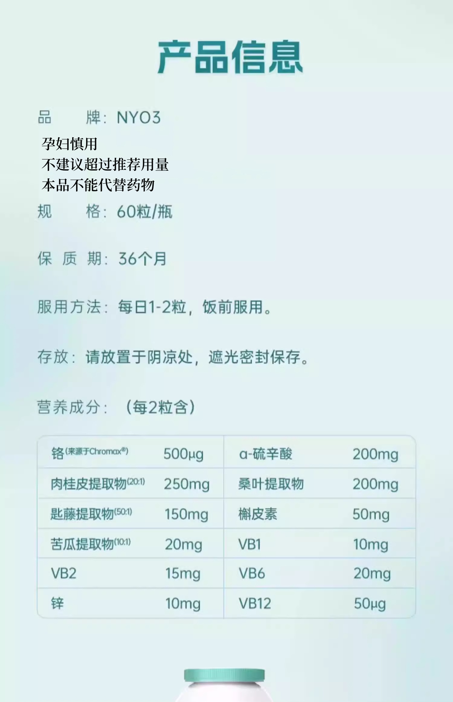 【跨境】NYO3诺威佳 铬元素 60粒/瓶