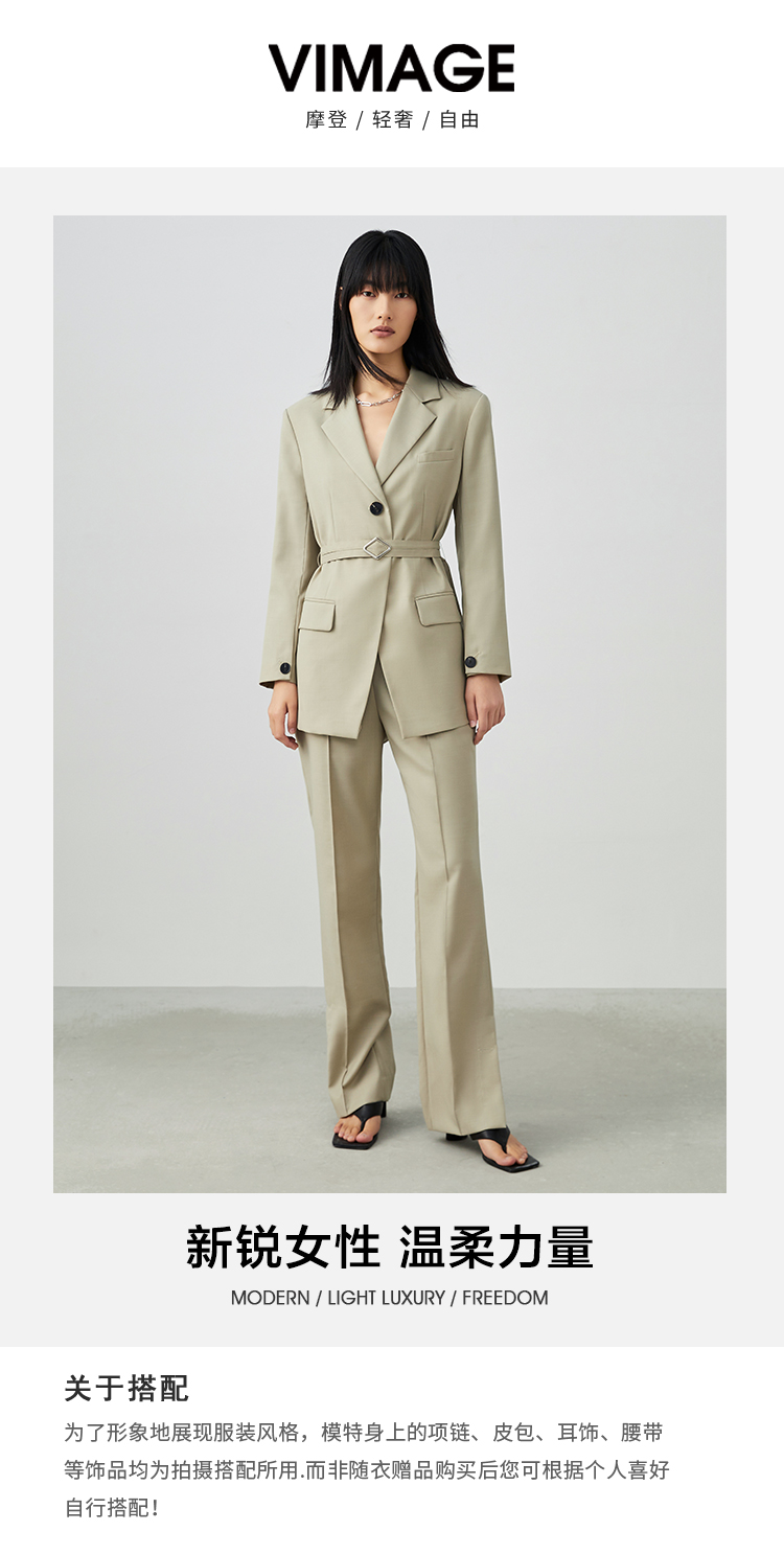 VIMAGE/纬漫纪女装春季新款气质帅气职业百搭收腰显瘦西装外套V1703305