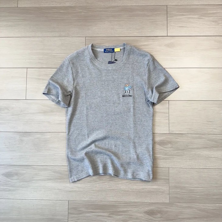 *RL小熊彩线刺绣 弹力华夫格休闲短袖T恤 男女情侣款